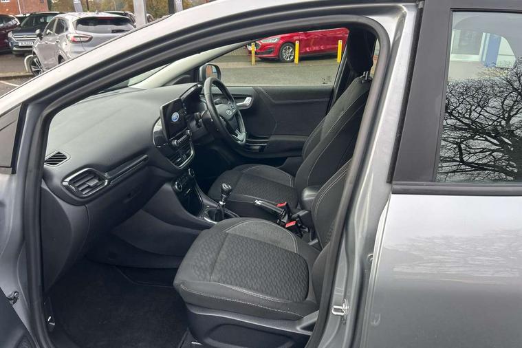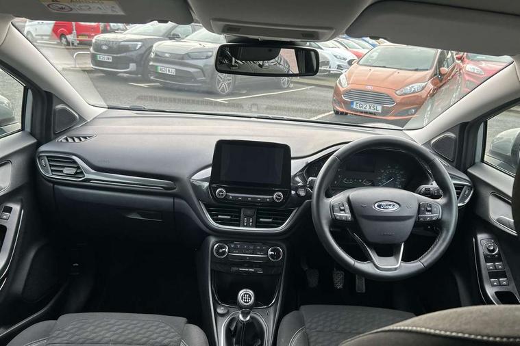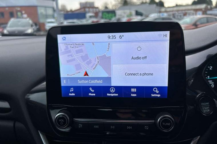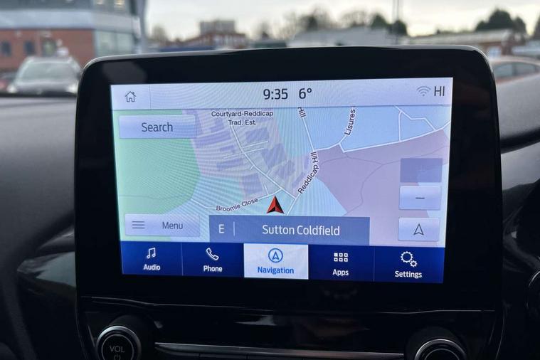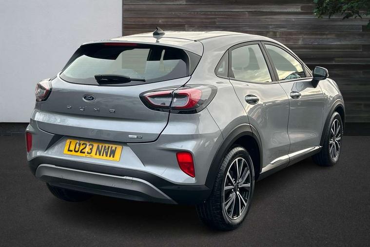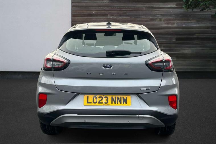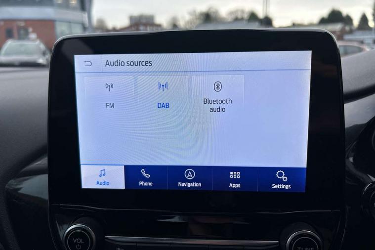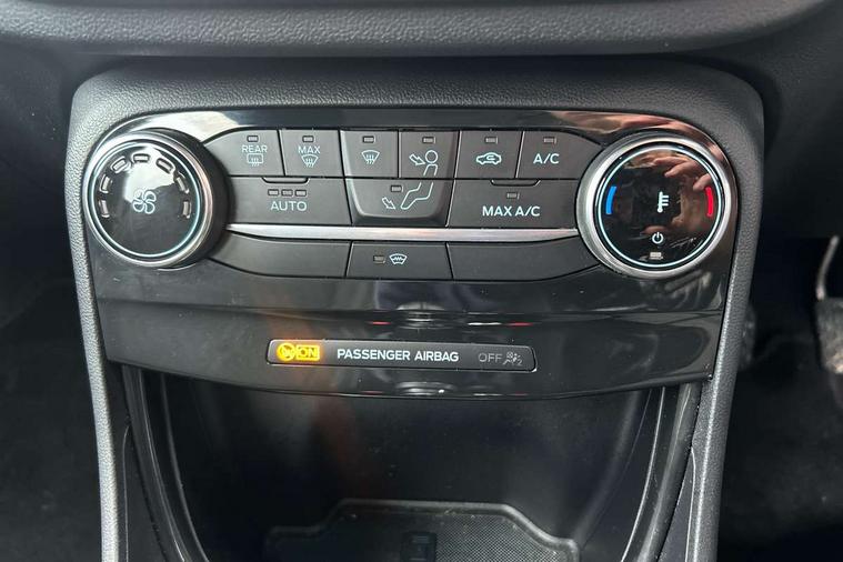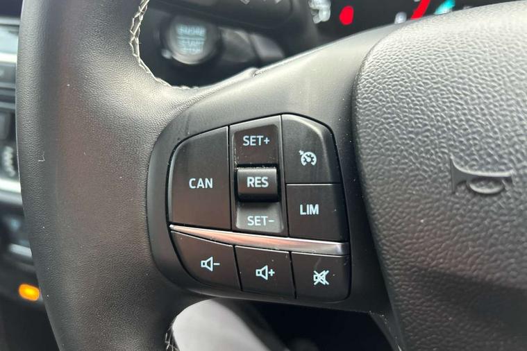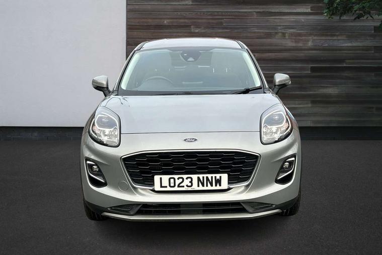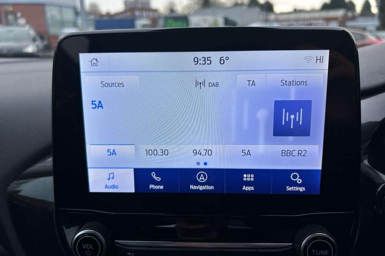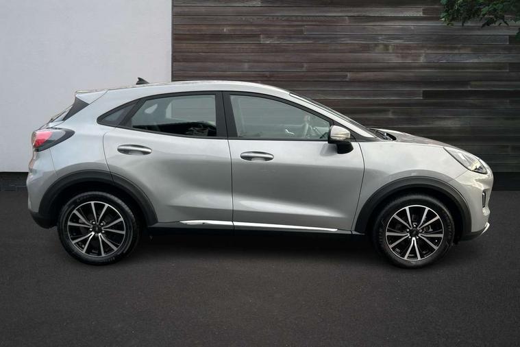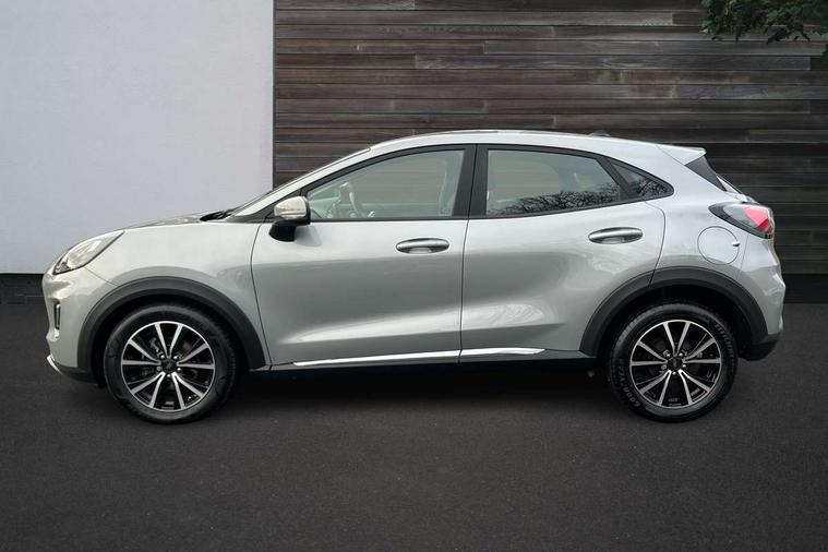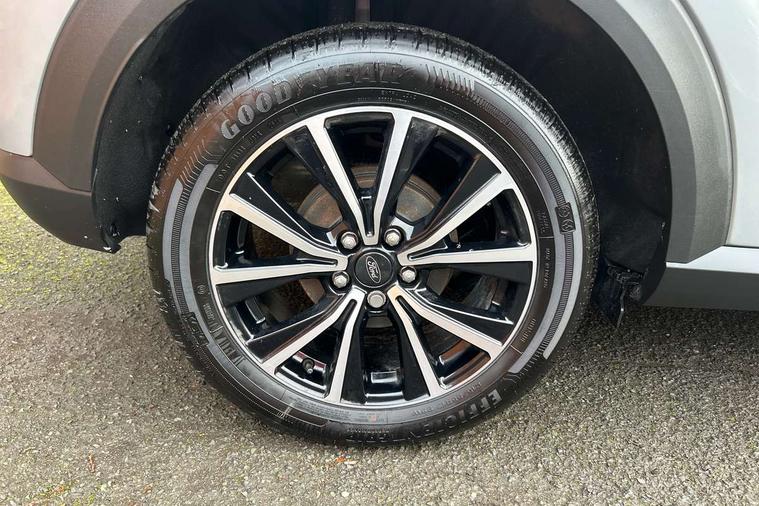 Driver impairment monitor, Emergency call service, Ford easy fuel, Lane keeping aid with lane departure warning, Power assist steering, Power start button, Rear parking sensor, Selectable drive modes(Normal, Eco, Sport, Slippery and Trail), Speed sign recognition, Standard suspension, Automatic headlights with auto high beam, Automatic rain sensing wipers, Body colour rear spoiler, LED rear lamps, Power foldable heated door mirrors with puddle lamps, Projector headlamps with LED day time running lights and front fog lamps, Quickclear heated windscreen, Rear side wing doors, Rear wiper, Third brake light, 3 seat bench in 2nd row, Centre console with armrest and stowage, Electronic automatic temperature control (EATC), Ford megabox extended bootspace, Front and rear head restraints, Front floor mats, Manual 2 way passenger seat adjustment, Manual 4 way driver seat adjust with lumbar adjustment, Sensico leather steering wheel/gear knob/handbrake, Single front passenger seat, Titanium cloth upholstery, Ford SYNC 3 navigation pack - Puma, 3 rear seatbelts, Child safety lock, Electronic stability control (ESC) and hill start assist, Pedestrian/cyclist detection & post-collision braking, Pre collision assist system, Tyre pressure monitoring system (TPMS), Thatcham alarm, 17" 10 spoke absolute black machined finish alloy wheel,