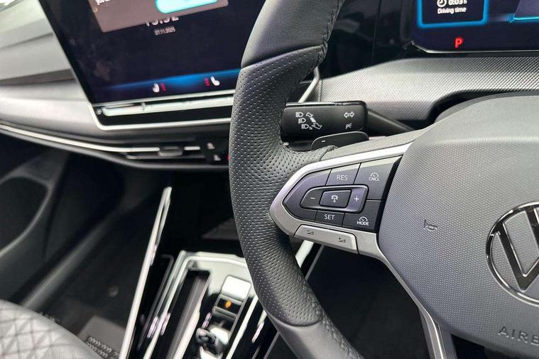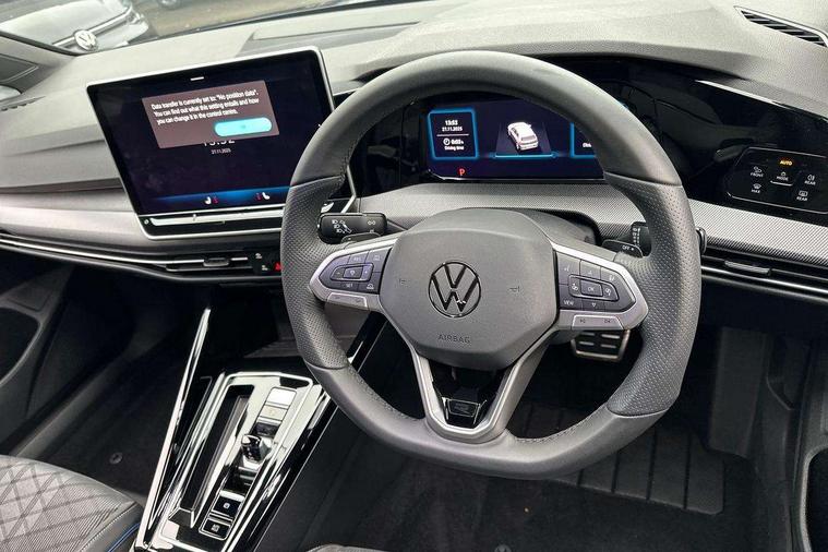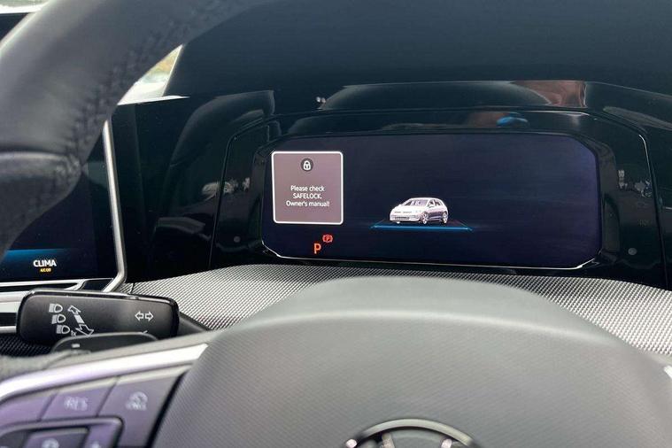 Activated carbon canister, Adaptive cruise control (ACC), Advanced driver attention and drowsiness monitor, Dynamic road sign display, Dynamic steering, E-Sim card for online connectivity, eCall emergency call system, Multi-color Digital cockpit pro, selection of different info profile possible, Multifunction front facing camera for distance control, Navigation system, Oncoming vehicle braking when turning including swerve support, Speed limiter, Speedo, rev counter, electronic odometer, trip, service interval display, exterior temperature and fuel gauge, Traffic jam assist, Voice enhancer and voice control, Warning signal and warning light for front and rear seatbelts not fastened, We connect plus preparation, We connect preparation, Wireless app connect, Hybrid propulsion system, Petrol Particulate Filter, Start-stop system with battery regeneration (recuperation - energy recovery during braking), XDS electronic differential lock for improved traction and handling, 2 USB C ports in front, 2 USB charging sockets on the centre console in the rear charging capacity upto 45W, Digital radio reception (DAB), Diversity antenna for FM reception, Gaming platform via car app, Infotainment system with 12.9" display, Mobile phone interface with inductive charging feature, 3rd brake light, Auto dimming rear view mirror, Automatic headlamp activation with Coming home and Leaving home feature, Body colored bumpers in R-Line style, Body colour door handles, Exterior ambient lighting, Exterior mirrors convex on the left and aspherical on the right, Front and rear electric windows, Heat insulating windshield made of laminated glass, LED separate daytime running light, Rain sensor, Rear exhaust tailpipe, Rear fog light on one side and reversing lights on both sides, Rear side wing doors, Rear windscreen washer and wiper with interval delay, Remote electrically foldable door mirrors, puddle lights and reverse activated passenger's door mirror, Volkswagen logo in front, illuminated lighting animation with wake up/goodbye scenario and illuminated door handles, Welcome light with surround lighting, 12V socket in front centre console, 12V socket in luggage compartment, 3 rear head restraints, 3 seat bench in 2nd row, Ambient lighting with 30 colour including LED light unit in front footwell with selectable light colour, Black roof lining, Brushed stainless steel pedals, Chrome plated radiator grille inserts, air vent surrounds and light switch surrounds, Door insert, side trim panel and arm support in leatherette, Front + rear black carpet mats, Front centre armrest, Front seat lumbar support adjuster, Integrated front head restraints, ISOFIX anchors for child seats on outer rear bench seats and on front passanger seat compatible for i-Size, Luggage compartment lighting, Manual height adjustable front passenger seat, Manually height adjustable driver seat, Plastic gear knob, Premium sports seats in front, Rear cupholder and loadthough, Sardegna cloth upholstery with front and outer rear seats Art Velour inner sides of bolsters, Single front passenger seat, Split folding backrest with centre armrest and unsplit rear seat bench, Sun visors with illuminated vanity mirrors, Titanium black instrument panel, Black exterior Styling package with Matrix LED headlights - Golf, Winter package - Golf DSG Estate/Hatchback, 3 point height adj front seatbelts + pretensioners, 3 rear three point seatbelts, ABS, Autonomous emergency braking front assist with pedestrian and cyclist monitoring, Child locks on rear doors, Driver and front passenger airbag with front passenger airbag deactivation, Electronic parking brake with auto hold, ESC (Electronic Stability Control), Extended pedestrian protection measures, Hill start assist, Rear disc brakes, Two tone horn, Tyre pressure loss indicator, Volkswagen roadside assistance, Anti theft wheel bolts, Preparation for alcohol interlock, Decorative inserts carbon grey for dashboard and front door trim panels, 18" Leeds alloy wheels, Tool kit for tyre mobility set, Tyre mobility kit Includes 12V compressor and tyre sealant,