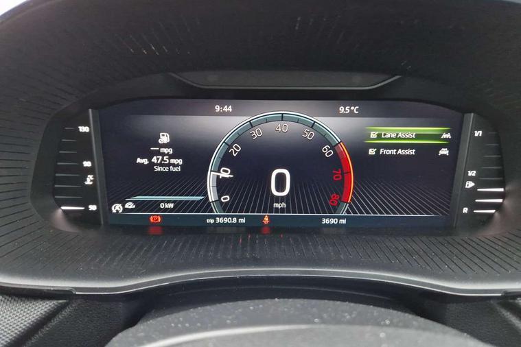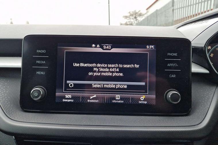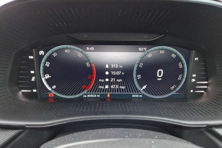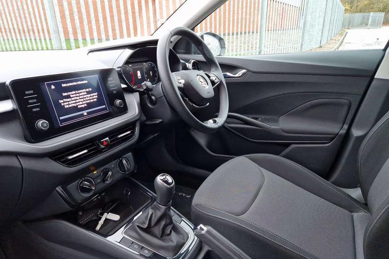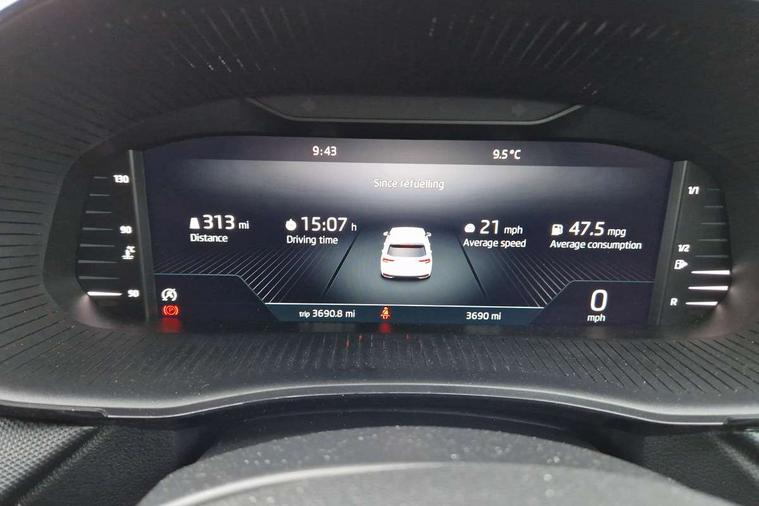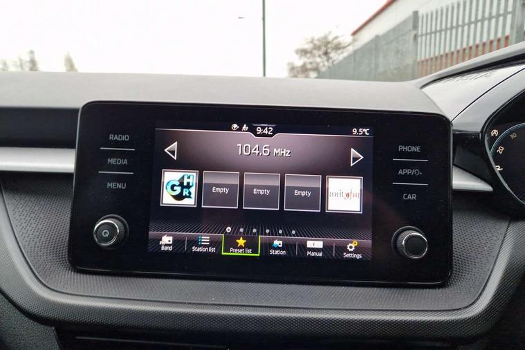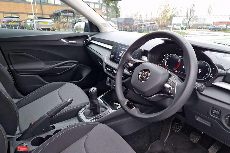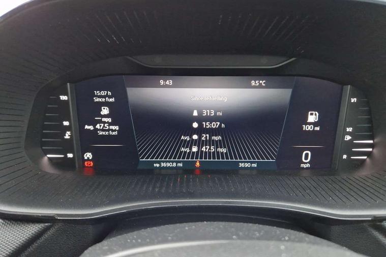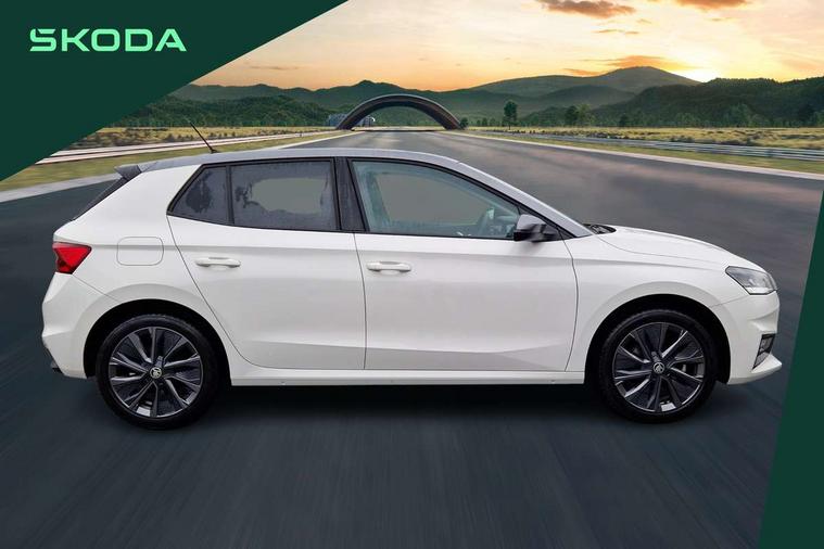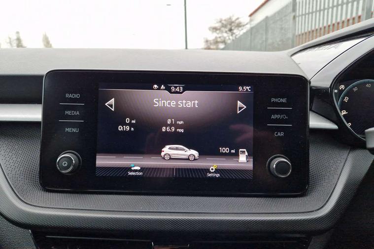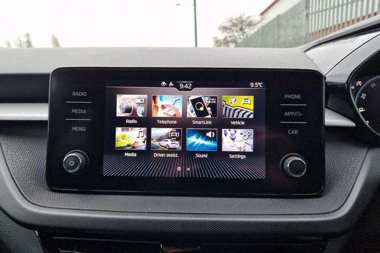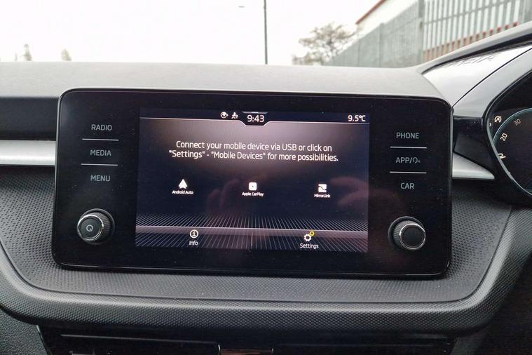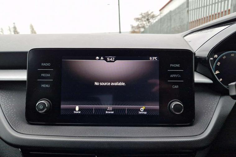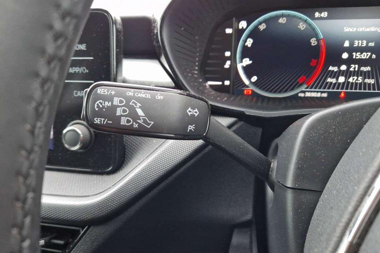 Bluetooth connection, Driver alert system - DAS, Electromechanical power steering, Exterior temperature gauge, Lane assist including road edge detection, Service interval indicator, Virtual cockpit with 10.25" colour display, 2x USB-C in the front (for data transmission and charging), 6 Speakers (4 in front and 2 in rear), Auxiliary socket for external MP3 player, Bolero radio with 8" colour display, DAB digital radio reception, Basic LED Headlights, Body coloured bumpers, Dimming rear view mirror with black frame, Door mirror integrated indicators, Electrically adjustable and heated door mirrors, Electrically adjustable front windows with function auto up/down, Front fog lights, Front window wiper intermittent control, Headlight range control - Automatic, Ice scraper in fuel cap, LED daytime running lights with coming and leaving home feature, Mechanical adjustable rear windows, Privacy glass, Rain sensor, Rear LED fog light, Rear side wing doors, Rear window wiper with washing nozzles, Roof mounted spoiler, SKODA tailgate lettering in chrome, Third brake light, 2 reading lights in front and 2 reading lights in rear, 3 rear headrests, Backrest split and folding, Central console with fixed cup holder and storage box, Chrome handbrake release button, Fabric upholstery, Gearshift knob/handle in leather, Grain satin black interior door handles, Hand brake lever handle in leather, Height adjustable drivers seat, Height adjustable front headrests, Height adjustable steering wheel, ISOFIX and TopTether anchorage points to the outer rear seats, ISOFIX and TopTether on the front passenger seat, Luggage compartment lighting, Pollen filter, Rear seat bench unsplit, Single front passenger seat, Storm grey headlining, Sun visors with mirror and airbag label on passenger side, Ticket holder, Umbrella in drivers door, 3-point height adjustable front seats belts with pretensioner and force limiter, Automatic warning lights in case of crash, Driver and passengers airbag with switch off function, e-Call+, ESC including ABS, MSR, ASR, EDS, HBA and XDS, Front and rear seat belt warning, FRONT ASSIST (AEB City and AEB Inter Urban), Front side airbags, Head airbags, One tone horn, Pedestrian protection, Three rear 3-points safety seat belts with pretensioner and force limiter including stop function for outer rear seat belts, Tyre pressure monitoring system, Anti-theft alarm system including immobiliser, interior monitoring, backup horn, and towing protection, Central locking with radio remote control, interior controls, SAFE function and 2 foldable keys, KESSY - Keyless engine start/stop, Anodized cross line upper decorative trim, Colour Edition air vents, Grain satin black central console cover, Grain satin black lower decorative trim, Satin black door and side trim panel in front, Anti-theft wheel bolts protection, Super-low rolling resistance tyres,