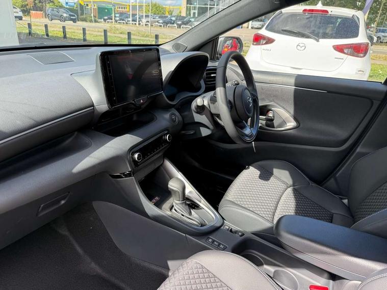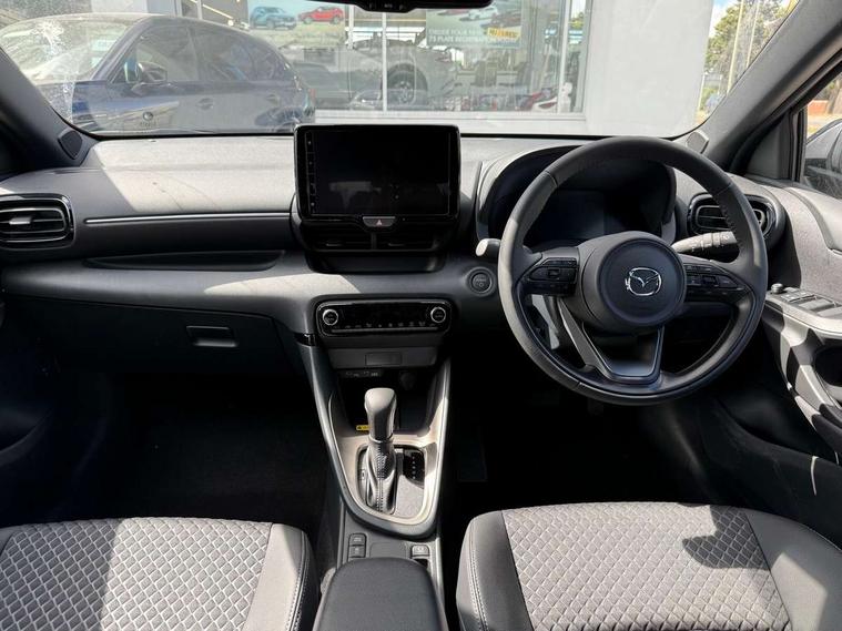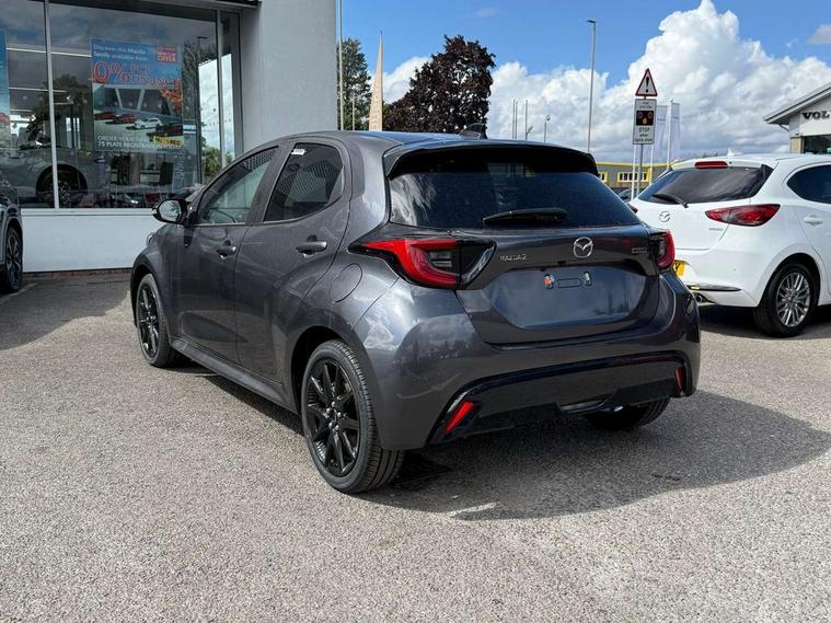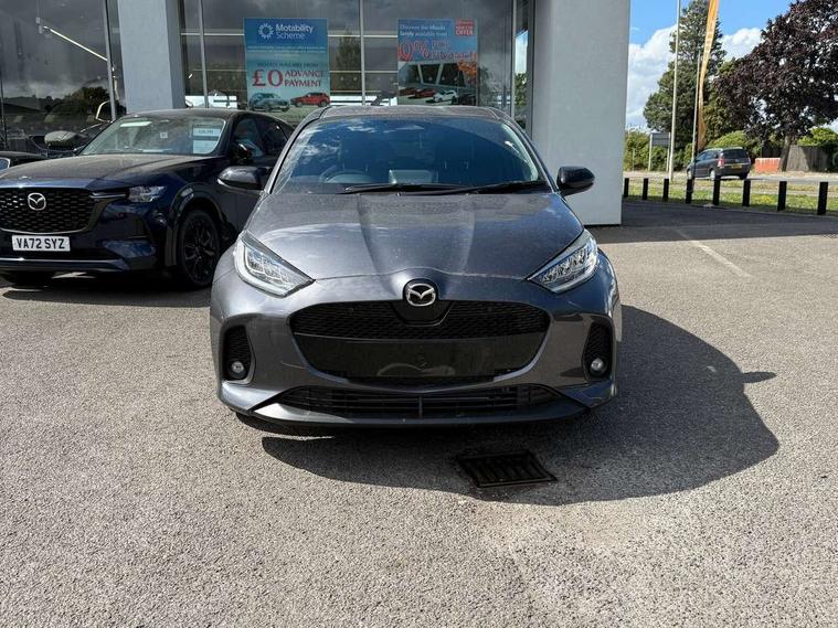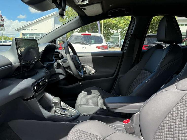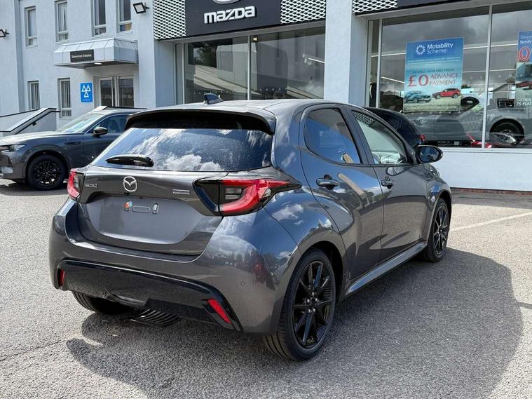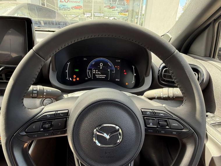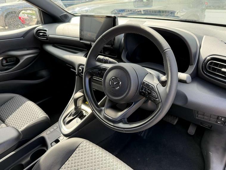 7" Digital instrument cluster with speedometer and hybrid system indicator, Adjustable speed limiter, Drive mode selector (Eco, Normal and Power), Driver attention alert system, Dynamic radar cruise control, E-call with GPS, EV drive mode, Front and rear parking sensors, Integrated bluetooth, Lane tracing assist includes Lane centering, Lane departure alert, Steering assist and Vehicle sway warning, Multi-information display, PAS, Push button start and stop, Qi wireless charging, Rear cross traffic alert with auto braking, Reversing camera, Road sign assist - RSA, Service indicator, Tailgate, Trip computer, Wireless Apple CarPlay and wired Android Auto, i-stop, 6 speaker audio system and 9" colour screen centre display, DAB Digital radio, Steering wheel mounted audio/bluetooth controls, USB type C port, Auto dimming rear view mirror, Auto folding door mirrors, Automatic high beam - AHB, Body coloured front bumper, Body coloured rear bumper with gloss black lower mouldings, Coming home function, Dusk sensing headlights, Front and rear electric windows, Gloss black electric adjustable/heated door mirrors, Gloss black front grille, Gloss black rear roof spoiler, Hybrid badge, LED front fog lights, LED headlights with manual headlight levelling and LED daytime running lights, LED rear combination light with LED turn signals, LED third brake light, Mazda unique tailgate garnish, Piano black lower window garnish, Privacy glass in rear side and rear windows, Rain sensing front wipers with adjustable sensitivity and speed, Rear side wing doors, Rear wash wiper, Shark fin antenna, Welcome lighting, 12V power outlet, 3 seat bench in 2nd row, 60/40 split fold down rear seats, Ambient lighting, Black roof lining in pillar and ceiling, Cloth/Synthetic leather upholstery, Driver, front passenger and two rear door storage, Driver, Front passenger and two rear grab handles with coathooks, Drivers seat manual slide recline and height adjustment, Drivers/front passengers with covered vanity mirrors and light, Dual zone climate control, Front centre armrest with console storage, Front head restraints, Front passenger seat manual slide, recline and height adjust, Front sport seats, Glovebox, Interior courtesy light with LED illumination, ISOFIX child seat anchorage points attached on outer rear seats, Leather handbrake, Leather wrapped gearshift, Leather wrapped steering wheel with telescopic and tilt adjustment, Luggage compartment light, Seatback pocket at rear of the front passenger seat, Single front passenger seat, Three height adjustable rear head restraints, 2x3 point front seatbelts with pre-tensioners, 3 point seatbelts on all rear seats, Airbags - driver and front passenger, Anti-lock braking system (ABS), Blind spot monitoring with rear cross parking support brake function, Collision mitigation braking system, Driver and passenger central airbags, Dynamic stability control + Traction control, Electronic parking brake with auto-hold and auto-disengage function, Emergency brake light signal (EBS), ESP, Front and rear curtain airbags, Front passenger airbag cut-off switch, Front side airbags, Hill start assist control (HAC), Manual child lock in rear doors, Pre-crash safety system - PCS, Rear parking support brake, Regenerative braking system, Seatbelt reminder audible warning, Tyre pressure monitoring system, Deadlocking system, Remote central locking, Smart keyless entry, Thatcham approved immobiliser and alarm, 17" Alloy wheels, Emergency tyre repair kit,
