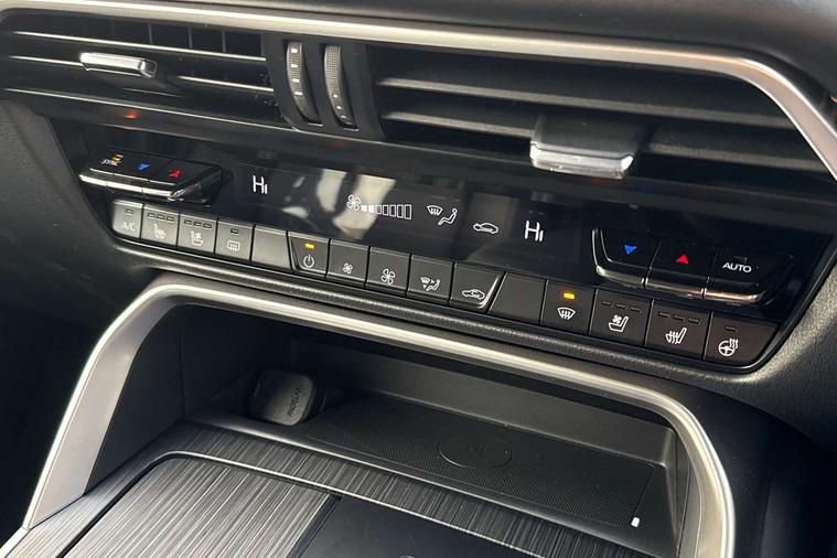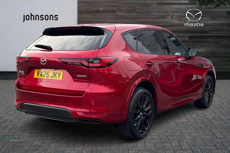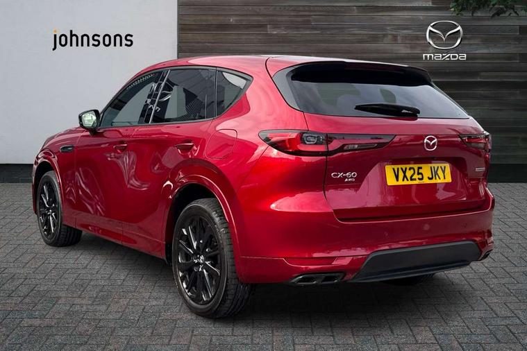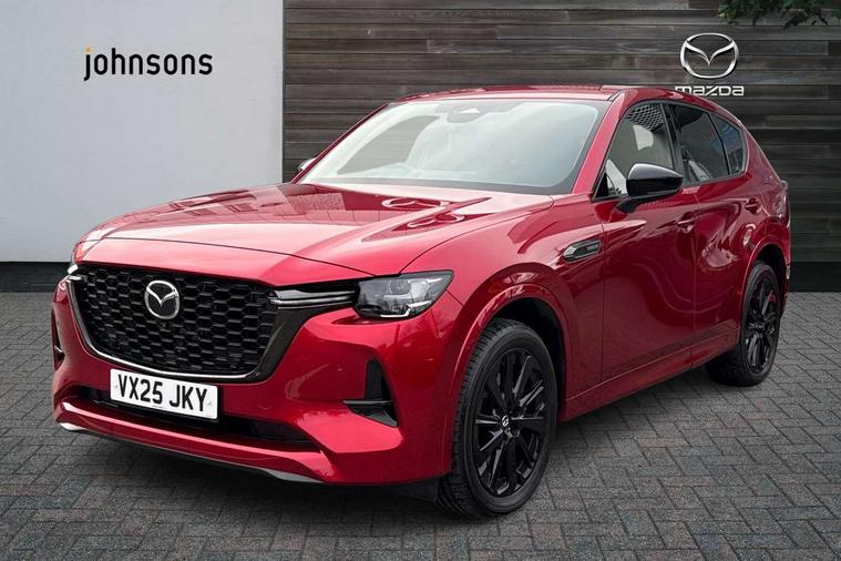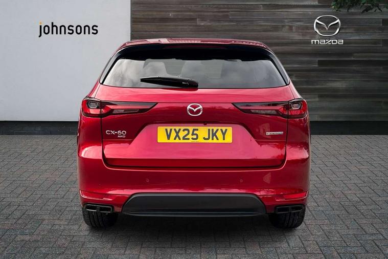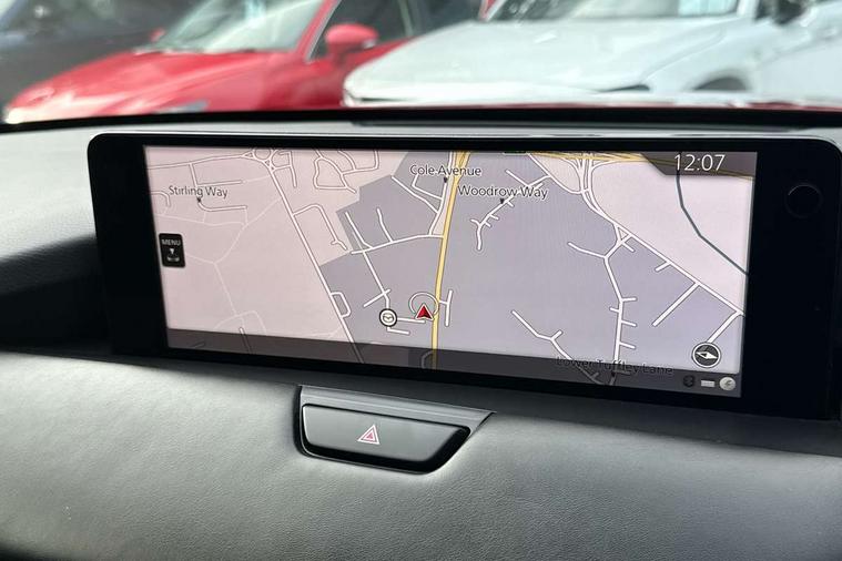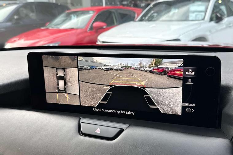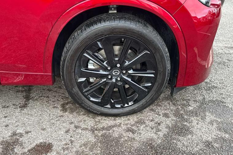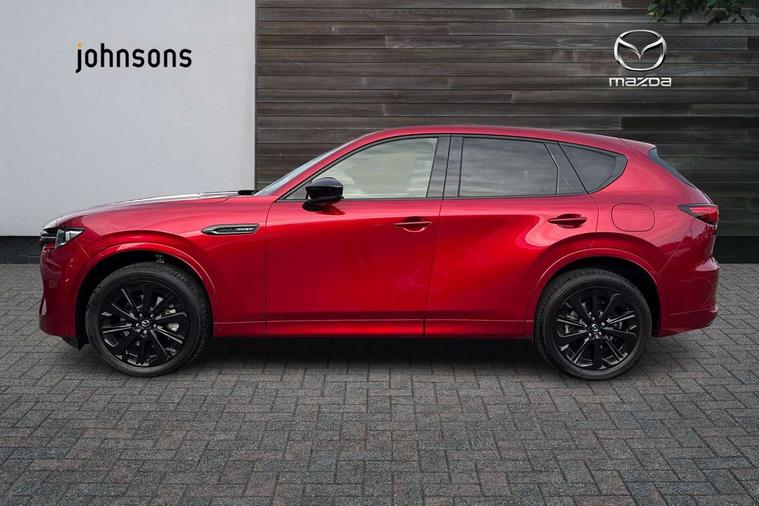 Emergency lane keeping with blind spot assist, Low washer fluid warning light, 12.3" Colour entertainment centre display with mazda connect infotainment, 12.3" TFT Colour display, Adjustable speed limiter, Blind spot assist, Blind spot monitoring with rear cross traffic alert, Cruise control, Distance alert system, Driver attention alert system, Driver Monitoring with personal identification, E-call with GPS, Emergency stop signalling system, Exit warning function, Front and rear parking sensors, Ingress / Egress support and automatic driver position guide, Integrated bluetooth, Intelligent speed assist, Kinematic posture control, Lane keep assist system (LAS) with Lane departure warning system (LDWS), Mazda Driver Personalisation System, Mazda hybrid navigation system with european mapping, Multimedia Commander, PAS, Power lift gate with handsfree function, Power start/stop button, Reversing camera with static guide lines, Speed alert, Traffic sign recognition enhanced with mandated excessive speed warning, Trip computer, Windscreen projected colour active driving display, Wireless apple car play/android Auto, Type 2 Mode 2 cable for AC charging via UK 3-pin plug, 7.2 kw On board Charger, Mi-Drive (Normal, Sport, Off-road, Towing and EV mode), Paddle shift, Type 2 Mode 3 cable for AC charging via home or public charge points, AM/FM and DAB radio, Bose surround sound system with 12 Speaker, Bose center point, Bass match and audio pilot technology, Steering wheel mounted audio/bluetooth controls, USB-C inputs (x2 front and x2 rear), Auto dimming driver's door mirror, Automatic headlight levelling, B-pillar and C-pillar garnishes in gloss black finish, Body colour roof spoiler, Body coloured bumpers, Body coloured lower bumper, wheel arch and side mouldings, Coming/leaving home lighting function, Dark plated headlight lense, Dark plating finish signature wing in front grille, Dark plating front side garnish, Differentiated front bumper design to accentuate the intake, Dusk sensing headlights, Electric front/rear windows with one touch auto up/down, Electrically adjustable, heated auto power folding door mirrors with memory, Frameless auto dimming interior rear view mirror, Front kodo turn signal, Front wiper de-icer, Gloss black door mirrors, Headlight washers, High beam control, Honeycomb radiator grille in piano black, LED 3rd brake light, LED headlamps, LED rear signature combination lamps, Rain sensing front wipers with adjustable sensitivity and speed, Rear side wing doors, Rear wiper, Roof pillars and roof lining finished in lighter colour to soften the overall look, Signature LED daytime running lights, Silver decoration panel, 12v power outlet - front, 12V socket in boot, 3 height adjustable rear headrests, 3 seat bench in 2nd row, 40/20/40 split folding rear seats with quick levers in the boot, Ambient lighting, Cargo net, Chrome interior trim accents with steering wheel centre bezel, surround of engine start / stop button and glove box handle, Door panel trim vinyl leather with armrest, Driver and front passenger two rear grab handles with rear coat hooks, Driver and front passenger visors with covered vanity mirror and driver ticket holder, Driver seat electric tilt, slide, recline, height and lumbar adjustment, Driver, front passenger and two rear door pockets, Driver/passenger front seatback pockets, Dual zone climate control air conditioning with rear air vents, Electric telescopic and tilt adjustment steering wheel, Featuring black vinyl leather dashboard trim with titanium coloured accents, Folding rear centre armrest with two cup holders, Front centre storage with two cupholders, Front down lamp with front and rear foot lamps, Front headrests, Front passengers seat electric slide, recline, height and lumbar adjustment, Front seat ventilation with 3-stage setting, Glovebox illumination, Heated front seats with 3 stage setting, Heated leather wrapped steering wheel, Heated outer rear seats with 3-stage setting, ISOFIX child seat anchorage points attached on outer rear seats, Karakuri tonneau cover, Leather wrapped gear shift knob, LED illumination luggage compartment, Nappa leather upholstery, Practical and spacious front centre armrest storage, Rear seat recline function for rear passenger comfort, Remote fold down rear seats, Roof lining (ceiling and pillars) - Black, Roof mounted sunglasses holder, Single front passenger seat, 3 point ELR front seat belts x2 with pretensioners, 3 point ELR rear seat belts, Active bonnet, Anti-lock braking system (ABS), Drivers knee airbag, DSC - Dynamic Stability Control, Electronic parking brake with auto disengage function and auto hold function, Front and rear curtain airbags, Front dual stage driver and single stage front passenger airbags, Front passenger airbag cut-off switch, Front side airbags, Front smart city brake support, Hill decent control, Hill launch assist, Manual rear child locks, Seatbelt reminder for driver/front passenger and rear seats, Traction control, Tyre pressure monitoring system (TPMS), Remote central locking with deadlocking and automatic door lock when driving, Smart keyless entry, Thatcham accredited alarm and immobiliser, Mesh metal film centre console panel, 20" Black metallic alloy wheels, Emergency tyre repair kit,