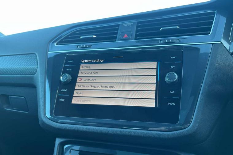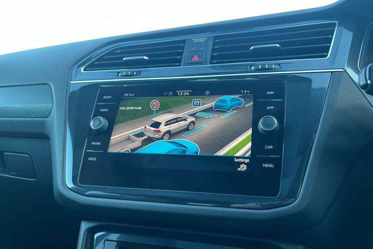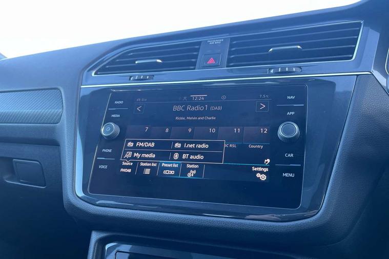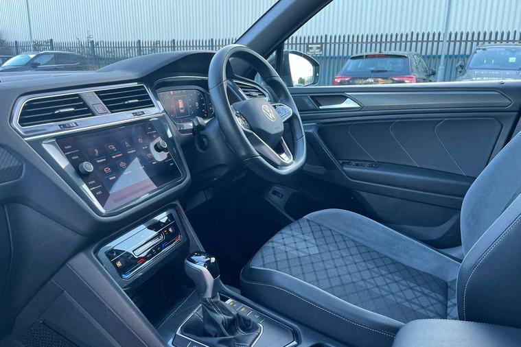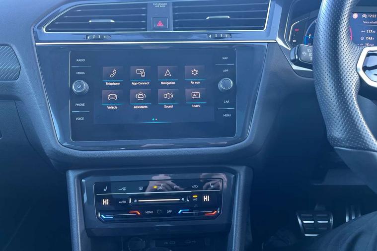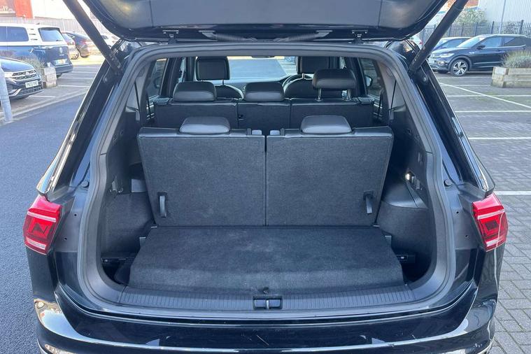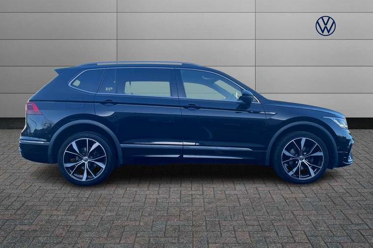 Adaptive cruise control, App-Connect, Digital cockpit pro, Driver alert system, Driver profile selection, Dynamic road sign display, eCall emergency call service, Electric boot lid, Lane change system side assist and rear traffic alert, Lane keeping system Lane Assist, Mobile phone interface comfort with inductive charging feature, Multifunction front facing camera, Progressive steering, Speedo and rev counter, electronic odometer, trip, service interval display and exterior temperature gauge, Diesel particulate filter, Front wheel drive, Start-stop system with battery regeneration (recuperation - energy recovery during braking), 2 USB-C ports in the front, 1 USB-C charging socket on the center console in the rear, 8 Speakers, DAB Digital radio, Diversity antenna for FM reception, Radio, Auto dimming interior rear view mirror, Automatic headlight control system, Body coloured bumpers in R Line style, Chrome mouldings on side window, Coming/leaving home lighting function, Dark red rear combination lamps in LED technology, Exterior badge deletion, Exterior mirror housings painted in silver, Headlight range control, Heated windscreen washer jets, LED headlamps with LED separate signature running light and dynamic cornering light, Poor weather light and cornering light, Privacy glass, Rain sensor, Rear fog light, Rear side wing doors, Rear spoiler in R style, Rear wiper, Silver roof rails, Third brake light, 12-volt outlet in centre console rear and luggage compartment, 12V socket in centre console, 3 head restraints in rear, 3 individual folding 2nd row seats, 3rd row 2 individual seats, Air Care Climatronic 3 zone automatic climate control with enhanced air filter and controls in the rear, Black roof lining, Door and side trim panel with leatherette insert, Drawers under front seats, Driver and front passenger seat height adjustment, Foldable front passenger seat backrest, Front + rear carpet mats, Front centre armrest, Front footwell illumination, Heated front seats, Heated leather wrapped multifunction sports steering wheel with touch control and shift paddles, Illuminated scuff plates, ISOFIX anchorage points for mounting 2 child seats on rear seats and i-Size child seats, Leather gearshift handle, LED interior light with switch off delay/dimmer and 2 front/rear LED reading lights, Stainless steel pedals, Sun visors with illuminated vanity mirrors, Ambience pack - Tiguan Allspace R Line, Driver assistance plus package - Tiguan Allspace, Park assist pack - Tiguan Allspace, 3 point seat belt for centre rear seat, 3 rear three point seatbelts, ABS+EBD+Brake assist, Driver and front passenger safety-optimised head restraints, Driver's and front passenger's airbag with front passenger's airbag deactivation switch, Electronic parking brake, Electronic Stability Control (ESC) inc EDL (Electronic Differential Lock) and ASR (Traction Control), Height adjustable front 3 point seatbelts + pretensioners, Manual rear child locks, Pedestrian monitoring, PreCrash preventive occupant protection Front and rear, Rear disc brakes, Side airbag in front and rear with curtain airbag, Two tone horn, Warning buzzer for seatbelts if unfastened, Anti theft alarm system with interior monitoring, backup horn and towing protection, Anti-theft wheel bolts, Electronic steering lock, Remote central locking with 2 remote folding keys, 20" Misano black with diamond turned surface alloy wheels with Airstop tyres,