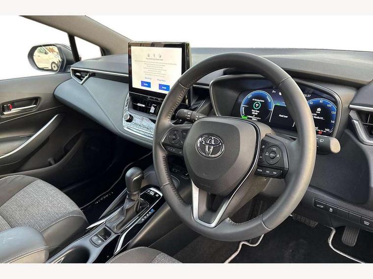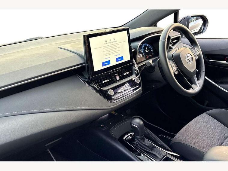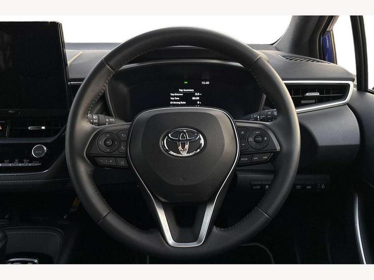 10.5" Multimedia display screen, 12.3" multi information screen, Adjustable speed limiter, Bluetooth telephone connectivity, Colour multi information display with 3D, Connected car functionality upgrade, tracker, remote status and e-care, Drive mode select (Eco, Normal), E-call, Electrically assisted power steering, EV drive indicator, Front and rear parking sensors, Full Digital 12.3" TFT Digital Combimeter, Gear position indicator with meter, Hybrid system indicator, Intelligent parking assist, Key reminder warning, Lane Departure Alert (LDA) switch on steering wheel, Lane departure alert - LDA, Memory on adjustable speed limiter, MyT connected services, Proactive driving assist (PDA), Reversing camera, Smart entry and push button start, Smartphone integration with Apple CarPlay and wired android auto, Speedometer, Toyota remote services, Toyota smart connect multimedia system, Toyota smart connect navigation, Wireless charger, Catalytic converter, Double wishbone rear suspension, Electric accelerator pedal, Front and rear stabilizers, Front differential 2.834, Gasoline particulate filter, MacPherson front suspension, Vehicle Stability Control (VSC), 6 speakers, DAB Digital radio, Smart voice assist/ Voice recognition, USB connector, 20% privacy rear side and quarter glass, A - Pillar garnish, Adaptive automatic high beam system (AHS), Aluminium roof rails, Anti-jam protection on power windows, Auto dimming rear view mirror, Auto headlights, Auto up and down function on all power windows, Automatic folding mirrors, B - Pillar in Black, Black door moulding, Black metallic meshed front grille, Black side air vents, Black toyota logo in front, Body colour rear roof spoiler, Body coloured door mirrors, Body coloured front spoiler, Body coloured outside door handles, Body coloured rear bumpers, Electrochromatic mirror, Ethanol washer fluid, Follow me home headlights, Front and rear fender high liner, Front bumper, Fuel caution label, Gloss black diffuser, Gloss black upper front grille, Height memory opening on power tailgate, LED daytime running lights, LED dual beam projector headlights, LED front fog lights, LED High mounted stop light, LED rear combi lights with LED lightguide, Light remind warning with auto cut off, Lower back and back door plated garnish, Manual headlight levelling system, New grille pattern, Noise reduction layer on front windows, Noise reduction layer on windscreen, Paint protective wrap guard, Power adjustable heated door mirrors, Power front windows, Power rear windows, Power tailgate with kick sensor, Rain sensing wipers, Rear bumper decoration with chrome plated inserts, Rear privacy windows, Rear side wing doors, Rear under guard with chrome ornament, Rear window defogger, Rear window wiper, Remote tailgate release on key, Reverse tilting door mirrors, RHD aimed headlight levelling system, Satin chrome insert on front door assist grips, Satin chrome inserts on rear passenger air vents, Satin chrome surround on lower front grille, Shark fin antenna, Single exhaust tailpipe, Tailgate release with push button, Tailgate remote release in cabin, Time adjustment on intermittent wiper, Turning signal integrated indicators in door mirrors, Unique lower skirt, UV-filter on driver and passenger windows, 12v power outlet - front, 12v power outlet - luggage side, 2 Shopping bag hooks in luggage compartment, 3 rear height adjustable headrests, 3 seat bench in 2nd row, 3 spoke steering wheel with satin insert, 4 tie down hooks in luggage compartment, 60/40 split folding rear seat, Adaptive cruise control (ACC) switch on steering wheel, Adjustable speed limiter switch on steering wheel, Aluminium door scuff plates with corolla batch, Audio, multi-info and telephone switches on steering wheel, Automatic light control system, Black armrest on centre console box, Black out with door sash and wheel house, Boot underfloor storage, Center console cover, Clean air filter, Driver and front passenger personal light, Driver and passenger sun visor with mirror and light, Dual level deckboard, Dual mike in roof, Dual sided boot floor, Dual zone automatic air conditioning with ECO mode switch, Electric lumbar support for passenger, Fabric upholstery, Forward tilting 2nd row seats, Front and rear bottle holders, Front and rear door pockets, Front console box with stitching, Front floor mats, Front head restraints, Front overhead assist grips, Front passenger seat, Front sliding synthetic leather armrest, Gear knob, Gloss black gear shift console, Heated front seats, Illuminated entry system in room lamp, ISOFIX child restraint system, Leather gear shift with satin chrome on gear shift console, LED boot light, Manual height adjustable for driver and front passenger seat, Manual tilt and telescopic steering wheel, Manually sliding driver seat, Manually sliding front passenger seat, Matt black front door assist grip, Nanoe-X air purifier, Passenger seat back pocket, Pollen filter, Power adjustable lumbar support on driver seat, Power window switches with satin chrome inserts, PVC door armrest, Rear air vents, Rear armrest with 2 cupholders, Rear fabric floor mats, Rear overhead assist grips, Rear passenger coat hooks (2), Rear passenger personal lights, Refrigerant correspondent hf01234f, Regulation compliancy wvta label +, Remote air conditioning, Remote controlled Toyota easy flat system, Retractable tonneau cover with luggage partition net, Satin chrome inserts on centre air vents, Satin chrome inside door handles, Satin chrome surround on heater control panel, Satin chrome surround on multimedia, Satin chrome surround on speedometer, Side storage in boot, Slow opening glovebox with lights, Soft touch front and rear door trim, USB charger front, Voice recognition switch on steering wheel, Whiplash Injury Lessening (WIL) feature (active headrest) for seats, White ambient lighting on open tray and front cup holder, Toyota safety sense 3 pack - Corolla, 15" Front brakes, 3x3 point rear seatbe