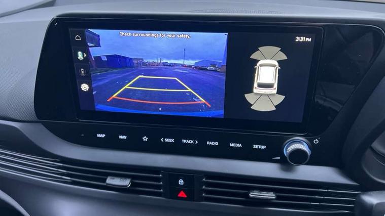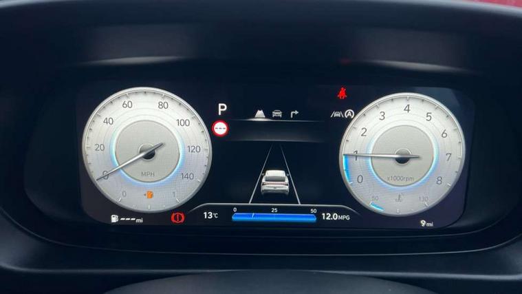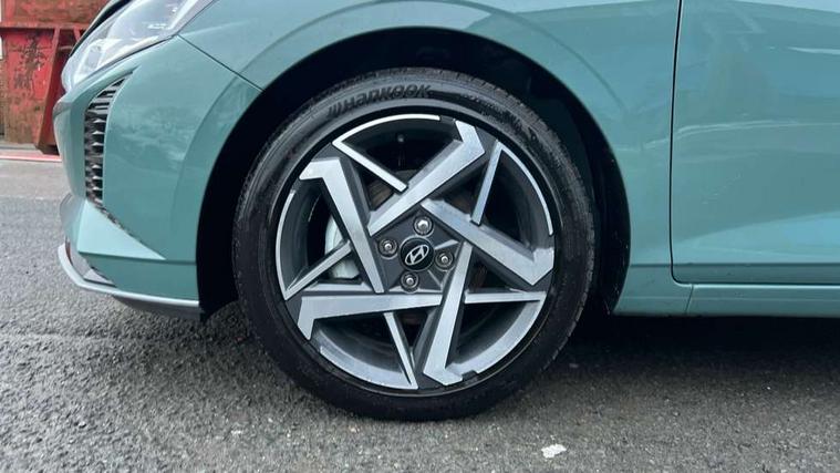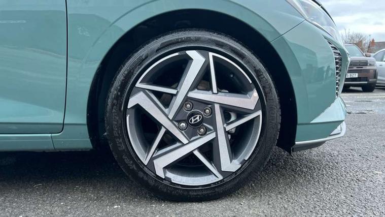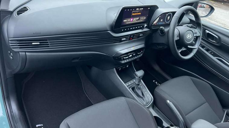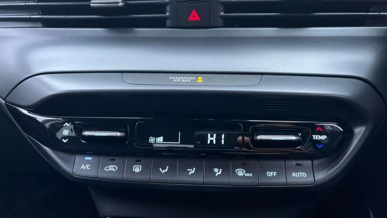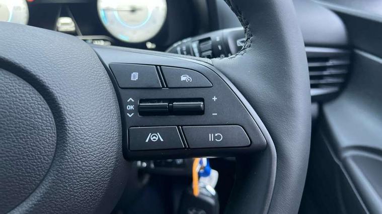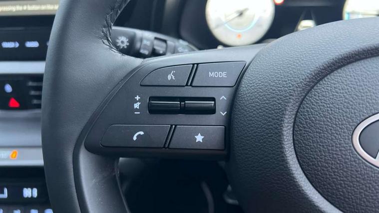 10.25" touchscreen + navigation, 2nd Gen eCall, 8" Touchscreen DAB Radio with android auto and apple carplay, Forward collision assist with car, pedestrian and cycle detection, Front parking sensor, Intelligent speed assist, Intelligent speed limit warning, Lane follow assist, Lane keep assist, MAP OTA updates, PAS, Rear parking sensor, Rear view camera with dynamic guidelines, USB C port front, USB C Port in rear, Automatic headlights with dusk sensor, Electric adjustable heated door mirrors, Electric folding door mirrors, Front grille mesh pattern design, High beam assist, LED 3rd brake light, LED daytime running lights, LED Headlights, LED taillights, Privacy glass - Rear windows and tailgate, Rain sensor, Rear side wing doors, Rear wiper, Repositioned flat metal hyundai emblem, Trailer wiring, 3 seat bench in 2nd row, Adjustable head restraints, Automatic air conditioning, Cloth upholstery, Floor mats, Heated front seats, Heated steering wheel, Leather steering wheel, Multi colour ambient lighting, Single front passenger seat, 3x3 point rear seatbelts, ABS with front and rear diagonally split, Autonomous emergency braking, Child locks on rear doors, Front ventilated disc brakes, Rear solid disc brakes, Tyre pressure monitoring system, 17" Alloy wheels, Tyre repair kit,