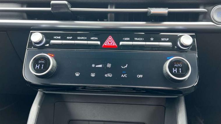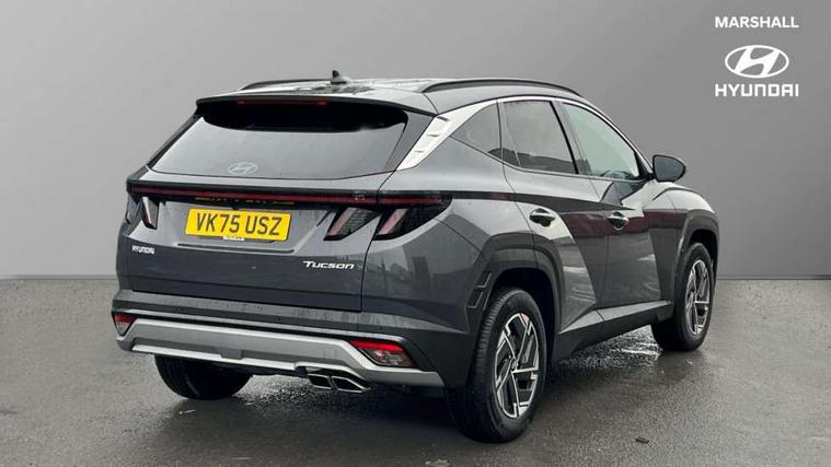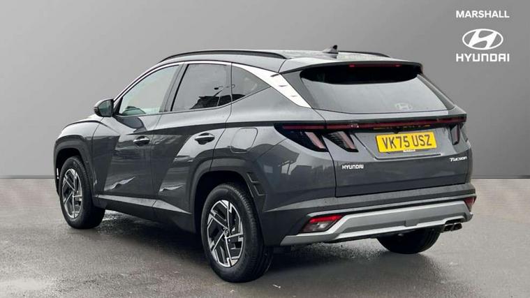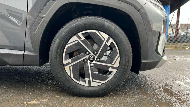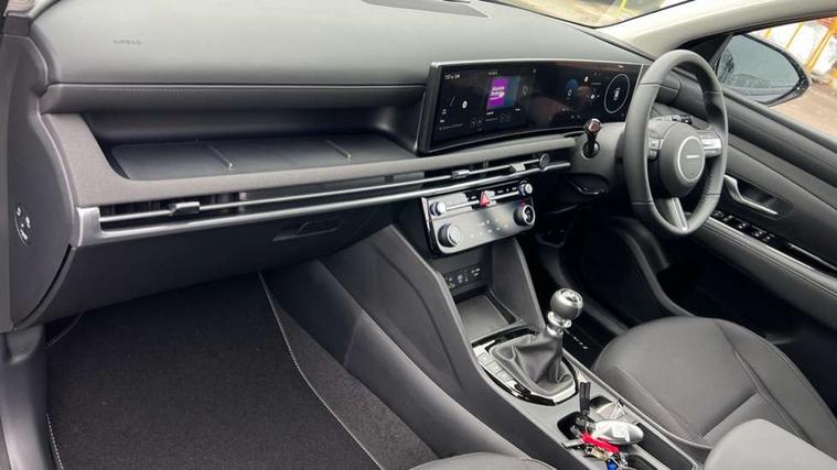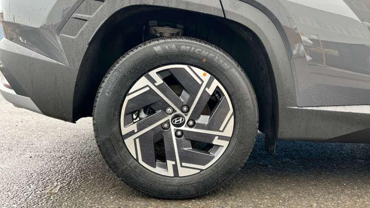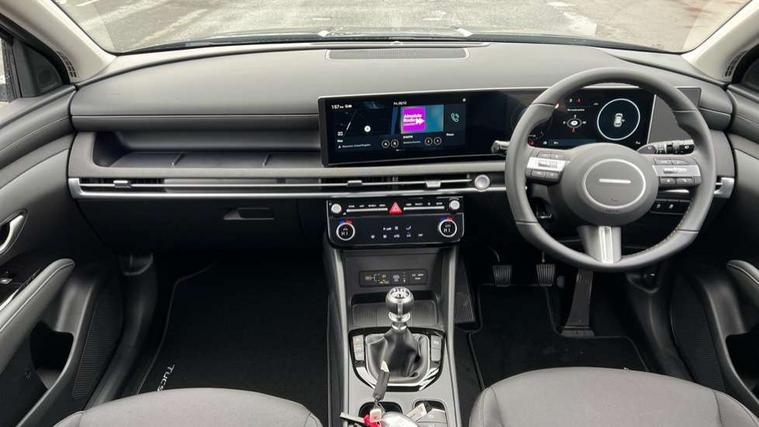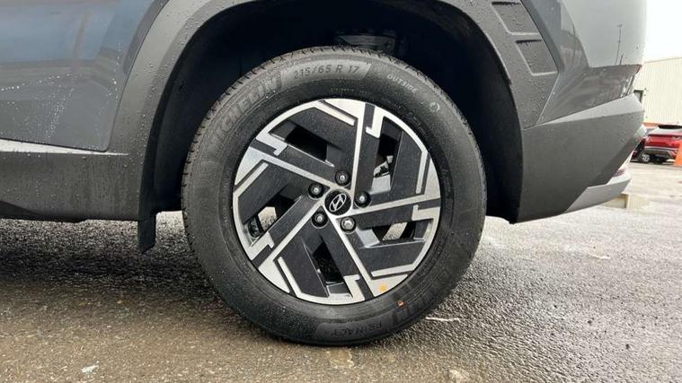 12.3" LCD display with driver's supervision instrument cluster, 12.3" widescreen navigation with bluelink and mapcare, Bluetooth system, Cruise control, Digital clock, Drive mode selector, Driver attention warning, E-call, Emergency stop signalling system, Forward Collision Avoidance Assist (FCA) - Car, Pedestrian and Cycle, Front and rear parking sensors, Hyundai road side assistance, Intelligent speed limit assist, Lane follow assist, Lane keep assist, Over the air updates(OTA), PAS, Rear camera and guidance parking system, Rev counter, Tailgate open warning light, Trip computer, Trip odometer, Voice recognition, Water temperature gauge, Windscreen washer fluid sensor and warning indicator, Wireless Apple CarPlay/Android Auto, Wireless phone charging pad, 2 front and 2 rear speakers with 2 tweeters, 2 front and 2 rear USB-C ports, DAB Digital radio, Steering wheel mounted audio/phone controls, Adjustable intermittent front windscreen wipers with aero wiper blade, Auto dimming rear view mirror, Automatic defog system, Automatic headlights with dusk sensor, Automatic windscreen wipers with rain sensor, Black wheel arches, Body colour bumpers, Body colour door mirrors with integrated indicators, Body colour exterior door handles, Electrically adjustable, heated and power folding door mirrors, Follow me home headlights, Front and rear electric windows with anti-trap mechanism and one touch control, Front fog lights, LED 3rd brake light, LED daytime running lights, LED Headlights, LED rear lights, Positioning Lights - LED, Privacy glass - Rear windows and tailgate, Rear side wing doors, Rear wash/wipe with intermittent wipe setting, Roof rails, Soft touch rear door paneling, Tinted glass with windscreen shade band, Trailer stability assist, 12V power outlets in front console and luggage compartment, 3 seat bench in 2nd row, 40/20/40 split folding rear seat, 64 colours interior ambient lighting, Adjustable head restraints (Up and down), Cupholders in rear armrest, Door courtesy lights, Driver and passenger sunvisors with illuminated LED vanity mirrors, Driver's seat manual height adjust, Dual zone climate control, Front and rear door pockets, Front armrest with storage box, Front centre console and door bottle holders, Height/reach adjustable steering column, Illuminated/air conditioned glove compartment, ISOFIX child seat anchorage points attached on outer rear seats, Leather wrapped steering wheel and gear knob, LED interior lighting, Luggage compartment lighting, Luggage cover, Luggage hooks, Luggage net, Manual height adjustable front passenger seat, Map and reading lights, Premium cloth upholstery, Rear seat remote folding function, Reclining rear seats, Retractable load cover, Single front passenger seat, Sunglasses holder, Touch sensitive climate controls with temperature dials, Underfloor boot compartment, Trailer wiring package - Tucson, 3x3 point rear seatbelts, Active bonnet, Airbag - Front, front side, curtain and centre front airbags, Anti-lock brake system (ABS), Brake assist function, Childproof rear door locks, Curtain airbag roll over sensor, Downhill brake control, Electric parking brake, Electronic stability control, Front and rear seatbelt reminder, Front passenger airbag deactivation switch, Front seatbelt pretensioners, Hill start assist control (HAC), Multi-Collision braking, Outer rear seatbelt height adjustment, Seatbelt height adjustment for front seats, Traction control, Tyre pressure monitoring system with individual tyre pressure display - TPMS, Vehicle stability management, Deadlocks, Immobiliser, Locking wheel nuts, Remote control central locking, Smart key with keyless entry and engine start/stop button, Speed sensitive auto door locking, Thatcham category 1 alarm, 17" Alloy wheels, Tyre repair kit,