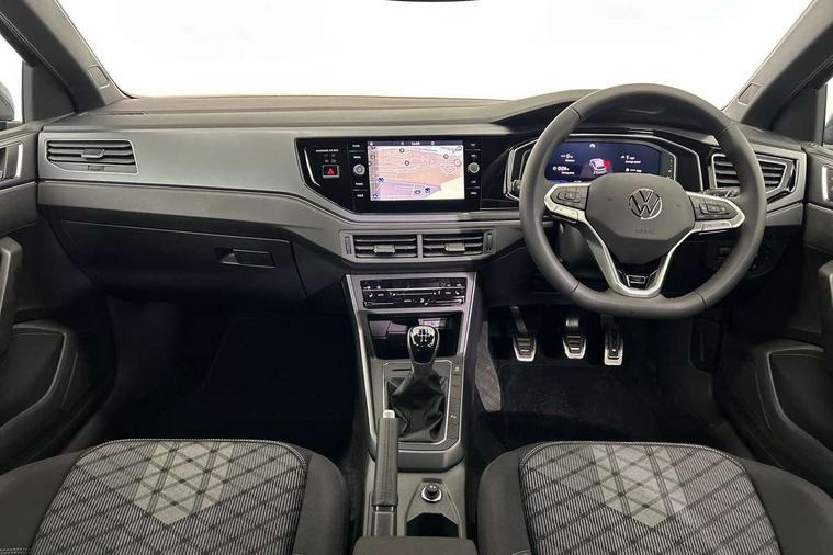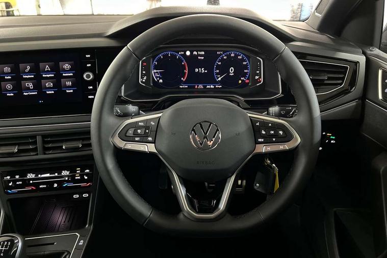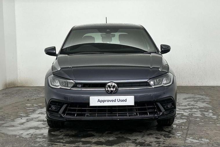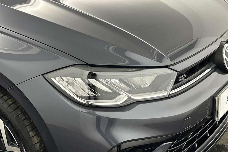 Advanced driver attention and drowsiness monitor, Bluetooth mobile phone interface, Digital Cockpit Pro with 10.25" Display, Dynamic road sign display, Emergency call service, Multifunction camera, Power assisted speed sensitive steering, Predictive adaptive cruise control without follow-to-stop and speed limiter, Preparation for We connect and We connect plus, Speedo and rev counter, electronic odometer, trip, service interval display and fuel gauge, Standard rear axle, Travel Assist - Lane keeping system and traffic jam assist, Travel assist including emergency assist, Trip computer, Warning signal and warning light for front and rear seatbelts not fastened, Washer fluid level indicator, Wireless app connect, Front wheel drive, Rear shock absorpion, Start-stop system with battery regeneration (recuperation - energy recovery during braking), DAB Digital radio, Diversity antenna for FM reception, Body colour bumpers, Body colour door handles, Electric front windows, Front scuff plates with R-Line logo, Heat insulating glass windscreen, Power folding adjustable/heated exterior mirrors and front passenger exterior mirror lowering function, Rear electric windows, Rear fog light, Rear side wing doors, Rear windscreen washer and wiper with interval delay, Third brake light, 12V power socket in centre console, 2 USB-C ports in the front, 2 USB-C charging sockets on the center console in the rear, 3 rear head restraints, 60/40 split folding rear seat and rear seat bench not split, Air care climatronic air conditoning system with active combination filter and 2-zone temperature control, Black roof lining, Carpet mats, front and rear, Chrome plated radiator grille inserts, air vent surrounds and light switch surrounds, Door and side trim panel, Driver and front passenger seat height adjustment, Driver/passenger sunvisors with illuminated vanity mirrors, Front centre armrest, Front footwell illumination, Front seat backrest storage pockets, Front sports comfort seats, Handbrake lever handle in leather, Headliner in recycled material, Isofix child seat preparation easy-fit (for two outer rear seats, and front passenger seat) compatible with I-size, Karoso artvelours cloth upholstery, Leather trimmed gear knob, LED interior light with switch off delay and dimmer, 2 reading lights front and rear, Luggage compartment cover, Luggage compartment floor, Luggage compartment lighting, Lumbar adjustment for front seats, Multifunction steering wheel, Single front passenger seat, Stainless steel pedals, Standard pedal cluster, Light and sight pack - Polo R-Line/Black Edition, 3 point height adj front seatbelts + pretensioners, 3x3 point rear seatbelts, ABS, Driver and front passenger airbag with front passenger airbag deactivation, Drivers and front passengers safety optimised head restraints, ESC (Electronic stability control) + EDL (Electronic Differntial lock) and ASR (Traction control), Extended and predictive pedestrian/ cyclist protection, Front curtain and side airbags with center airbag, Hill hold control, Manual child lock in rear doors, Single tone horn, Tyre pressure loss indicator, Alarm with interior protection, Anti-theft alarm system with interior monitoring, backup horn, and towing protection, Anti-theft wheel bolts, Electronic engine immobiliser, Chrome applications on rotary light, mirror adjustment, window regulator switches, outlet with frame in black, Dark grey anodised matt decorative inserts in dash and front door panels, 16" Coventry alloy wheels, Low rolling resistance tyres,