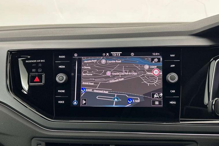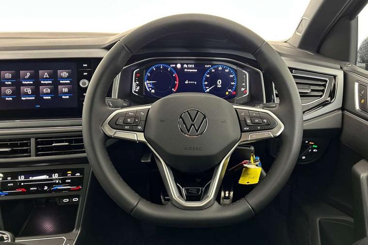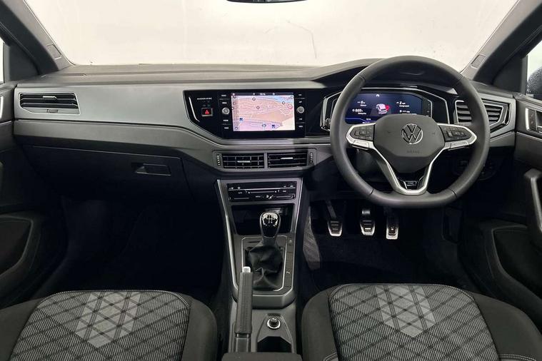 Advanced driver attention and drowsiness monitor, Bluetooth mobile phone interface, Digital Cockpit Pro with 10.25" Display, Dynamic road sign display, Emergency call service, Multifunction camera, Power assisted speed sensitive steering, Predictive adaptive cruise control without follow-to-stop and speed limiter, Preparation for We connect and We connect plus, Speedo and rev counter, electronic odometer, trip, service interval display and fuel gauge, Standard rear axle, Travel Assist - Lane keeping system and traffic jam assist, Travel assist including emergency assist, Trip computer, Warning signal and warning light for front and rear seatbelts not fastened, Washer fluid level indicator, Wireless app connect, Front wheel drive, Rear shock absorpion, Start-stop system with battery regeneration (recuperation - energy recovery during braking), DAB Digital radio, Diversity antenna for FM reception, Body colour bumpers, Body colour door handles, Electric front windows, Front scuff plates with R-Line logo, Heat insulating glass windscreen, Power folding adjustable/heated exterior mirrors and front passenger exterior mirror lowering function, Rear electric windows, Rear fog light, Rear side wing doors, Rear windscreen washer and wiper with interval delay, Third brake light, 12V power socket in centre console, 2 USB-C ports in the front, 2 USB-C charging sockets on the center console in the rear, 3 rear head restraints, 60/40 split folding rear seat and rear seat bench not split, Air care climatronic air conditoning system with active combination filter and 2-zone temperature control, Black roof lining, Carpet mats, front and rear, Chrome plated radiator grille inserts, air vent surrounds and light switch surrounds, Door and side trim panel, Driver and front passenger seat height adjustment, Driver/passenger sunvisors with illuminated vanity mirrors, Front centre armrest, Front footwell illumination, Front seat backrest storage pockets, Front sports comfort seats, Handbrake lever handle in leather, Headliner in recycled material, Isofix child seat preparation easy-fit (for two outer rear seats, and front passenger seat) compatible with I-size, Karoso artvelours cloth upholstery, Leather trimmed gear knob, LED interior light with switch off delay and dimmer, 2 reading lights front and rear, Luggage compartment cover, Luggage compartment floor, Luggage compartment lighting, Lumbar adjustment for front seats, Multifunction steering wheel, Single front passenger seat, Stainless steel pedals, Standard pedal cluster, Light and sight pack - Polo R-Line/Black Edition, 3 point height adj front seatbelts + pretensioners, 3x3 point rear seatbelts, ABS, Driver and front passenger airbag with front passenger airbag deactivation, Drivers and front passengers safety optimised head restraints, ESC (Electronic stability control) + EDL (Electronic Differntial lock) and ASR (Traction control), Extended and predictive pedestrian/ cyclist protection, Front curtain and side airbags with center airbag, Hill hold control, Manual child lock in rear doors, Single tone horn, Tyre pressure loss indicator, Alarm with interior protection, Anti-theft alarm system with interior monitoring, backup horn, and towing protection, Anti-theft wheel bolts, Electronic engine immobiliser, Chrome applications on rotary light, mirror adjustment, window regulator switches, outlet with frame in black, Dark grey anodised matt decorative inserts in dash and front door panels, 16" Coventry alloy wheels, Low rolling resistance tyres,