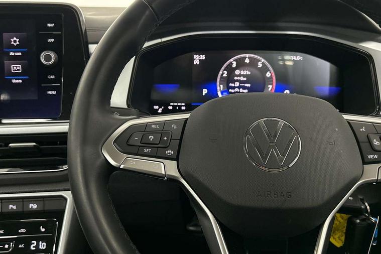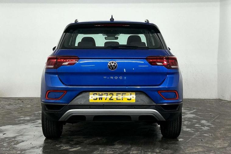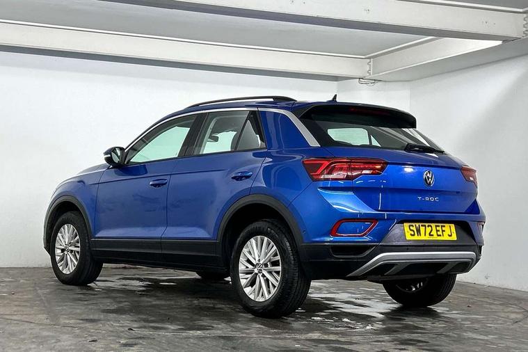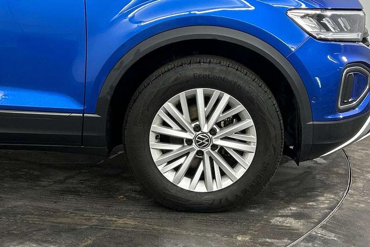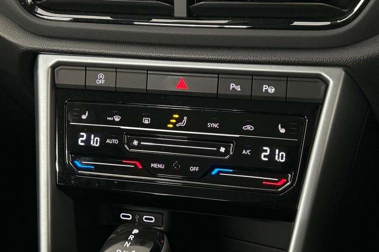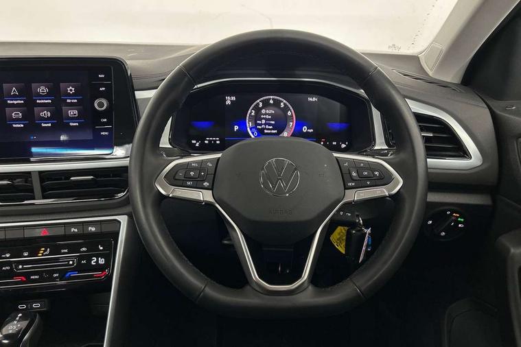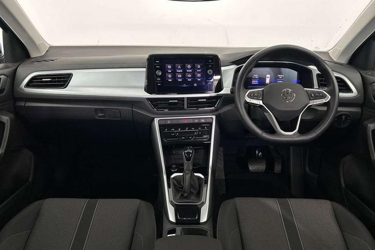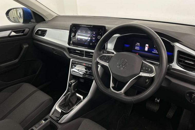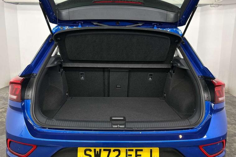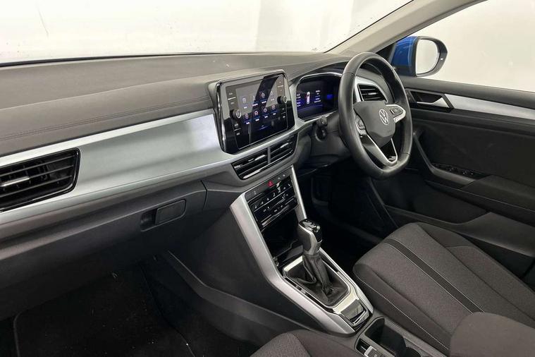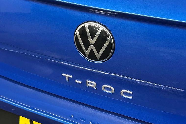 Bluetooth mobile phone interface, Driver alert system with fatigue detection, Driver tips and journey analysis, Emergency call service, Lane keeping system Lane Assist, Modified key software - reduce switch off time for key status change to Long no motion, Online services, Park assist including front and rear parking sensors, Power assisted speed sensitive steering, Service interval indicator, Tailgate/trunk lid release from outside, Think blue trainer driver tips and journey analysis, Warning sound and light for front seatbelts unfastened, Wireless app connect, Battery regeneration during braking, Front shock absorption, Rear shock absorption chassis with increased ride height, Start/stop function with battery regeneration, DAB Digital radio, Diversity antenna for FM reception, Front and rear 6 speakers, Music playback - MP3, WMA and AAC files, Premium USB cable in choice of either Apple or Android smartphone compatibility, SD card slot, Simultaneous pairing of 2 compatible mobile devices, Title and cover art display, We Connect and We Connect Plus functionality, 3rd brake light, Auto dimming interior rear view mirror, Automatic hazard lights activation under emergency braking, Automatic headlight control with LED separate daytime running lights with coming/leaving home function, Black roof rails, Body coloured bumpers and radiator grille with chrome trim and front fog lamps with chrome bezel, Body coloured exterior mirror housings and door handles, Extended roof spoiler, Exterior mirrors aspherical on driver side, convex on front passenger side, External USB type C socket and charging sockets, Front windscreen wiper with intermittent wipe and 4 position delay, Heated rear window, LED Headlights, LED rear combination lamps, LED rear number plate lights, LED tail lamp rear comination lamps, Power windows with comfort operation and circuit breaker, Rain sensor, Rear exhaust tailpipe, Rear fog light on one side and reversing lights on both sides, Rear side wing doors, Rear wash/wipe with intermittent wipe setting, Remote electrically foldable door mirrors, puddle lights and reverse activated passenger's door mirror, 12V power socket in centre console, 3 rear head restraints, 3 seat bench in 2nd row, 4 load lashing points in luggage compartment, Air care climatronic air conditoning system with active combination filter and 2-zone temperature control, Ambient lighting with mirror logo projection, Cloth upholstery, Door and side trim panel in cloth, Drawer under drivers seat, Driver/front passenger seat height adjustment, Front centre armrest, Front comfort sports seats, Front cupholders x 2, Front reading light, Instrument lighting, white adjustable panel illumination, Interior light delay, Isofix child seat preparation, Leather gearshift handle, Load-through provision with cup holder when folded down ('Unsplit rear seat bench, split folding backrest, with centre armrest), Luggage compartment lighting, Lumbar support for driver's and front passengers seat, Non-folding front passenger seat backrest, Single front passenger seat, Storage compartment in left and right luggage area, Storage compartment in rear doors, Storage compartments in driver and front passenger doors, Sunvisors with illuminated vanity mirrors, Variable boot floor, height adjustable and removable, Driver assistance pack without proactive passenger protection - T-Roc, 3 point height adj front seatbelts + pretensioners, 3 point seatbelts in outer rear with ECE label, ABS, Child locks on rear doors, Driver and front passenger airbag with front passenger airbag deactivation, Driver and front passenger safety-optimised head restraints, Drivers seatbelt reminder, Electronic parking brake, Electronic Stability Control (ESC) inc EDL (Electronic Differential Lock) and ASR (Traction Control), Front and rear passengers curtain airbag system including front side airbags, Front assist with city emergency braking and pedestrian monitoring, Front disc brakes, Front seat side impact airbags, Hill start assist, Predictive pedestrian protection, Rear disc brakes, Single tone horn, Tyre pressure loss indicator, Volkswagen roadside assistance, Alarm with interior protection, Anti-theft alarm system with interior monitoring, backup horn, and towing protection, Remote central locking with SAFELOCK, radio remote control with 2 remote control folding keys, Pewter matt decorative inserts for intrument panel, centre console and door panels at the front, Trims for alloy wheels,
