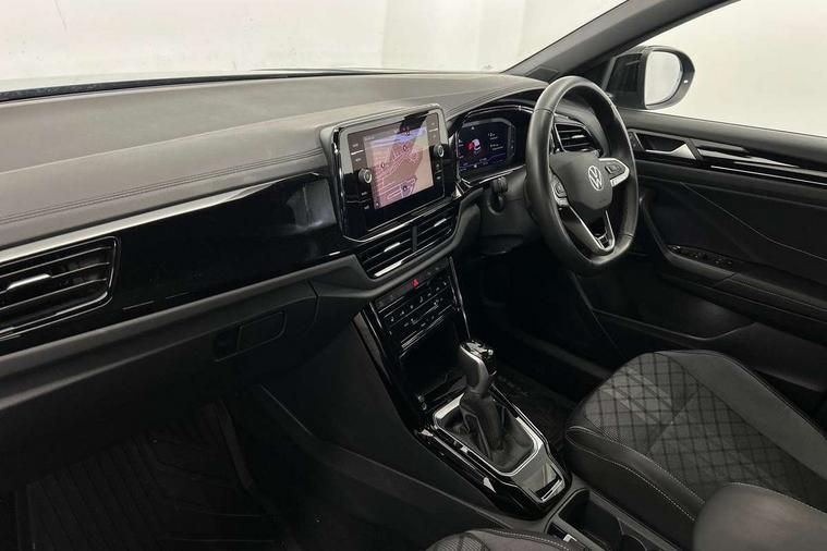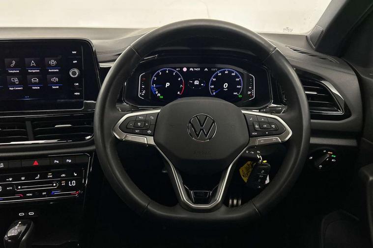 10.25" Digital cockpit pro, Advanced driver attention and drowsiness monitor, Bluetooth mobile phone interface, Emergency call service, Lane keeping system Lane Assist, Modified key software - reduce switch off time for key status change to Long no motion, Online services, Park assist including front and rear parking sensors, Service interval indicator, Tailgate/trunk lid release from outside, Think blue trainer driver tips and journey analysis, Warning sound and light for front seatbelts unfastened, Wireless app connect, Battery regeneration during braking, Start/stop function with battery regeneration, Diversity antenna for FM reception, Music playback - MP3, WMA and AAC files, Premium USB cable in choice of either Apple or Android smartphone compatibility, SD card slot, Simultaneous pairing of 2 compatible mobile devices, Title and cover art display, We Connect and We Connect Plus functionality, 3rd brake light, Auto dimming interior rear view mirror, Automatic hazard lights activation under emergency braking, Automatic headlight control with LED separate daytime running lights with coming/leaving home function, Electrically adjustable and heated door mirrors, Extended roof spoiler, Exterior mirrors aspherical on driver side, convex on front passenger side, External USB type C socket and charging sockets, Front windscreen wiper with intermittent wipe and 4 position delay, Heated rear window, LED rear combination lamps, LED rear number plate lights, Power windows with comfort operation and circuit breaker, R-Line design body coloured bumpers, Rain sensor, Rear exhaust tailpipe, Rear fog light on one side and reversing lights on both sides, Rear side wing doors, Rear wash/wipe with intermittent wipe setting, Remote electrically foldable door mirrors, puddle lights and reverse activated passenger's door mirror, 12V power socket in centre console, 3 rear head restraints, 3 seat bench in 2nd row, 4 load lashing points in luggage compartment, Air care climatronic air conditoning system with active combination filter and 2-zone temperature control, Black roof lining, Chrome plated radiator grille inserts, air vent surrounds and light switch surrounds, Door and side trim panel with leatherette insert, Front + rear carpet mats, Front centre armrest, Front cupholders x 2, Front footwell illumination, Front reading light, Front scuff plates with R Line logo, Front seat back storage pockets, Glove compartment door with light, Instrument lighting, white adjustable panel illumination, Interior ambient lighting and surround lighting, Interior light delay, Isofix child seat preparation, Leather gearshift handle, Load-through provision with cup holder when folded down ('Unsplit rear seat bench, split folding backrest, with centre armrest), Luggage compartment lighting, Single front passenger seat, Stainless steel pedals, Storage compartment in left and right luggage area, Storage compartment in rear doors, Storage compartments in driver and front passenger doors, Sunvisors with illuminated vanity mirrors, Variable boot floor, height adjustable and removable, Driver assistance pack without proactive passenger protection - T-Roc, 3 point height adj front seatbelts + pretensioners, 3 point seatbelts in outer rear with ECE label, ABS, Child locks on rear doors, City emergency braking and pedestrian monitoring, Driver and front passenger airbag with front passenger airbag deactivation, Driver and front passenger safety-optimised head restraints, Drivers seatbelt reminder, Electronic parking brake, Electronic Stability Control (ESC) inc EDL (Electronic Differential Lock) and ASR (Traction Control), Front and rear passengers curtain airbag system including front side airbags, Hill start assist, Predictive pedestrian protection, Rear disc brakes, Two tone horn, Tyre pressure loss indicator, Volkswagen roadside assistance, Anti-theft alarm system with interior monitoring, backup horn, and towing protection, Remote central locking with SAFELOCK, radio remote control with 2 remote control folding keys, Trims for alloy wheels,