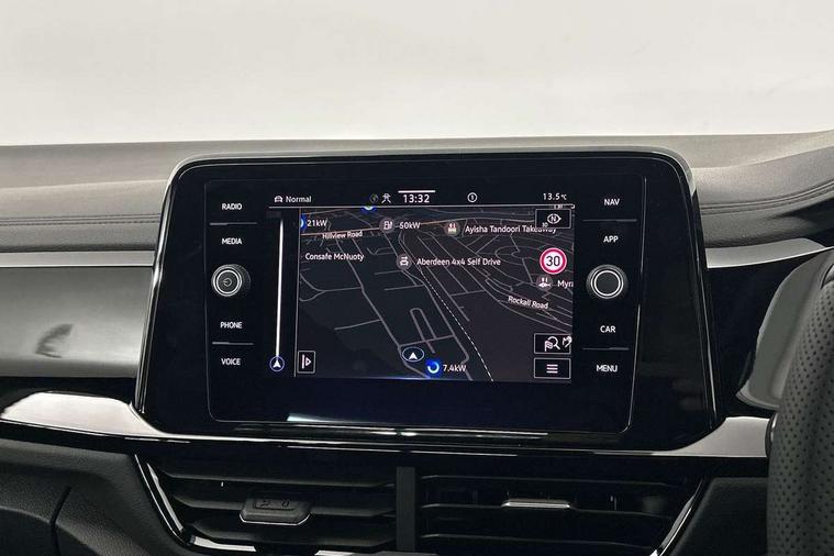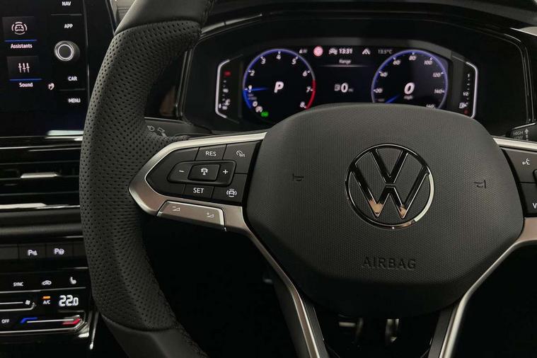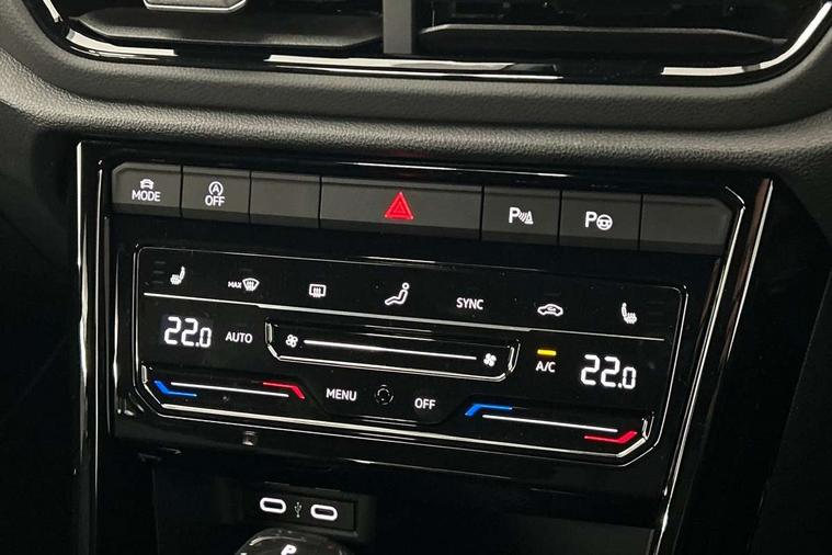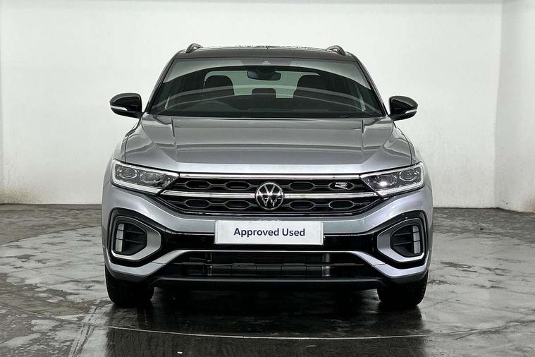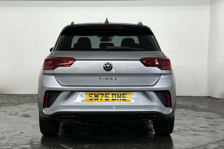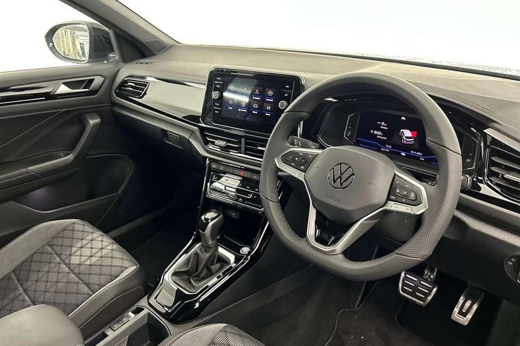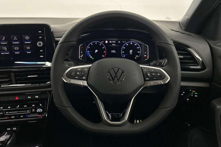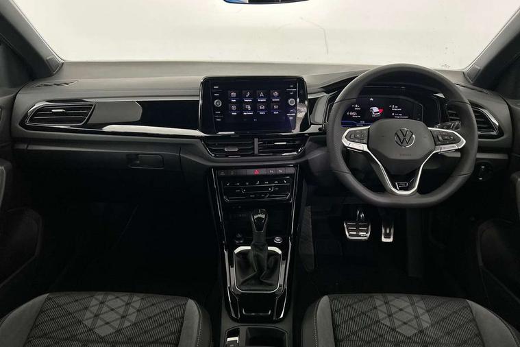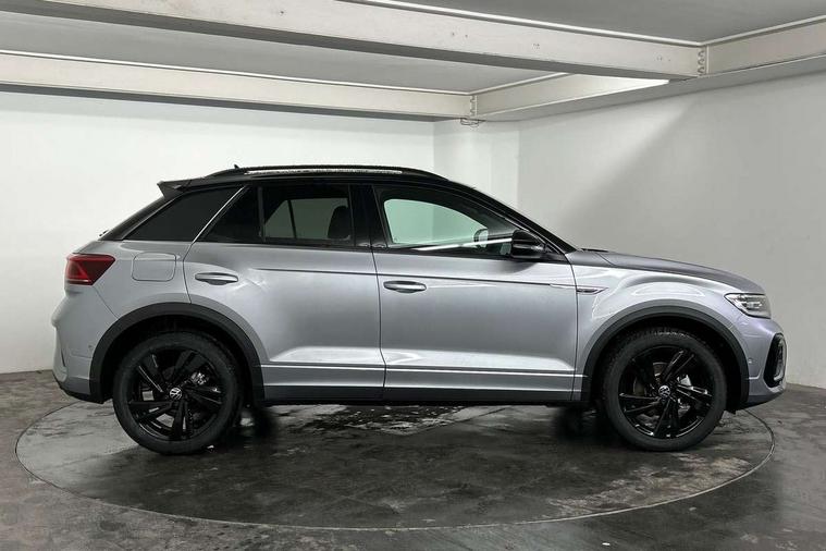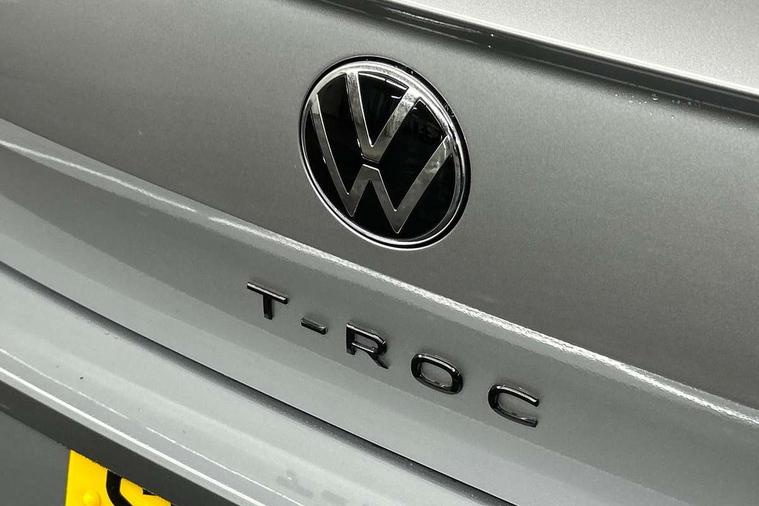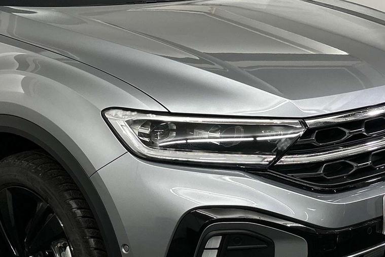 10.25" Digital cockpit pro, Advanced driver attention and drowsiness monitor, Emergency call service, Lane keeping system Lane Assist, Mobile phone interface, Modified key software - reduce switch off time for key status change to Long no motion, Online services, Park assist including front and rear parking sensors, Power assisted speed sensitive steering, Service interval indicator, Tailgate/trunk lid release from outside, Think blue trainer driver tips and journey analysis, Warning sound and light for front seatbelts unfastened, Wireless app connect, Battery regeneration during braking, Rear shock absorption chassis with increased ride height, Start/stop function with battery regeneration, DAB Digital radio, Diversity antenna for FM reception, Front and rear 6 speakers, Music playback - MP3, WMA and AAC files, Premium USB cable in choice of either Apple or Android smartphone compatibility, SD card slot, Simultaneous pairing of 2 compatible mobile devices, Title and cover art display, We Connect and We Connect Plus functionality, Auto dimming interior rear view mirror, Automatic hazard lights activation under emergency braking, Automatic headlight control with LED separate daytime running lights with coming/leaving home function, Dynamic cornering light, Electrically adjustable and heated door mirrors, Extended roof spoiler, Exterior mirrors aspherical on driver side, convex on front passenger side, External USB type C socket and charging sockets, Front windscreen wiper with intermittent wipe and 4 position delay, Heated rear window, Illuminated front grille, IQ LED matrix headlights, LED 3rd brake light, LED rear number plate lights, LED rear tail lights with dynamic turn signal, Light mode for poor weather, rain, fog or snow, Power windows with comfort operation and circuit breaker, R-Line design body coloured bumpers, Rain sensor, Rear exhaust tailpipe, Rear fog light on one side and reversing lights on both sides, Rear side wing doors, Rear wash/wipe with intermittent wipe setting, Remote electrically foldable door mirrors, puddle lights and reverse activated passenger's door mirror, 12V power socket in centre console, 3 rear head restraints, 3 seat bench in 2nd row, 4 load lashing points in luggage compartment, Air care climatronic air conditoning system with active combination filter and 2-zone temperature control, Artvelours cloth upholstery, Black roof lining, Chrome plated radiator grille inserts, air vent surrounds and light switch surrounds, Door and side trim panel with leatherette insert, Drawer under drivers seat, Driver seat height adjust, Driver's seat lumbar support, Front + rear carpet mats, Front centre armrest, Front comfort sports seats, Front cupholders x 2, Front footwell illumination, Front reading light, Front scuff plates with R Line logo, Front seat back storage pockets, Glove compartment door with light, Instrument lighting, white adjustable panel illumination, Interior ambient lighting and surround lighting, Interior light delay, Isofix child seat preparation, Leather gearshift handle, Leather wrapped multifunction steering wheel with paddle shift, Load-through provision with cup holder when folded down ('Unsplit rear seat bench, split folding backrest, with centre armrest), Luggage compartment lighting, Non-folding front passenger seat backrest, Passenger seat height adjuster, Passenger seat lumbar support, Single front passenger seat, Stainless steel pedals, Storage compartment in left and right luggage area, Storage compartment in rear doors, Storage compartments in driver and front passenger doors, Sunvisors with illuminated vanity mirrors, Variable boot floor, height adjustable and removable, Winter pack without heated windscreen washer jets - T-Roc, 3 point height adj front seatbelts + pretensioners, 3 point seatbelts in outer rear with ECE label, ABS, Child locks on rear doors, City emergency braking and pedestrian monitoring, Driver and front passenger airbag with front passenger airbag deactivation, Driver and front passenger safety-optimised head restraints, Drivers seatbelt reminder, Electronic parking brake, Electronic Stability Control (ESC) inc EDL (Electronic Differential Lock) and ASR (Traction Control), Front and rear passengers curtain airbag system including front side airbags, Front disc brakes, Hill start assist, Predictive pedestrian protection, Rear disc brakes, Two tone horn, Tyre pressure loss indicator, Volkswagen roadside assistance, Tool kit, Trims for alloy wheels, Tyre mobility kit including compressor and sealing foam,