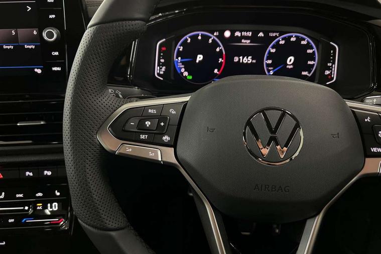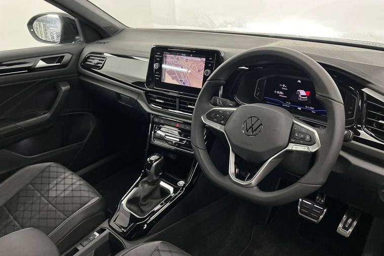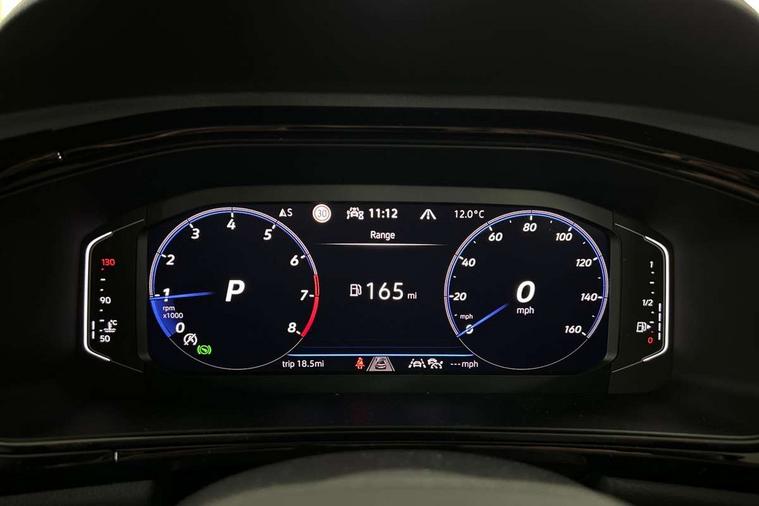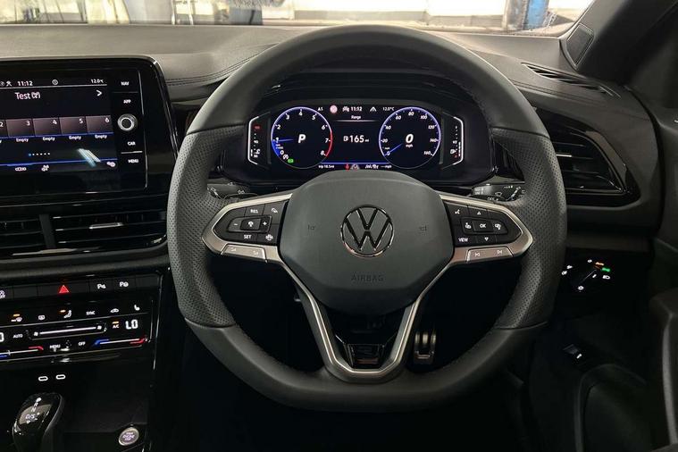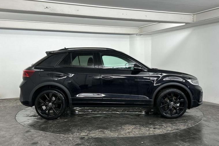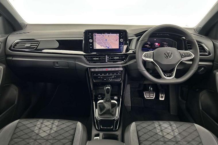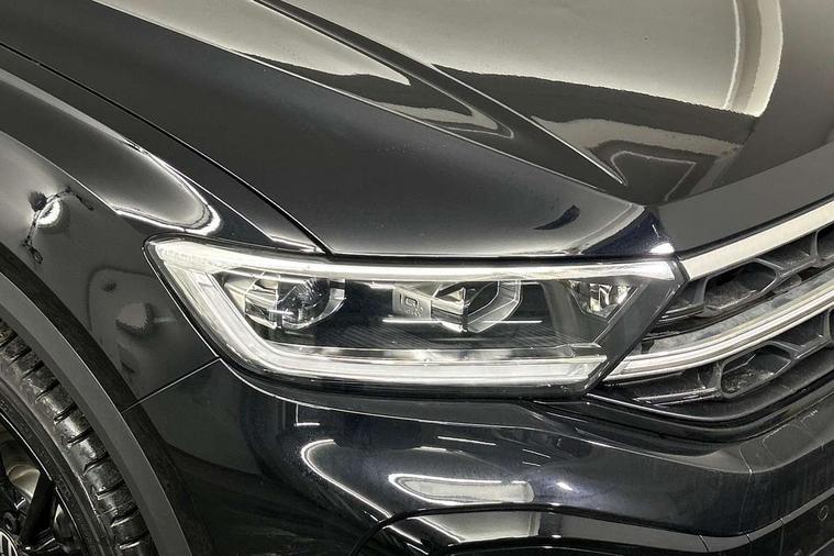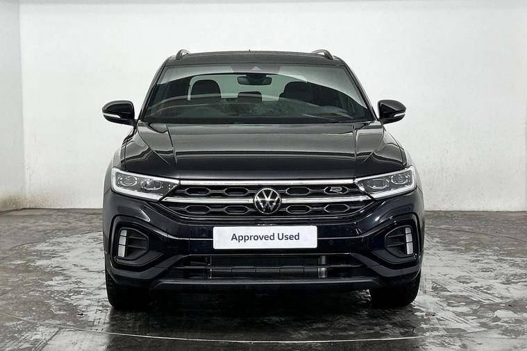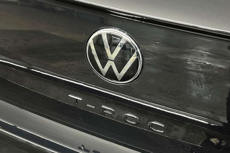 10.25" Digital cockpit pro, Advanced driver attention and drowsiness monitor, Emergency call service, Lane keeping system Lane Assist, Mobile phone interface, Modified key software - reduce switch off time for key status change to Long no motion, Online services, Park assist including front and rear parking sensors, Power assisted speed sensitive steering, Service interval indicator, Tailgate/trunk lid release from outside, Think blue trainer driver tips and journey analysis, Warning sound and light for front seatbelts unfastened, Wireless app connect, Battery regeneration during braking, Rear shock absorption chassis with increased ride height, Start/stop function with battery regeneration, DAB Digital radio, Diversity antenna for FM reception, Front and rear 6 speakers, Music playback - MP3, WMA and AAC files, Premium USB cable in choice of either Apple or Android smartphone compatibility, SD card slot, Simultaneous pairing of 2 compatible mobile devices, Title and cover art display, We Connect and We Connect Plus functionality, Auto dimming interior rear view mirror, Automatic hazard lights activation under emergency braking, Automatic headlight control with LED separate daytime running lights with coming/leaving home function, Dynamic cornering light, Electrically adjustable and heated door mirrors, Extended roof spoiler, Exterior mirrors aspherical on driver side, convex on front passenger side, External USB type C socket and charging sockets, Front windscreen wiper with intermittent wipe and 4 position delay, Heated rear window, Illuminated front grille, IQ LED matrix headlights, LED 3rd brake light, LED rear number plate lights, LED rear tail lights with dynamic turn signal, Light mode for poor weather, rain, fog or snow, Power windows with comfort operation and circuit breaker, R-Line design body coloured bumpers, Rain sensor, Rear exhaust tailpipe, Rear fog light on one side and reversing lights on both sides, Rear side wing doors, Rear wash/wipe with intermittent wipe setting, Remote electrically foldable door mirrors, puddle lights and reverse activated passenger's door mirror, 12V power socket in centre console, 3 rear head restraints, 3 seat bench in 2nd row, 4 load lashing points in luggage compartment, Air care climatronic air conditoning system with active combination filter and 2-zone temperature control, Artvelours cloth upholstery, Black roof lining, Chrome plated radiator grille inserts, air vent surrounds and light switch surrounds, Door and side trim panel with leatherette insert, Drawer under drivers seat, Driver seat height adjust, Driver's seat lumbar support, Front + rear carpet mats, Front centre armrest, Front comfort sports seats, Front cupholders x 2, Front footwell illumination, Front reading light, Front scuff plates with R Line logo, Front seat back storage pockets, Glove compartment door with light, Instrument lighting, white adjustable panel illumination, Interior ambient lighting and surround lighting, Interior light delay, Isofix child seat preparation, Leather gearshift handle, Leather wrapped multifunction steering wheel with paddle shift, Load-through provision with cup holder when folded down ('Unsplit rear seat bench, split folding backrest, with centre armrest), Luggage compartment lighting, Non-folding front passenger seat backrest, Passenger seat height adjuster, Passenger seat lumbar support, Single front passenger seat, Stainless steel pedals, Storage compartment in left and right luggage area, Storage compartment in rear doors, Storage compartments in driver and front passenger doors, Sunvisors with illuminated vanity mirrors, Variable boot floor, height adjustable and removable, Winter pack without heated windscreen washer jets - T-Roc, 3 point height adj front seatbelts + pretensioners, 3 point seatbelts in outer rear with ECE label, ABS, Child locks on rear doors, City emergency braking and pedestrian monitoring, Driver and front passenger airbag with front passenger airbag deactivation, Driver and front passenger safety-optimised head restraints, Drivers seatbelt reminder, Electronic parking brake, Electronic Stability Control (ESC) inc EDL (Electronic Differential Lock) and ASR (Traction Control), Front and rear passengers curtain airbag system including front side airbags, Front disc brakes, Hill start assist, Predictive pedestrian protection, Rear disc brakes, Two tone horn, Tyre pressure loss indicator, Volkswagen roadside assistance, Tool kit, Trims for alloy wheels, Tyre mobility kit including compressor and sealing foam,