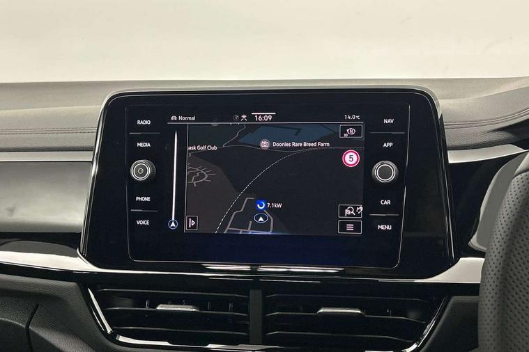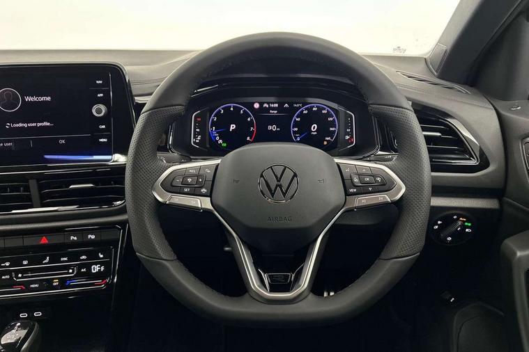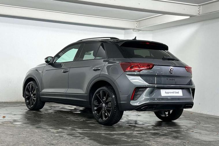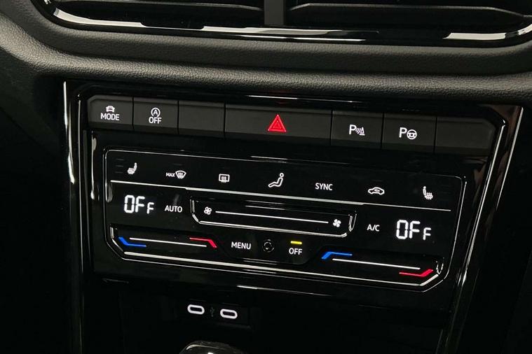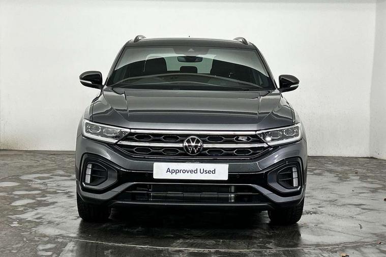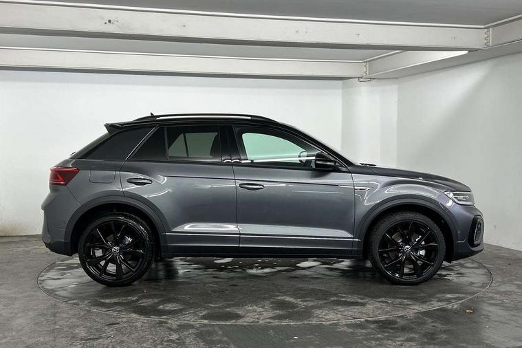 10.25" Digital cockpit pro, Advanced driver attention and drowsiness monitor, Emergency call service, Lane keeping system Lane Assist, Mobile phone interface, Modified key software - reduce switch off time for key status change to Long no motion, Online services, Park assist including front and rear parking sensors, Power assisted speed sensitive steering, Service interval indicator, Tailgate/trunk lid release from outside, Think blue trainer driver tips and journey analysis, Warning sound and light for front seatbelts unfastened, Wireless app connect, Battery regeneration during braking, Rear shock absorption chassis with increased ride height, Start/stop function with battery regeneration, DAB Digital radio, Diversity antenna for FM reception, Front and rear 6 speakers, Music playback - MP3, WMA and AAC files, Premium USB cable in choice of either Apple or Android smartphone compatibility, SD card slot, Simultaneous pairing of 2 compatible mobile devices, Title and cover art display, We Connect and We Connect Plus functionality, Auto dimming interior rear view mirror, Automatic hazard lights activation under emergency braking, Automatic headlight control with LED separate daytime running lights with coming/leaving home function, Dynamic cornering light, Electrically adjustable and heated door mirrors, Extended roof spoiler, Exterior mirrors aspherical on driver side, convex on front passenger side, External USB type C socket and charging sockets, Front windscreen wiper with intermittent wipe and 4 position delay, Heated rear window, Illuminated front grille, IQ LED matrix headlights, LED 3rd brake light, LED rear number plate lights, LED rear tail lights with dynamic turn signal, Light mode for poor weather, rain, fog or snow, Power windows with comfort operation and circuit breaker, R-Line design body coloured bumpers, Rain sensor, Rear exhaust tailpipe, Rear fog light on one side and reversing lights on both sides, Rear side wing doors, Rear wash/wipe with intermittent wipe setting, Remote electrically foldable door mirrors, puddle lights and reverse activated passenger's door mirror, 12V power socket in centre console, 3 rear head restraints, 3 seat bench in 2nd row, 4 load lashing points in luggage compartment, Air care climatronic air conditoning system with active combination filter and 2-zone temperature control, Artvelours cloth upholstery, Black roof lining, Chrome plated radiator grille inserts, air vent surrounds and light switch surrounds, Door and side trim panel with leatherette insert, Drawer under drivers seat, Driver seat height adjust, Driver's seat lumbar support, Front + rear carpet mats, Front centre armrest, Front comfort sports seats, Front cupholders x 2, Front footwell illumination, Front reading light, Front scuff plates with R Line logo, Front seat back storage pockets, Glove compartment door with light, Instrument lighting, white adjustable panel illumination, Interior ambient lighting and surround lighting, Interior light delay, Isofix child seat preparation, Leather gearshift handle, Leather wrapped multifunction steering wheel with paddle shift, Load-through provision with cup holder when folded down ('Unsplit rear seat bench, split folding backrest, with centre armrest), Luggage compartment lighting, Non-folding front passenger seat backrest, Passenger seat height adjuster, Passenger seat lumbar support, Single front passenger seat, Stainless steel pedals, Storage compartment in left and right luggage area, Storage compartment in rear doors, Storage compartments in driver and front passenger doors, Sunvisors with illuminated vanity mirrors, Variable boot floor, height adjustable and removable, Winter pack without heated windscreen washer jets - T-Roc, 3 point height adj front seatbelts + pretensioners, 3 point seatbelts in outer rear with ECE label, ABS, Child locks on rear doors, City emergency braking and pedestrian monitoring, Driver and front passenger airbag with front passenger airbag deactivation, Driver and front passenger safety-optimised head restraints, Drivers seatbelt reminder, Electronic parking brake, Electronic Stability Control (ESC) inc EDL (Electronic Differential Lock) and ASR (Traction Control), Front and rear passengers curtain airbag system including front side airbags, Front disc brakes, Hill start assist, Predictive pedestrian protection, Rear disc brakes, Two tone horn, Tyre pressure loss indicator, Volkswagen roadside assistance, Tool kit, Trims for alloy wheels, Tyre mobility kit including compressor and sealing foam,