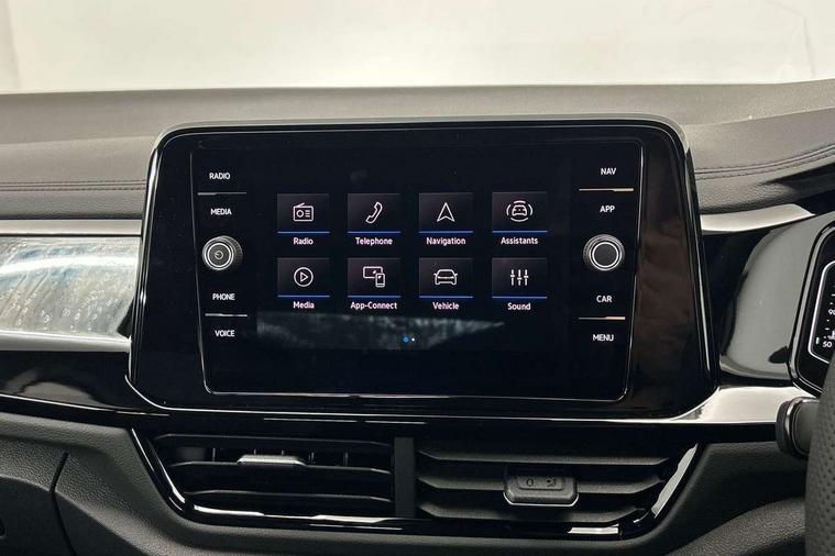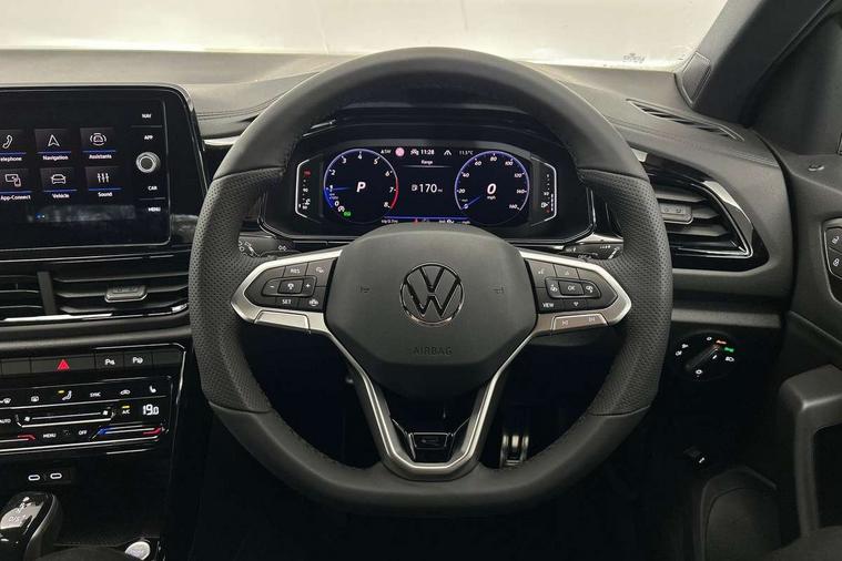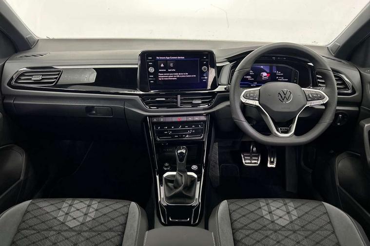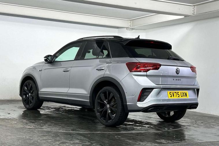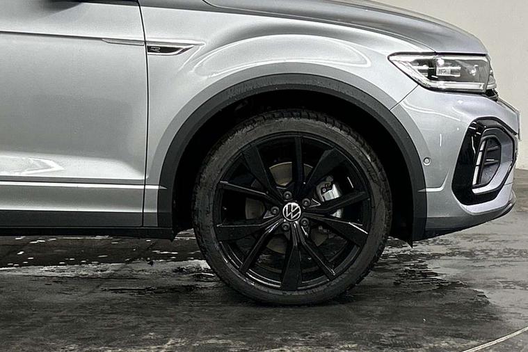 10.25" Digital cockpit pro, Advanced driver attention and drowsiness monitor, Emergency call service, Lane keeping system Lane Assist, Mobile phone interface, Modified key software - reduce switch off time for key status change to Long no motion, Online services, Park assist including front and rear parking sensors, Power assisted speed sensitive steering, Service interval indicator, Tailgate/trunk lid release from outside, Think blue trainer driver tips and journey analysis, Warning sound and light for front seatbelts unfastened, Wireless app connect, Battery regeneration during braking, Rear shock absorption chassis with increased ride height, Start/stop function with battery regeneration, DAB Digital radio, Diversity antenna for FM reception, Front and rear 6 speakers, Music playback - MP3, WMA and AAC files, Premium USB cable in choice of either Apple or Android smartphone compatibility, SD card slot, Simultaneous pairing of 2 compatible mobile devices, Title and cover art display, We Connect and We Connect Plus functionality, Auto dimming interior rear view mirror, Automatic hazard lights activation under emergency braking, Automatic headlight control with LED separate daytime running lights with coming/leaving home function, Dynamic cornering light, Electrically adjustable and heated door mirrors, Extended roof spoiler, Exterior mirrors aspherical on driver side, convex on front passenger side, External USB type C socket and charging sockets, Front windscreen wiper with intermittent wipe and 4 position delay, Heated rear window, Illuminated front grille, IQ LED matrix headlights, LED 3rd brake light, LED rear number plate lights, LED rear tail lights with dynamic turn signal, Light mode for poor weather, rain, fog or snow, Power windows with comfort operation and circuit breaker, R-Line design body coloured bumpers, Rain sensor, Rear exhaust tailpipe, Rear fog light on one side and reversing lights on both sides, Rear side wing doors, Rear wash/wipe with intermittent wipe setting, Remote electrically foldable door mirrors, puddle lights and reverse activated passenger's door mirror, 12V power socket in centre console, 3 rear head restraints, 3 seat bench in 2nd row, 4 load lashing points in luggage compartment, Air care climatronic air conditoning system with active combination filter and 2-zone temperature control, Artvelours cloth upholstery, Black roof lining, Chrome plated radiator grille inserts, air vent surrounds and light switch surrounds, Door and side trim panel with leatherette insert, Drawer under drivers seat, Driver seat height adjust, Driver's seat lumbar support, Front + rear carpet mats, Front centre armrest, Front comfort sports seats, Front cupholders x 2, Front footwell illumination, Front reading light, Front scuff plates with R Line logo, Front seat back storage pockets, Glove compartment door with light, Instrument lighting, white adjustable panel illumination, Interior ambient lighting and surround lighting, Interior light delay, Isofix child seat preparation, Leather gearshift handle, Leather wrapped multifunction steering wheel with paddle shift, Load-through provision with cup holder when folded down ('Unsplit rear seat bench, split folding backrest, with centre armrest), Luggage compartment lighting, Non-folding front passenger seat backrest, Passenger seat height adjuster, Passenger seat lumbar support, Single front passenger seat, Stainless steel pedals, Storage compartment in left and right luggage area, Storage compartment in rear doors, Storage compartments in driver and front passenger doors, Sunvisors with illuminated vanity mirrors, Variable boot floor, height adjustable and removable, Winter pack without heated windscreen washer jets - T-Roc, 3 point height adj front seatbelts + pretensioners, 3 point seatbelts in outer rear with ECE label, ABS, Child locks on rear doors, City emergency braking and pedestrian monitoring, Driver and front passenger airbag with front passenger airbag deactivation, Driver and front passenger safety-optimised head restraints, Drivers seatbelt reminder, Electronic parking brake, Electronic Stability Control (ESC) inc EDL (Electronic Differential Lock) and ASR (Traction Control), Front and rear passengers curtain airbag system including front side airbags, Front disc brakes, Hill start assist, Predictive pedestrian protection, Rear disc brakes, Two tone horn, Tyre pressure loss indicator, Volkswagen roadside assistance, Tool kit, Trims for alloy wheels, Tyre mobility kit including compressor and sealing foam,