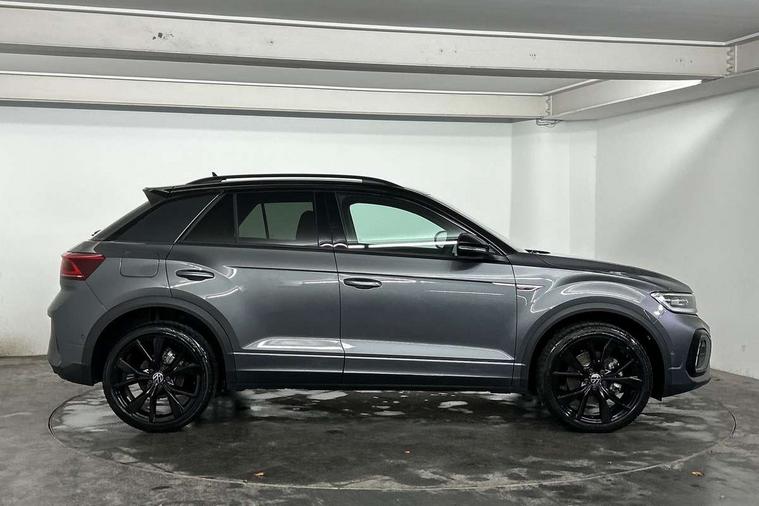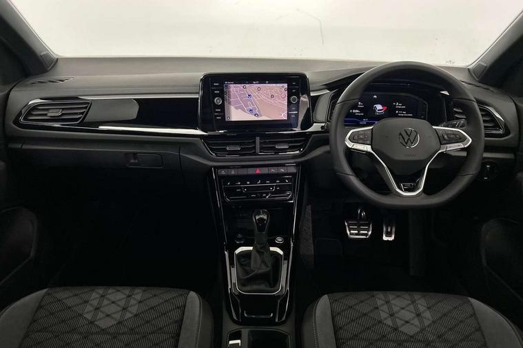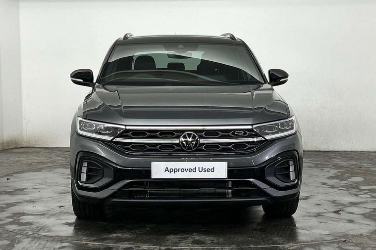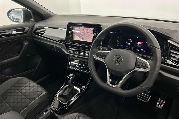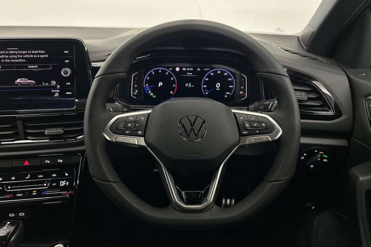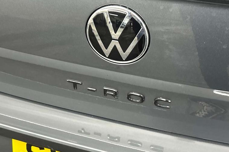 10.25" Digital cockpit pro, Advanced driver attention and drowsiness monitor, Emergency call service, Lane keeping system Lane Assist, Mobile phone interface, Modified key software - reduce switch off time for key status change to Long no motion, Online services, Park assist including front and rear parking sensors, Power assisted speed sensitive steering, Service interval indicator, Tailgate/trunk lid release from outside, Think blue trainer driver tips and journey analysis, Warning sound and light for front seatbelts unfastened, Wireless app connect, Battery regeneration during braking, Rear shock absorption chassis with increased ride height, Start/stop function with battery regeneration, DAB Digital radio, Diversity antenna for FM reception, Front and rear 6 speakers, Music playback - MP3, WMA and AAC files, Premium USB cable in choice of either Apple or Android smartphone compatibility, SD card slot, Simultaneous pairing of 2 compatible mobile devices, Title and cover art display, We Connect and We Connect Plus functionality, Auto dimming interior rear view mirror, Automatic hazard lights activation under emergency braking, Automatic headlight control with LED separate daytime running lights with coming/leaving home function, Dynamic cornering light, Electrically adjustable and heated door mirrors, Extended roof spoiler, Exterior mirrors aspherical on driver side, convex on front passenger side, External USB type C socket and charging sockets, Front windscreen wiper with intermittent wipe and 4 position delay, Heated rear window, Illuminated front grille, IQ LED matrix headlights, LED 3rd brake light, LED rear number plate lights, LED rear tail lights with dynamic turn signal, Light mode for poor weather, rain, fog or snow, Power windows with comfort operation and circuit breaker, R-Line design body coloured bumpers, Rain sensor, Rear exhaust tailpipe, Rear fog light on one side and reversing lights on both sides, Rear side wing doors, Rear wash/wipe with intermittent wipe setting, Remote electrically foldable door mirrors, puddle lights and reverse activated passenger's door mirror, 12V power socket in centre console, 3 rear head restraints, 3 seat bench in 2nd row, 4 load lashing points in luggage compartment, Air care climatronic air conditoning system with active combination filter and 2-zone temperature control, Artvelours cloth upholstery, Black roof lining, Chrome plated radiator grille inserts, air vent surrounds and light switch surrounds, Door and side trim panel with leatherette insert, Drawer under drivers seat, Driver seat height adjust, Driver's seat lumbar support, Front + rear carpet mats, Front centre armrest, Front comfort sports seats, Front cupholders x 2, Front footwell illumination, Front reading light, Front scuff plates with R Line logo, Front seat back storage pockets, Glove compartment door with light, Instrument lighting, white adjustable panel illumination, Interior ambient lighting and surround lighting, Interior light delay, Isofix child seat preparation, Leather gearshift handle, Leather wrapped multifunction steering wheel with paddle shift, Load-through provision with cup holder when folded down ('Unsplit rear seat bench, split folding backrest, with centre armrest), Luggage compartment lighting, Non-folding front passenger seat backrest, Passenger seat height adjuster, Passenger seat lumbar support, Single front passenger seat, Stainless steel pedals, Storage compartment in left and right luggage area, Storage compartment in rear doors, Storage compartments in driver and front passenger doors, Sunvisors with illuminated vanity mirrors, Variable boot floor, height adjustable and removable, Winter pack without heated windscreen washer jets - T-Roc, 3 point height adj front seatbelts + pretensioners, 3 point seatbelts in outer rear with ECE label, ABS, Child locks on rear doors, City emergency braking and pedestrian monitoring, Driver and front passenger airbag with front passenger airbag deactivation, Driver and front passenger safety-optimised head restraints, Drivers seatbelt reminder, Electronic parking brake, Electronic Stability Control (ESC) inc EDL (Electronic Differential Lock) and ASR (Traction Control), Front and rear passengers curtain airbag system including front side airbags, Front disc brakes, Hill start assist, Predictive pedestrian protection, Rear disc brakes, Two tone horn, Tyre pressure loss indicator, Volkswagen roadside assistance, Tool kit, Trims for alloy wheels, Tyre mobility kit including compressor and sealing foam,