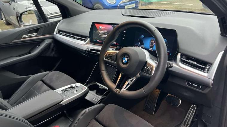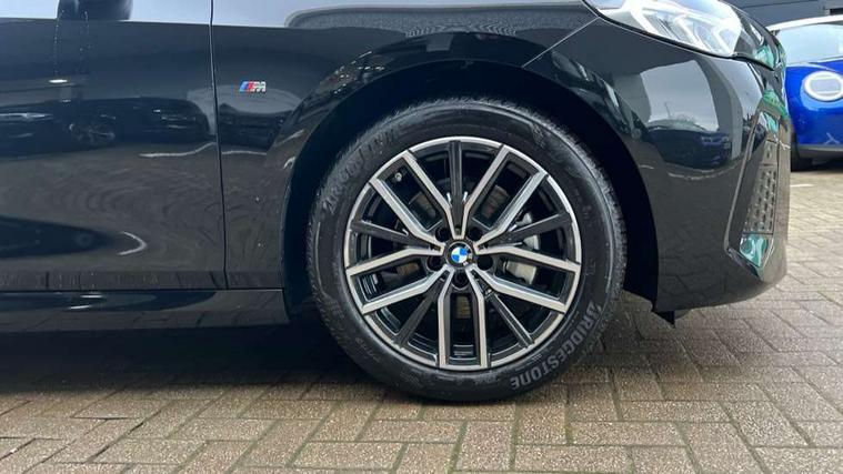 Active Guard, Attentiveness assist, Automatic powered tailgate, Automatic start/stop function, BMW Online services, BMW Operating system 9 with BMW Maps, real-time traffic information, in-car experiences, remote services and smartphone integration, BMW Teleservices, Brake pad wear indicator in front and rear, Condition based service, ConnectedDrive Services, Drive off assistant, Flat air vents on instrument panel in high gloss black, adjustable slats with elements in pearl chrome, iDrive controller, Instrument cluster with speedometer with miles per hour read out, tachometer and fuel gauge, Language version English, On board computer - average speed+fuel consumption, service interval, clock/date, odometer/trip meter, outside temperature display and ice warning, Parking assistant with active park distance control, reversing assistant, lateral parking aid and rear view camera, Servotronic variable electric power steering (EPS), Widescreen display, Wireless charging, Drive performance control with ECO PRO comfort + sport mode, Gear selector switch with toggle operation, M Adaptive suspension, Performance Control, Petrol Particulate Filter, Steptronic transmission with double clutch and gear shift paddles, 2x USB Type C ports in front centre console for charging and data transfer, 2x USB Type C ports in rear centre console for charging, DAB Digital radio, Welcome sound upon opening of the front driver or passenger door, Air inlet middle part on front apron in lines specific design with trim strip in satinised aluminium, Automatic headlights, Black rear bumper trim strip, BMW emblem, engine compartment lid and tailgate, Body colour roof mouldings, Body coloured door mirror caps, Contoured rear roof spoiler in vehicle colour with side aeroblades in black high-gloss, Driver side exterior mirror lighting with BMW logo projection, Dynamic brake lights, Electric adjustable heated door mirrors, Electric windows - front and rear, with open/close fingertip control, anti-trap facility and comfort closing, Folding door handles integrated flush with surface, Front and rear windscreen wipers with heated front washer nozzles, Front bumper cover with independent design in body colour with inserts in black high gloss, Front bumper design elements in satinised aluminium, Front door exit lights, Front door sill finishers aluminium inserts with M inscription, Front entry sills with aluminium inserts + BMW inscription, Front oramental grille with radiator grille bars in satinised aluminium, Heated rear window, Hidden exhaust pipe, High gloss shadow line, Home light, Key with M identification, LED Daytime running lights and parking lights with turn indicators, LED number plate light, LED third brake light in rear spoiler, M identification on sides, Manual headlight range control, Model inscription on right tailgate, Rain sensor, Rear bumper cover with independent design in body colour with inserts in black high gloss, Rear side wing doors, Shark fin antenna, Side sill covers with independent design in Body colour, Trailer stabilisation logic, Trims on front and rear bumper covers colour-coordinated with side window graphic, Visible VIN plate, Welcome lighting, Windscreen washer nozzle for rear view camera, 12V power socket in luggage compartment and front centre console, 12V socket in right side trim panel, 2 bag hooks in luggage compartment, 2 front reading lights, 2 open cup holders in front centre console, 3 seat bench in 2nd row, Ambient lighting front and rear, Automatic two zone climate control air conditioning, Bottle trays in all doors, Child seat ISOFIX attachment for two outer rear seats and front passenger seat with anchorage points, Driver and front passenger sports seats, Embellishers on steering wheel spokes in pearl chrome, Four grab handles integrated in roof lining, Front and rear door pockets, Front and rear footwell lighting, Front and rear side armrest integrated into door trim, Front centre console storage compartment, Front head restraints, Glovebox with light, Heated front seats, Height adjustable 3 rear head restraints, Interior door handle recess light on all doors, Luggage compartment lighting, M Anthracite headlining, M specific floor mats, M sport leather steering wheel, Manual adjustment of seat height, fore/aft position, seat depth, backrest tilt and head restraint height, Map pockets, Mechanical rear seats with fore/aft adjustment, Middle centre console storage compartment, Multi-function controls for steering wheel, One piece parcel shelf opens together with tailgate and removable, Rear cloth hooks, Single front passenger seat, Stainless steel pedals, Steering wheel column manual adjustment, Storage compartment lighting in centre console and storage tray in centre stack, Storage compartment net in left side trim panel, Storage compartment with folding cover under centre console armrest cushion, Sunvisors with illuminated vanity mirrors, 3 point seatbelts on all seats, front pyrotechnic belt tensioners, stopper and belt force limiters, rear coded belt buckles, Airbag - Front driver and passenger, front and rear head, front side, curtain head protection, manual deactivation of front passenger airbag possible, Anti lock braking system (ABS) with brake assist, Automatic hold function, BMW emergency call, Brake drying, Braking readiness, Child proof locking system in rear door, Cornering brake control, Crash Sensor - activates hazard/interior lighting + unlocks doors, DSC - Dynamic Stability Control, Dynamic brake control, Dynamic Traction Control - DTC, Electromechanical parking brake, Energy recovery system, Front disc brakes, Integrated braking system, PC iBrake PostCrash approach control warning with light braking function, Rear disc brakes, Tyre pressure monitoring system, Warning triangle and first aid kit, Anti theft alarm system, Closing system with central locking, Drive away door locking, Engine immobiliser, Locking wheel bolts, Front centre console trim in high gloss black w