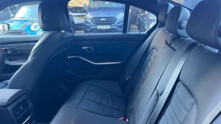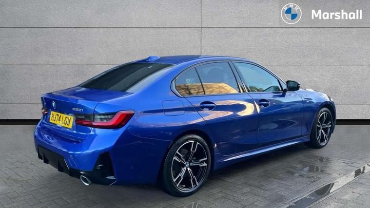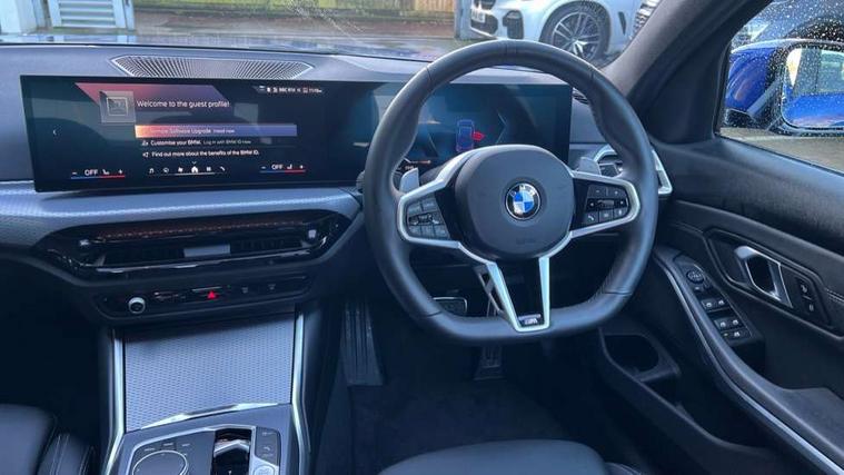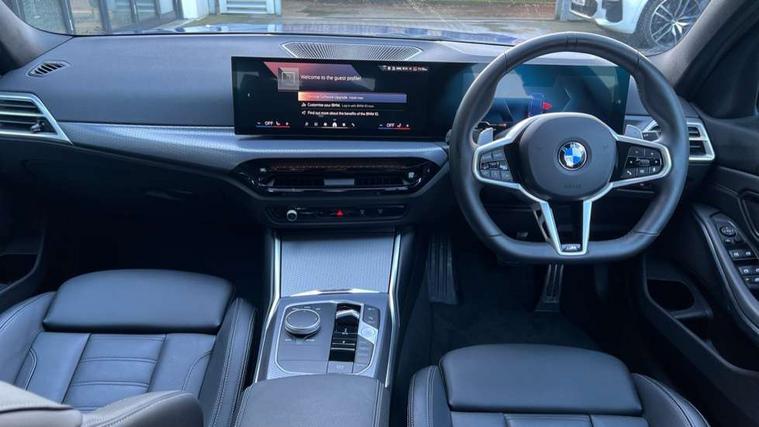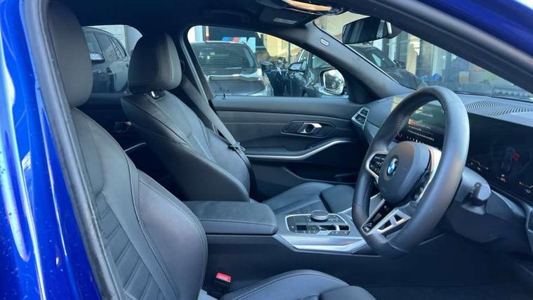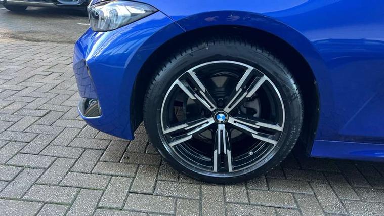 Active guard plus, Attentiveness assist, Automatic Start/stop button, Bluetooth Wi-Fi interface, BMW iDrive, BMW Teleservices, ConnectedDrive Services - last state call, Live cockpit plus with Navigation + 12.3" instrument display + 14.9" display, Intelligent voice assist, 2 USB, 4G LTE connect, Oil sensor for level and grade, Personal e-SIM, Shifting point display, Variable sport steering, Double joint spring strut front axle, Fuel tank breather system, Sport automatic transmission with steering-wheel mounted gearshift paddles and launch control, DAB tuner, 3rd brake light, Auto dimming rear view mirror, Automatic headlight beam throw control with load dependent regulating reaction, dynamic compensation of braking dive and acceleration squat, Bi-LED Low and high beam headlights, BMW emblem, engine compartment lid and tailgate, Body colour roof fin, Door sill strips, Electric windows - front and rear, with open/close fingertip control, anti-trap facility and comfort closing, Fading support, Follow me home headlight function, Front and rear bumper system with replaceable deformation elements, Front apron plastic in body colour, Fuel filler flap - right rear in body colour, Heat protection glazing on front windows and windscreen, Heated washer jets, High gloss chrome kidney frame with high gloss black kidney struts, LED daytime running lights, LED rear lights, LED turn indicator, Licence plate panel integrated into front bumper and tailgate, M high gloss shadow line exterior trim, Matt black B-pillar finsher, Matt black window recess cover, One piece front bumper cover including towing eye cover in body colour, Rain sensor with automatic headlight activation, Rear boot, Rear side wing doors, Reversing lights, Side frame decorative moulding black matt, Trailer stabilisation logic, Visible exhaust tailpipe finisher, Welcome lights in interior and door handle area, 12V power socket in front storage compartment, 2 front cupholder in centre console with clamping elements and matt black inlay, 3 seat bench in 2nd row, 3 spoke M Sport multifunction flat bottom leather steering wheel, 3 zone automatic air conditioning, 40:20:40 split folding rear seat with loading system, Anthracite headlining, Armrest integrated in front and rear door trim + front centre console armrest, BMW ID, Cruise control operation in steering wheel, Driving experience mode switch, Folding rear centre armrest with 2 cupholders, Front and rear headrests, Front and rear velour floor mats, Front footwell lighting, Front reading light, Heated front seats, Height adjustable mechanically and infinitely variable steering column, Illuminated armrest storage compartment, Illuminated glove compartment, Illuminated luggage compartment, Lashing eyelets in luggage compartment, Single front passenger seat, Sunvisors with illuminated vanity mirrors and ticket pocket, Toolkit located in luggage compartment, Connected pack professional - 3 Series Saloon/Touring, Interior and exterior mirror pack - 3 Series Touring/Saloon, M sport exterior styling pack - 3 Series Saloon/Touring, Parking assistant pack - 3 Series, 3x3 point rear seatbelts, BMW emergency call, Child locks on rear doors, Crash sensor activating of airbags, Unlocking doors, hazard warning lights, interior light, safety battery terminal, Drive-off assistant, Driver and front passenger with seat occupancy detection for driver's and passenger side, Driver and passenger side airbags, body protection at side and airbags deploy from seat backrests, Dry braking, Dynamic brake control, Dynamic stability control + (DSC+) - Anti-lock Braking System (ABS) with brake assist and cornering brake control + Automatic Stability Control (ASC), Dynamic Traction Control - DTC, Electric parking brake including automatic hold function and automatic release of the parking brake when driving off, Electronic differential lock control (EDLC), Front airbag deactivation, Front airbags for driver and front passenger, Head airbags in 1st and 2nd row, head protection at side, curtain airbags open from headliner above 1st and 2nd row, Plastic fuel tank, Side impact protection, Tyre pressure sensors, Ventilated front and rear disc brakes, Warning triangle and first aid kit, Alarm system, Centre lock switch, Closing system with central locking, Electronic vehicle immobiliser, Locking wheel bolts,