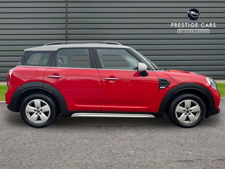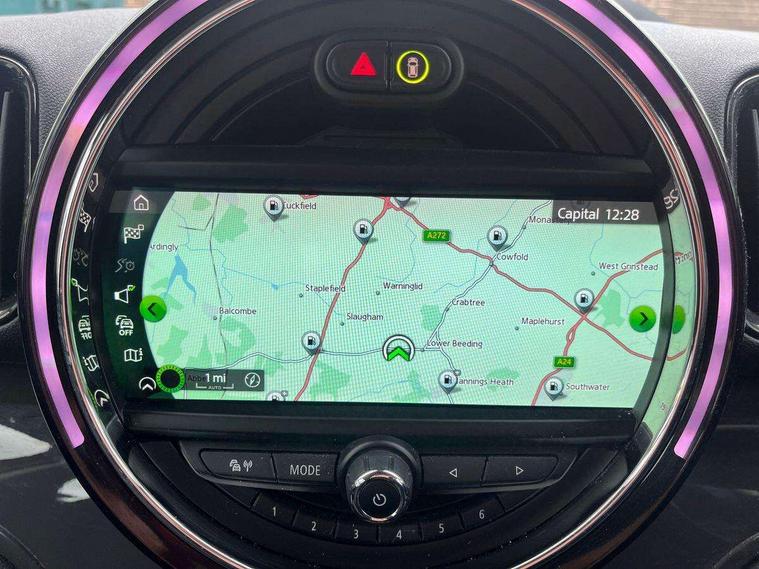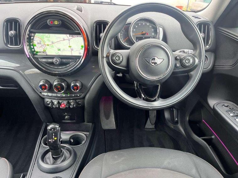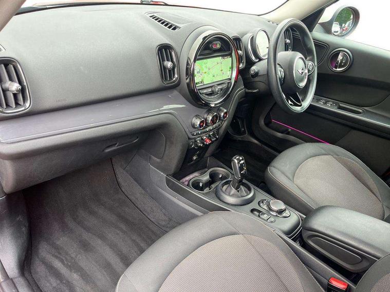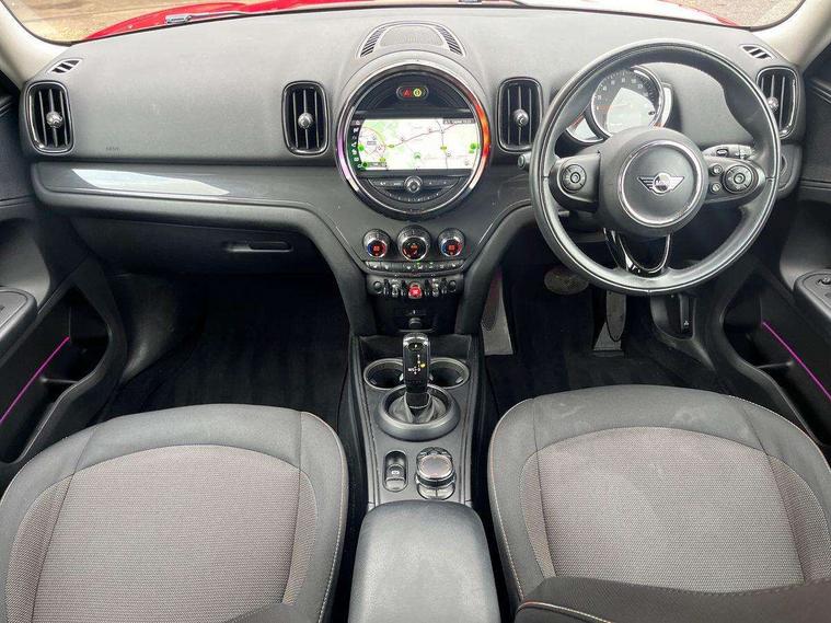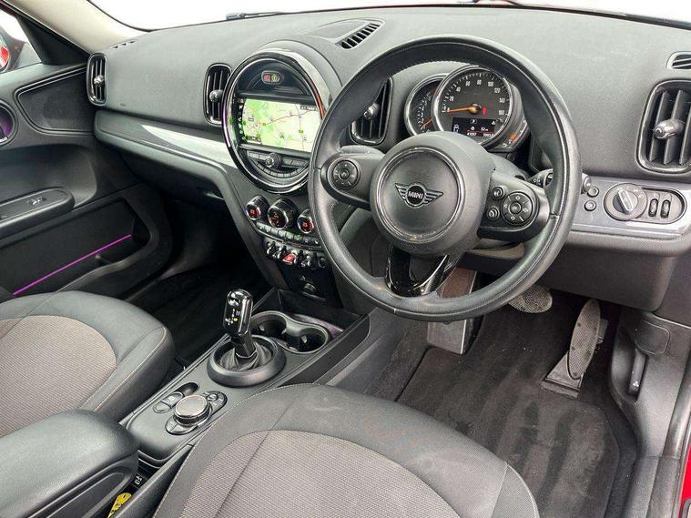 Active Guard incl speed limiting and lane departure functions with auto steering, and front collision warning with brake intervention, Automatic start/stop function with brake energy recuperation, Electro-mechanical speed dependant steering assistance, Instrument cluster, Mini E-call, MINI TeleServices, On board computer, Rear parking distance control, Double Vanos system, Fully variable valve control, High precision injection, Steptronic transmission with double clutch, FM tuner and DAB digital radio, Body colour fuel filler cap, Day time driving lights, Door sill strips, Dynamic brake lights, Electric windows, Heated rear window, Heated windscreen washer jets, Left exhaust tailpipe with chrome finisher, Model logo, Model logo on Tailgate, Radiator grille, Rain sensor with auto headlights, Rear fog lights, Rear window wiper, Side scuttle panel with integrated indicator, Split rear doors, Sun/heat protection glass, White indicator lenses, 12V Accessory socket in centre console, 360L luggage compartment capacity, 4 lashing eyes in luggage compartment, 40:20:40 split folding rear seats, Chrome interior highlights, Colour line - Carbon black, Cupholders, English handbook, Front headrests, Glove compartment, Headliner with grab handles and clothes hooks, Height and length steering column adjustment, Isofix rear child seat preparation, Leather gearshift lever and handbrake gaiters, LED reading lights, vanity mirror lights, front foot well light and spotlight on front seats, Manual air conditioning, Mechanical seat adjustment, driver seat height adjust, forward/back and front seats backrest, Multifunction steering wheel, Passenger seat height adjuster, Rear headrests, Storage compartments in doors, Sunvisors with vanity mirrors, Excitement pack - Countryman, Navigation pack - Countryman, 2 tone horn, 3 point seatbelts on all seats, 6 Airbags - front, side, head and seat belt tensioners, Anti-lock braking system (ABS), DSC - Dynamic Stability Control, Electronic handbrake, Front and rear disc brakes, Hill start assist, Tyre pressure monitoring system, Alarm system with tilt sensor, monitoring doors, bonnet interior and tailgate, Auto drive away locking, Deadlocking function, Electronic vehicle immobiliser, Locking wheel bolts, Start/stop toggle with keyless go, Tool kit,