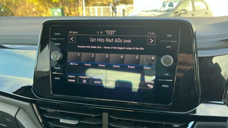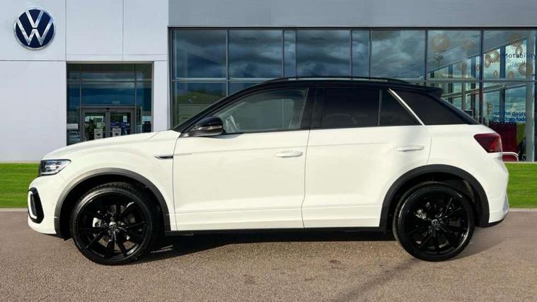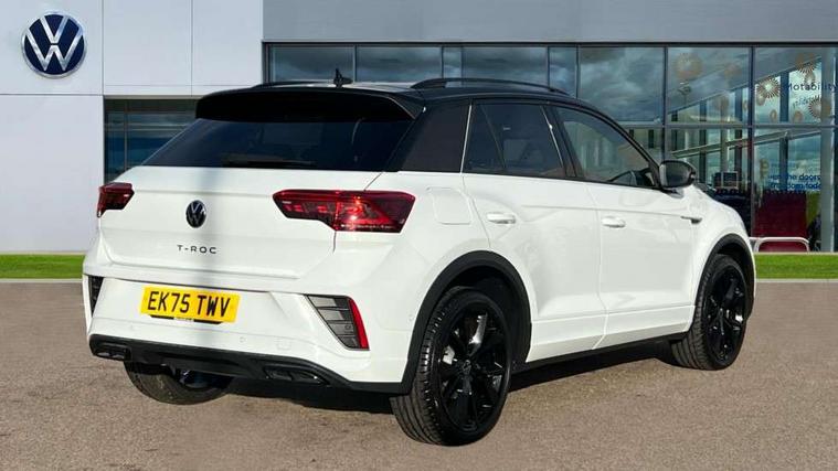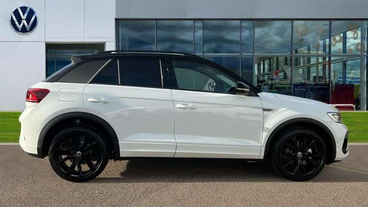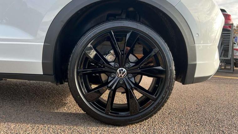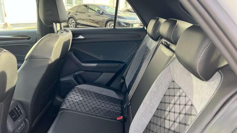 10.25" Digital cockpit pro, Advanced driver attention and drowsiness monitor, Emergency call service, Lane keeping system Lane Assist, Mobile phone interface, Modified key software - reduce switch off time for key status change to Long no motion, Online services, Park assist including front and rear parking sensors, Power assisted speed sensitive steering, Service interval indicator, Tailgate/trunk lid release from outside, Think blue trainer driver tips and journey analysis, Warning sound and light for front seatbelts unfastened, Wireless app connect, Battery regeneration during braking, Rear shock absorption chassis with increased ride height, Start/stop function with battery regeneration, DAB Digital radio, Diversity antenna for FM reception, Front and rear 6 speakers, Music playback - MP3, WMA and AAC files, Premium USB cable in choice of either Apple or Android smartphone compatibility, SD card slot, Simultaneous pairing of 2 compatible mobile devices, Title and cover art display, We Connect and We Connect Plus functionality, Auto dimming interior rear view mirror, Automatic hazard lights activation under emergency braking, Automatic headlight control with LED separate daytime running lights with coming/leaving home function, Dynamic cornering light, Electrically adjustable and heated door mirrors, Extended roof spoiler, Exterior mirrors aspherical on driver side, convex on front passenger side, External USB type C socket and charging sockets, Front windscreen wiper with intermittent wipe and 4 position delay, Heated rear window, Illuminated front grille, IQ LED matrix headlights, LED 3rd brake light, LED rear number plate lights, LED rear tail lights with dynamic turn signal, Light mode for poor weather, rain, fog or snow, Power windows with comfort operation and circuit breaker, R-Line design body coloured bumpers, Rain sensor, Rear exhaust tailpipe, Rear fog light on one side and reversing lights on both sides, Rear side wing doors, Rear wash/wipe with intermittent wipe setting, Remote electrically foldable door mirrors, puddle lights and reverse activated passenger's door mirror, 12V power socket in centre console, 3 rear head restraints, 3 seat bench in 2nd row, 4 load lashing points in luggage compartment, Air care climatronic air conditoning system with active combination filter and 2-zone temperature control, Artvelours cloth upholstery, Black roof lining, Chrome plated radiator grille inserts, air vent surrounds and light switch surrounds, Door and side trim panel with leatherette insert, Drawer under drivers seat, Driver seat height adjust, Driver's seat lumbar support, Front + rear carpet mats, Front centre armrest, Front comfort sports seats, Front cupholders x 2, Front footwell illumination, Front reading light, Front scuff plates with R Line logo, Front seat back storage pockets, Glove compartment door with light, Instrument lighting, white adjustable panel illumination, Interior ambient lighting and surround lighting, Interior light delay, Isofix child seat preparation, Leather gearshift handle, Leather wrapped multifunction steering wheel with paddle shift, Load-through provision with cup holder when folded down ('Unsplit rear seat bench, split folding backrest, with centre armrest), Luggage compartment lighting, Non-folding front passenger seat backrest, Passenger seat height adjuster, Passenger seat lumbar support, Single front passenger seat, Stainless steel pedals, Storage compartment in left and right luggage area, Storage compartment in rear doors, Storage compartments in driver and front passenger doors, Sunvisors with illuminated vanity mirrors, Variable boot floor, height adjustable and removable, Winter pack without heated windscreen washer jets - T-Roc, 3 point height adj front seatbelts + pretensioners, 3 point seatbelts in outer rear with ECE label, ABS, Child locks on rear doors, City emergency braking and pedestrian monitoring, Driver and front passenger airbag with front passenger airbag deactivation, Driver and front passenger safety-optimised head restraints, Drivers seatbelt reminder, Electronic parking brake, Electronic Stability Control (ESC) inc EDL (Electronic Differential Lock) and ASR (Traction Control), Front and rear passengers curtain airbag system including front side airbags, Front disc brakes, Hill start assist, Predictive pedestrian protection, Rear disc brakes, Two tone horn, Tyre pressure loss indicator, Volkswagen roadside assistance, Tool kit, Trims for alloy wheels, Tyre mobility kit including compressor and sealing foam,