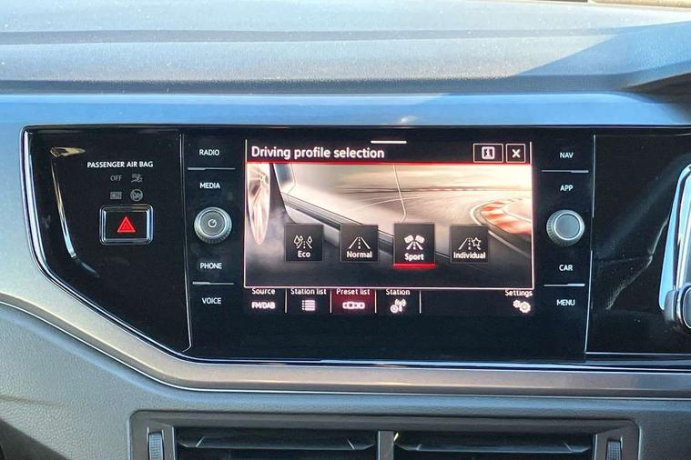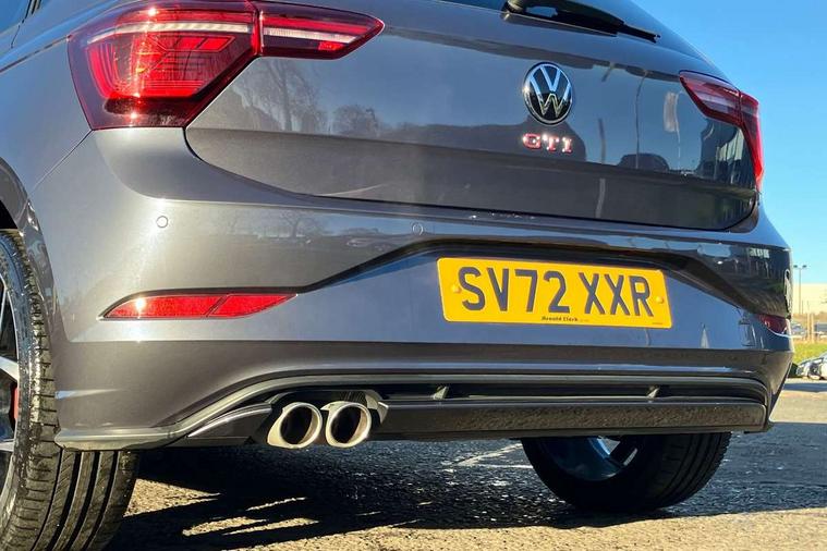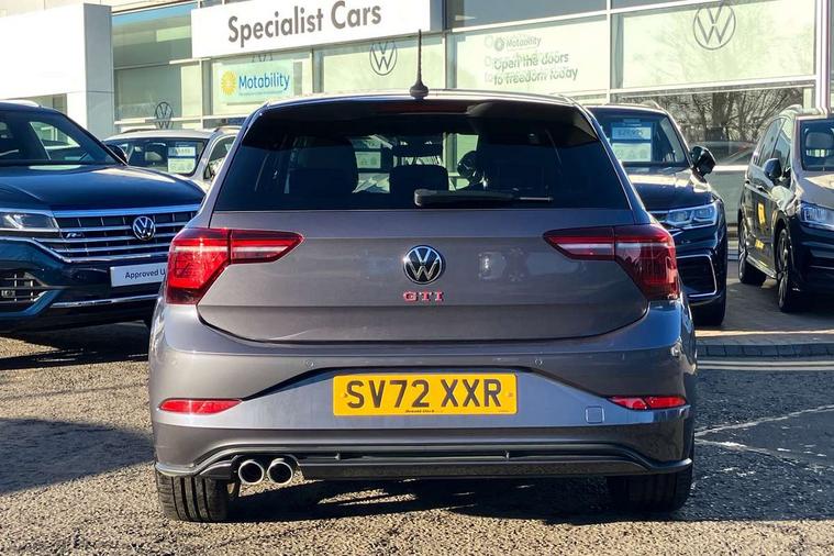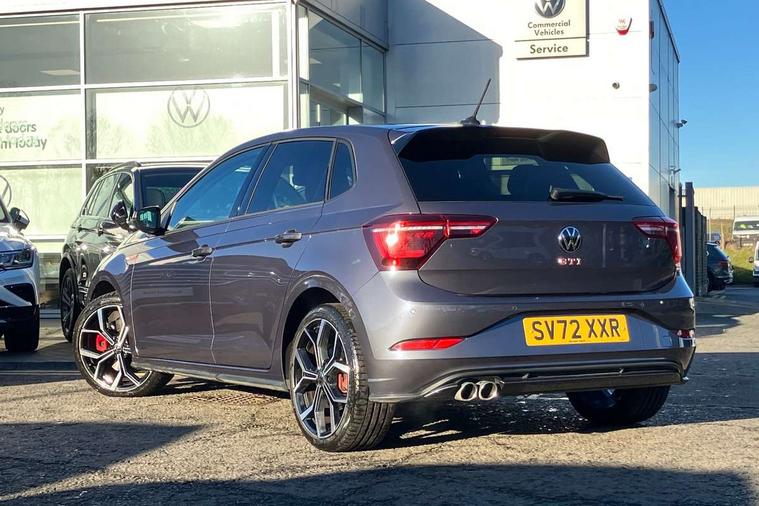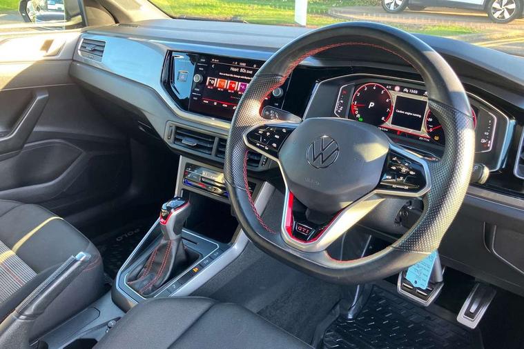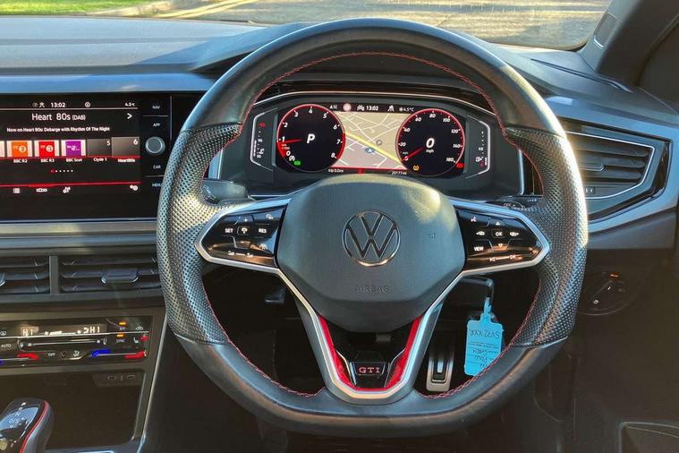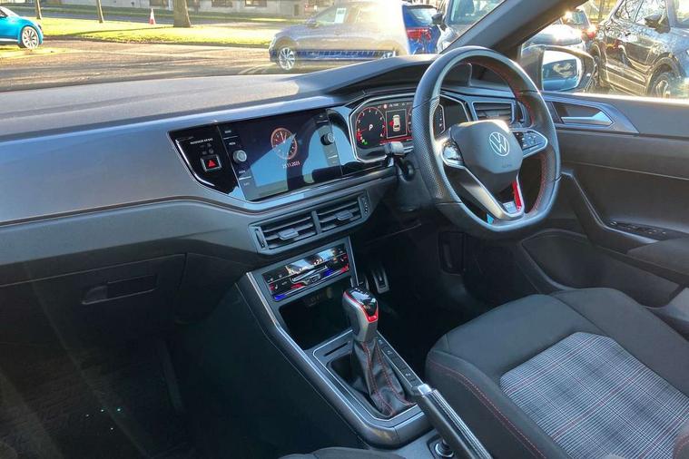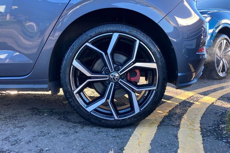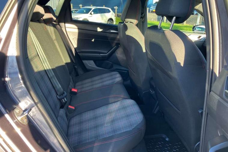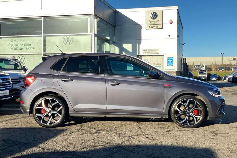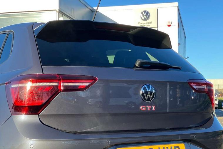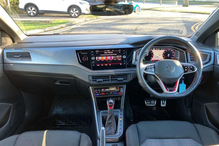 Adaptive cruise control with follow-to-stop and speed limiter, Bluetooth mobile phone interface, Digital Cockpit Pro with 10.25" Display, Driver alert system, Dynamic road sign display, Eco mode, Emergency call service, Power assisted speed sensitive steering, Preparation for We connect and We connect plus, Speedo and rev counter, electronic odometer, trip, service interval display and fuel gauge, Travel Assist - Lane keeping system and traffic jam assist, Travel assist including emergency assist, Trip computer, Warning signal and warning light for front and rear seatbelts not fastened, Washer fluid level indicator, Wireless app connect, Adaptive chassis control, Front wheel drive, Heavy duty rear axle, Rear shock absorpion sports version, Sports select suspension lowered by 15mm, Start-stop system with battery regeneration (recuperation - energy recovery during braking), DAB Digital radio, Diversity antenna for FM reception, Front and rear 6 speakers, Body colour bumpers, Body colour door handles, Electric front windows, Front scuff plates in aluminium with GTI logo, Heat insulating darkened glass in side and rear windows, Heat insulating glass windscreen, Power folding adjustable/heated exterior mirrors and front passenger exterior mirror lowering function, Rear electric windows, Rear fog light, Rear side wing doors, Rear windscreen washer and wiper with interval delay, Sport bumpers with air intakes with honeycomb structure, Third brake light, Twin chrome exhaust tailpipes, 12V power socket in centre console, 2 USB-C ports in the front, 2 USB-C charging sockets on the center console in the rear, 3 rear head restraints, 60/40 split folding rear seat and rear seat bench not split, Air care climatronic air conditoning system with active combination filter and 2-zone temperature control, Black roof lining, Ceramique headliner, Chrome plated radiator grille inserts, air vent surrounds and light switch surrounds, Door and side trim panel, Driver and front passenger seat height adjustment, Driver/passenger sunvisors with illuminated vanity mirrors, Front + rear carpet mats, Front centre armrest, Front footwell illumination, Front seat backrest storage pockets, GTI sports gearshift knob in aluminium leather, Handbrake lever handle in leather, Isofix child seat preparation easy-fit (for two outer rear seats, and front passenger seat) compatible with I-size, LED interior light with switch off delay and dimmer, 2 reading lights front and rear, Luggage compartment cover, Luggage compartment floor, Luggage compartment lighting, Single front passenger seat, Stainless steel pedals, Standard pedal cluster, Three spoke leather wrapped multifunction sports steering wheel with shifting paddles, IQ LED matrix headlights pack - Polo, Light and sight pack - Polo GTI, Sports suspension pack - Polo, 3 point height adj front seatbelts + pretensioners, 3x3 point rear seatbelts, ABS, Driver and front passenger airbag with front passenger airbag deactivation, Drivers and front passengers safety optimised head restraints, ESC (Electronic stability control) + EDL (Electronic Differntial lock) and ASR (Traction control), Extended and predictive pedestrian/ cyclist protection, Front and rear disc brakes with red brake calipers, Front curtain and side airbags with center airbag, Hill hold control, Manual child lock in rear doors, Two tone horn, Tyre pressure loss indicator, Alarm with interior protection, Anti-theft alarm system with interior monitoring, backup horn, and towing protection, Anti-theft wheel bolts, Electronic engine immobiliser, Chrome applications on rotary light, mirror adjustment, window regulator switches, outlet with frame in black, Low rolling resistance tyres,