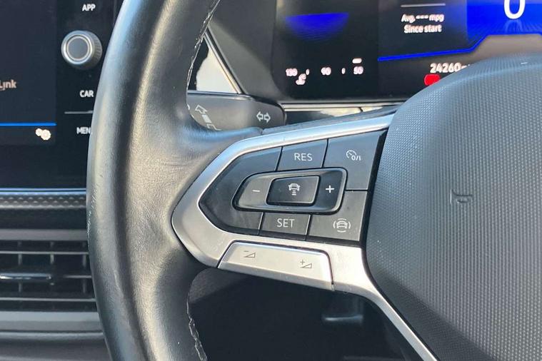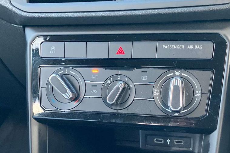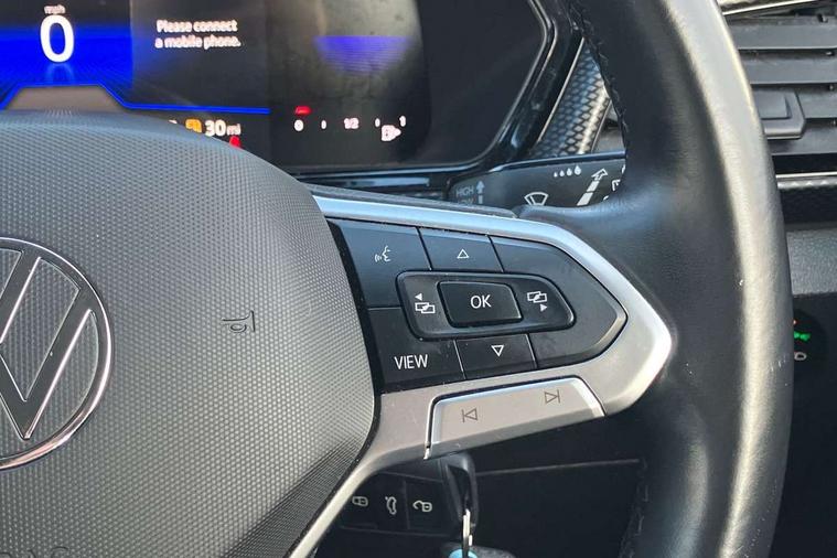 'Lights On' Reminder warning buzzer, Adaptive cruise control including front assist, forward collision warning, autonomous emergency braking, speed limiter, Blind spot monitoring, Bluetooth telephone and audio connection for compatible devices, Car information display, Digital cockpit, Driver alert system, eCall emergency call system, Lane assist, Low washer fluid warning light, Multifunction computer with visual gear change recommendation for fuel consumption, Operating permit alteration, Power assisted speed sensitive steering, Speedo, rev counter, electronic odometer, trip, service interval display, exterior temperature and fuel gauge, Stop/start system, Warning sound and light for doors and tailgate open, Warning sound and light for front seatbelts unfastened, We Connect Go Dongle, Wireless Car net app connect with Apple CarPlay, combined functionality of Apple CarPlay/Android Auto and MirrorLink, Battery regeneration during braking, Misfuel prevention device, 2x USB connection with USB charging sockets and in rear centre console, DAB Digital radio receiver, Diversity antenna for FM reception, Multi device interface (MDI) with USB connection, Music playback - MP3, WMA and AAC files, Premium USB cable for Apple or Android smartphone compatibility, Simultaneous pairing of 2 compatible mobile devices, Title and cover art display, Automatic hazard lights activation under emergency braking, Black roof rails, Body colour door handles, Body colour door mirrors with integrated indicators, Body coloured bumpers, Dusk sensor + automatic driving lights, Electrically foldable, adjustable and heated door mirrors with reverse activated kerb view adjustment on passenger's side, Front and rear electric windows, Front fog lights with static cornering function, Galvanised body, Heated rear window, LED third brake light, Lower door sills and door pillars in black, Radiator grille with high gloss surface and chrome strip, Rear fog light on one side, reversing light on both sides, Rear lights incorporating LED technology, Rear side wing doors, Rear window aerial, Rear windscreen washer and wiper with interval delay, Reflectors in all doors, Tailgate with integrated roof spoiler, Windscreen wipers/ intermittent wipe + 4 position delay, 12V Accessory socket in centre console, 3 rear head restraints and 3 rear three point seat belts with ECE label, 3 seat bench in 2nd row, 60/40 split folding rear seat backrest, Drawer under drivers seat, Driver and front passenger sunvisor with vanity mirror, Driver's sunvisor with ticket holder, Dust and pollen filter, Front and rear reading lights X 2, Front centre armrest with storage compartment, Front seat back storage pockets, Front seats with adjustable lumbar support, Glovebox, Heating and fresh air system with 4 stage blower, Height/reach adjust steering wheel, Instrument lighting white adjustable panel illumination, Interior light with delay, Isofix child seat preparation for 2 rear child seats, Luggage compartment cover, Luggage compartment lighting, Manual air conditioning, Manual front seats with height adjustment, Moveable and foldable Rear bench seat, Single front passenger seat, Storage compartment in drivers and front passengers door, Three spoke multi-function leather trimmed steering wheel and gearknob, Triangle ties/pearl cloth upholstery, Variable boot floor, Anti-lock Braking System (ABS) with Hydraulic Brake Assist (HBA), Automatic post collision braking system, Driver and front passenger safety-optimised head restraints, Drivers and Front Passengers airbags with front passengers airbag deactivation switch, ESC with EDL, ASR, EDTC and trailer stabilisation function, Front and rear curtain airbags, Front seat side impact airbags, Height-adjustable front three-point seat belts with tensioners, Hill start assist, Pre crash preventive occupant protection, Rear door child safety locks, Rigid safety cell with front and rear crumple zones, Single torn horn, Tyre pressure loss indicator, Volkswagen roadside assistance, Alarm with interior protection and deactivation via infotainment system, Child security locks in rear doors, Electronic engine immobiliser, Remote tailgate unlocking using key fob, Pineapple decorative inserts in dash and doors, 17" Clayton alloy wheels + anti theft wheel bolts, Breakdown kit,