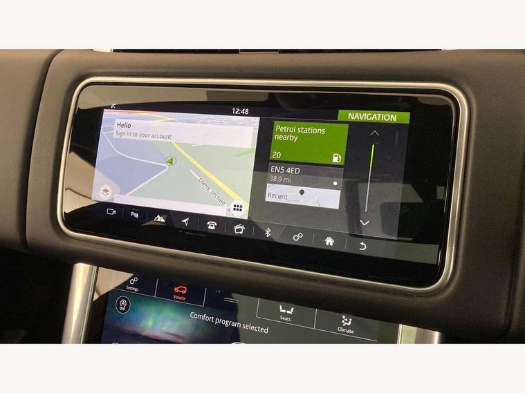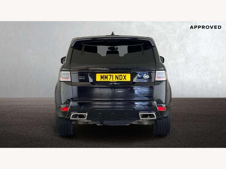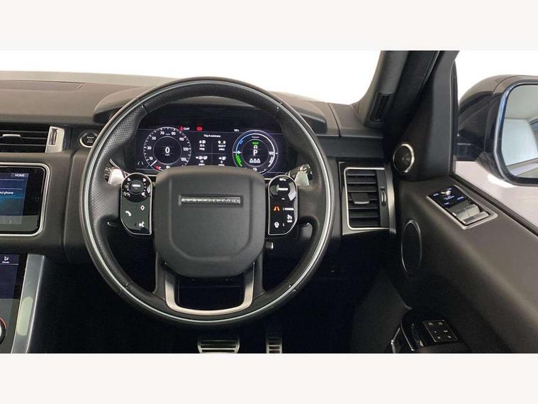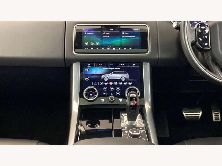 All Terrain Info Centre, Android Auto, Apple car play, Bluetooth connectivity, Electric power assisted steering (EPAS), Incontrol apps in vehicle touchscreen, Interactive Driver display instrument cluster, Mist sensor, Navigation pro system with 10" touch screen, app interface and media storage, Pro services and wifi hotspot, Push button start, Remote premium - Upgraded Incontrol remote app including remote climate control (engine dependent), remote lock + Unlock and remote beep + flash, TFT Virtual Instrument Panel, Touch pro duo system, Trip computer, 7 kW onboard charger, Adaptive dynamics, Electronic active differential with brake torque vectoring, Electronic air suspension, Gradient release control (GRC), Public charging cable, Terrain Response 2 with dynamic program, Twin speed transfer box, Bluetooth audio streaming, DAB Radio (Digital Audio Broadcasting), Incontrol protect - SOS emergency call with automatic collision detection, optimised assistance call and Incontrol remote app essential, USB/aux input socket, Acoustic front and toughened rear side glass, Acoustic laminated front windows, Adaptive brake lights, Auto dimming interior rear view mirror, Automatic headlights, Body coloured side sills and bumpers corners, Centre high mounted stop light, Electric windows with one touch open/close and anti trap, Electrical towing preparation, Engine cover, Follow me home lighting, Front and rear recovery eyes, Front fog lights, Headlight power wash, Heated rear window, Heated windscreen includes heated washer jets, Illuminated metal tread plates with brand name script, LED rear lamps, Privacy glass (Tinted glass rear of B pillar), Rain sensing windscreen wipers, Rear fog lights, Rear side wing doors, Rear wash/wipe, Remote window closing, Side repeater indicators in mirror, Sport Badge in black, Standard bonnet, Trailer stability assist, Twin bright tailpipes, 2 way active front head restraints, 2 way rear head restraints, 3 seat bench in 2nd row, Auto air recirculation, Bright metal foot pedals, Centre console with armrest, Climate control memory, Customer configurable single point entry, Driver's footrest, Extended leather upgrade includes door top rolls and leather instrument panel mid section, Front and rear cupholders, Front door storage space, Front map lights, Front seat back map pockets, Front stowage pocket, Front/rear passenger grab handles, Heated steering wheel, Isofix child seat preparation, Leather steering wheel with Atlas inserts, Loadspace light, Loadspace mounting provisions, Lockable glovebox, Multifunction steering wheel, Perforated Windsor leather upholstery, Pollen filter, Power socket, Reach/rake electric adjustable steering column + entry/exit tilt away, Rear centre armrest, Rear ISOFIX, Roller blind loadspace cover, Satin chrome gearshift paddles, Single front passenger seat, Sports pedals, Three 12V accessory power outlets, Black Exterior pack - Range Rover Sport, Smartphone pack - Range Rover Sport, 3 point seatbelts on all seats, Anti-lock braking system (ABS), Brake pre-fill technology, Cornering brake control (CBC), Curtain airbags, Customer configurable autolock, DSC - Dynamic Stability Control, Dual stage driver/passenger airbags, EBD - Electronic brakeforce distribution, Electric parking brake, Electronic traction control, Emergency braking includes city, urban AEB and pedestrian, Front seatbelt pretensioners, Gradient acceleration control, Height adjustable front seatbelts, Hill descent control, Hill launch assist, Low traction launch, Passenger seat occupant detector with front airbags, Power operated child locks, Roll stability control, Seatbelt warning, TPMS (Tyre pressure monitoring system), Immobiliser, Intrusion sensor, Keyless entry, Locking wheel nuts, Perimetric and volumetric anti theft alarm, Remote locking, Grand black veneer, 21" 9 spoke gloss black alloy wheels - style 9001, Tyre repair system,