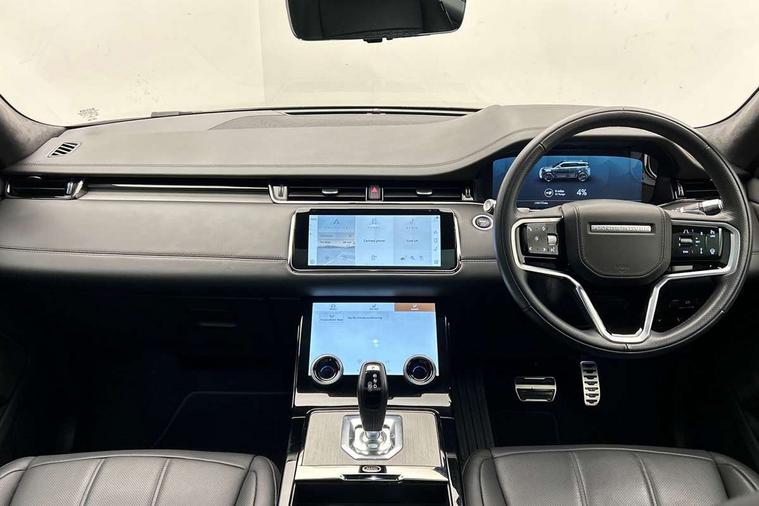 10" deployable touchscreen with lower touchscreen, Adaptive cruise control, Android Auto, Apple car play, Blind spot assist, Bluetooth connectivity, Brake pad wear indicator warning light, Clear exit monitor, Driver condition monitor, eCall emergency system, Electronic power assisted steering (EPAS), Front and rear parking aid, InControl remote, Land Rover InControl apps, Lane keep assist, Pivi pro connected includes upgraded infotainment, connected navigation pro, Nuance speech licence, Powered gesture tailgate/boot lid, Push button starter, Rear collision monitor, Rear traffic monitor, Traffic sign recognition with adaptive speed limiter, Voice control system, 7 kW onboard charger, All terrain progress control, Configurable dynamics, Electric rear axle drive, Home charging cable, Large fuel tank, Passive suspension, Public charging cable, Terrain Response 2 Auto, Digital Audio Broadcast radio-DAB, Meridian surround sound system with 650W subwoofer and 14 speakers, Steering wheel mounted controls, Auto headlights, Autobiography badge, Automatic headlight levelling, ClearSight interior rear view mirror, Electric windows with one touch open/close and anti trap, Evoque and R-Dynamic badge, Flush deployable exterior door handles, Heated rear window with timer, Heated washer jets, Heated windscreen, Matrix LED headlights with signature DRL, intelligent high beam assist, signature Hi-Line tail lights and animated directional indicators, Power fold, auto-dimming, heated door mirrors with approach lights and auto dimming driver side, R-Dynamic branding illuminated metal tread plates in loadspace and row 1 with brand name script and non illuminated metal in row 2, Rain sensing windscreen wipers, Rear fog lights, Rear side wing doors, Rear wiper, Tailgate spoiler, Third brake light, 14 way electric heated/cooled front and rear seats with driver memory, 2 way man headrest, electric 4 way lumbar support, bolsters + headrest adj, 40:20:40 split folding rear seats with centre headrest and armrest, Ambient interior lighting, Bright metal pedals, Electrically adjustable steering column with memory function and easy entry/exit, Full extended leather upgrade, Heated steering wheel, Isofix system on outer rear seats, Overhead lighting console, Overhead stowage for sunglasses, Passive front head restraints, Perforated full leather steering wheel, Premium cabin lighting, Premium carpet mats, Rear air vents, Rear centre headrest, Rear head restraints, Satin chrome gearshift paddles, Single passenger seat, Sunvisors with illuminated vanity mirrors, Twin sliding front centre armrest, 3 rear 3 point seatbelts, Anti-lock braking system (ABS), Customer configurable autolock, DSC - Dynamic Stability Control, Electronic brake force distribution, Electronic parking brake, Electronic traction control, Emergency braking, Front and rear seatbelt reminder, Hill descent control, Hill launch assist, Low traction launch, Power operated child locks, Red brake calipers, Roll stability control, Six airbags - Driver and passenger airbags/driver knee airbag/front side airbag and curtain airbags, Torque vectoring brake, Tyre pressure monitoring system, Alarm, Immobiliser, Intrusion sensor, Keyless entry, Locking wheel nuts,