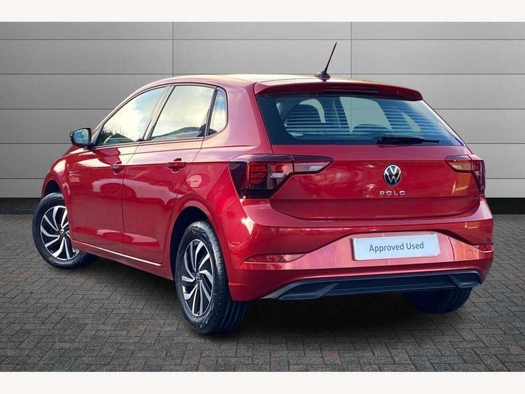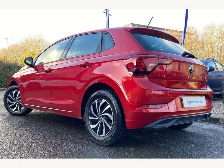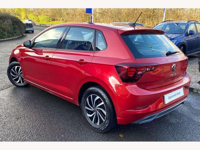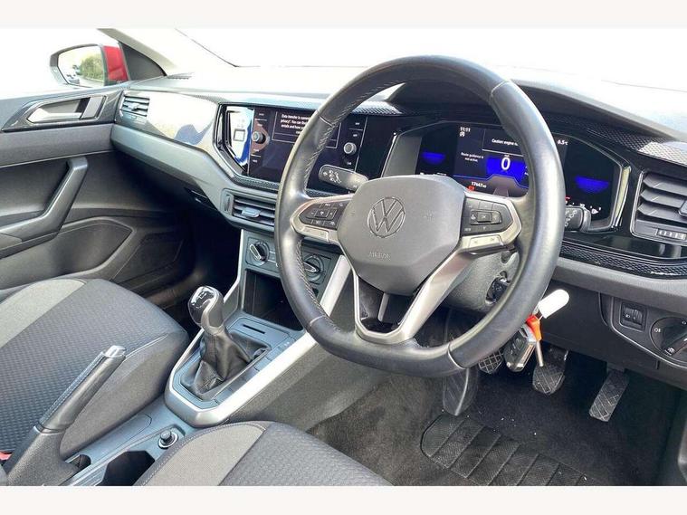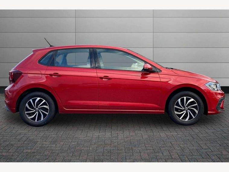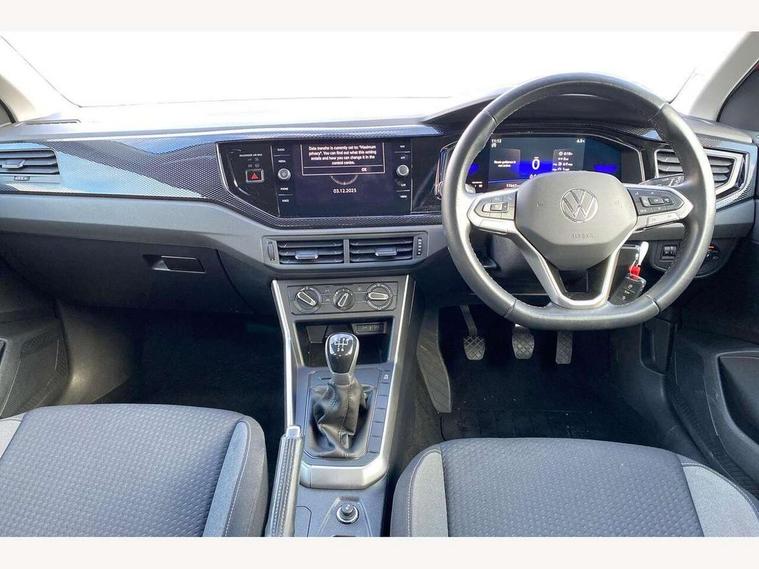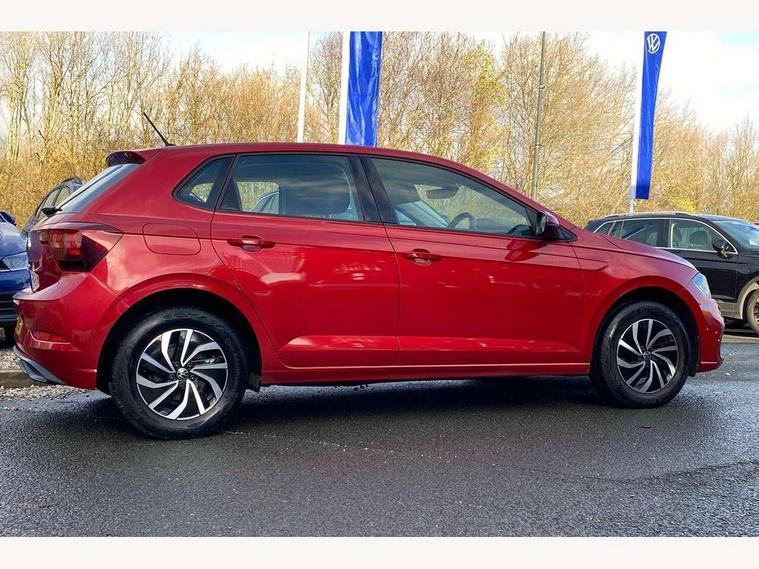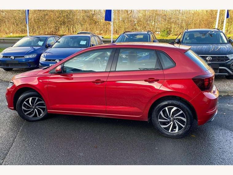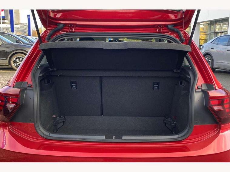 Adaptive cruise control without follow-to-stop and speed limiter, Bluetooth mobile phone interface, Driver alert system, Emergency call service, Front assist system, Power assisted speed sensitive steering, Preparation for We connect and We connect plus, Speedo and rev counter, electronic odometer, trip, service interval display and fuel gauge, Standard rear axle, Travel Assist - Lane keeping system and traffic jam assist, Travel assist including emergency assist, Trip computer, Warning signal and warning light for front and rear seatbelts not fastened, Washer fluid level indicator, Wireless app connect, Front wheel drive, Rear shock absorpion, Start-stop system with battery regeneration (recuperation - energy recovery during braking), DAB Digital radio, Diversity antenna for FM reception, Automatic dimming interior rear view mirror, Body colour bumpers, Body colour door handles, Body colour door mirrors, Electric front windows, Heat insulating darkened glass in side and rear windows, Heat insulating glass windscreen, Power folding adjustable/heated exterior mirrors and front passenger exterior mirror lowering function, Rain sensor, Rear electric windows, Rear fog light, Rear windscreen washer and wiper with interval delay, Third brake light, 12V power socket in centre console, 2 front and 2 rear reading lights, 2 USB-C ports in the front, 2 USB-C charging sockets on the center console in the rear, 3 rear head restraints, 60/40 split folding rear seat and rear seat bench not split, Ceramique headliner, Chrome plated radiator grille inserts, air vent surrounds and light switch surrounds, Door and side trim panel, Driver and front passenger seat height adjustment, Driver/passenger sunvisors with illuminated vanity mirrors, Front centre armrest, Front seat backrest storage pockets, Front standard seats, Handbrake lever handle in leather, Hartley/Thomas cloth upholstery, Isofix child seat preparation easy-fit (for two outer rear seats, and front passenger seat) compatible with I-size, Leather trimmed gear knob, Luggage compartment cover, Luggage compartment floor, Luggage compartment lighting, Multifunction steering wheel, Standard pedal cluster, Light and vision pack - Polo, 3 point height adj front seatbelts + pretensioners, 3x3 point rear seatbelts, ABS, Driver and front passenger airbag with front passenger airbag deactivation, Drivers and front passengers safety optimised head restraints, ESC (Electronic stability control) + EDL (Electronic Differntial lock) and ASR (Traction control), Extended and predictive pedestrian/ cyclist protection, Front curtain and side airbags with center airbag, Front disc brakes, Hill hold control, Rear drum brakes, Single tone horn, Tyre pressure loss indicator, Alarm with interior protection, Anti-theft alarm system with interior monitoring, backup horn, and towing protection, Anti-theft wheel bolts, Electronic engine immobiliser, Lava stone black gloss/matt decorative inserts in dash and front door panels, Low rolling resistance tyres,