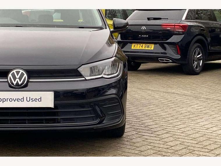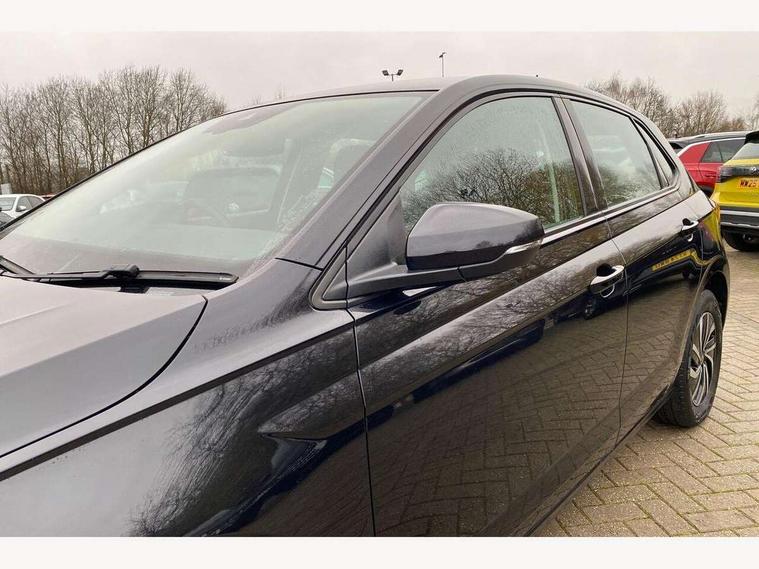 Adaptive cruise control without follow-to-stop and speed limiter, Bluetooth mobile phone interface, Driver alert system, Emergency call service, Front assist system, Power assisted speed sensitive steering, Preparation for We connect and We connect plus, Speedo and rev counter, electronic odometer, trip, service interval display and fuel gauge, Standard rear axle, Travel Assist - Lane keeping system and traffic jam assist, Travel assist including emergency assist, Trip computer, Warning signal and warning light for front and rear seatbelts not fastened, Washer fluid level indicator, Wireless app connect, Front wheel drive, Rear shock absorpion, Start-stop system with battery regeneration (recuperation - energy recovery during braking), DAB Digital radio, Diversity antenna for FM reception, Front and rear 6 speakers, Automatic dimming interior rear view mirror, Body colour bumpers, Body colour door handles, Body colour door mirrors, Electric front windows, Heat insulating darkened glass in side and rear windows, Heat insulating glass windscreen, Power folding adjustable/heated exterior mirrors and front passenger exterior mirror lowering function, Rain sensor, Rear electric windows, Rear fog light, Rear side wing doors, Rear windscreen washer and wiper with interval delay, Third brake light, 12V power socket in centre console, 2 front and 2 rear reading lights, 2 USB-C ports in the front, 2 USB-C charging sockets on the center console in the rear, 3 rear head restraints, 60/40 split folding rear seat and rear seat bench not split, Ceramique headliner, Chrome plated radiator grille inserts, air vent surrounds and light switch surrounds, Door and side trim panel, Driver and front passenger seat height adjustment, Driver/passenger sunvisors with illuminated vanity mirrors, Front centre armrest, Front seat backrest storage pockets, Front standard seats, Handbrake lever handle in leather, Hartley/Thomas cloth upholstery, Isofix child seat preparation easy-fit (for two outer rear seats, and front passenger seat) compatible with I-size, Leather trimmed gear knob, Luggage compartment cover, Luggage compartment floor, Luggage compartment lighting, Multifunction steering wheel, Single front passenger seat, Standard pedal cluster, Light and vision pack - Polo, 3 point height adj front seatbelts + pretensioners, 3x3 point rear seatbelts, ABS, Driver and front passenger airbag with front passenger airbag deactivation, Drivers and front passengers safety optimised head restraints, ESC (Electronic stability control) + EDL (Electronic Differntial lock) and ASR (Traction control), Extended and predictive pedestrian/ cyclist protection, Front curtain and side airbags with center airbag, Front disc brakes, Hill hold control, Manual child lock in rear doors, Rear drum brakes, Single tone horn, Tyre pressure loss indicator, Alarm with interior protection, Anti-theft alarm system with interior monitoring, backup horn, and towing protection, Anti-theft wheel bolts, Electronic engine immobiliser, Lava stone black gloss/matt decorative inserts in dash and front door panels, Low rolling resistance tyres,