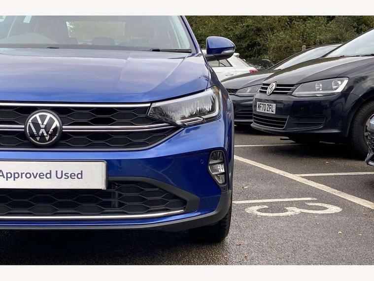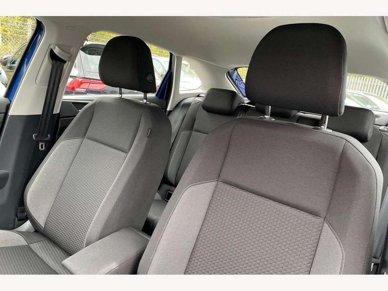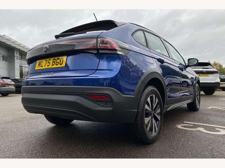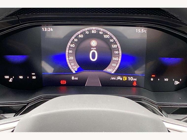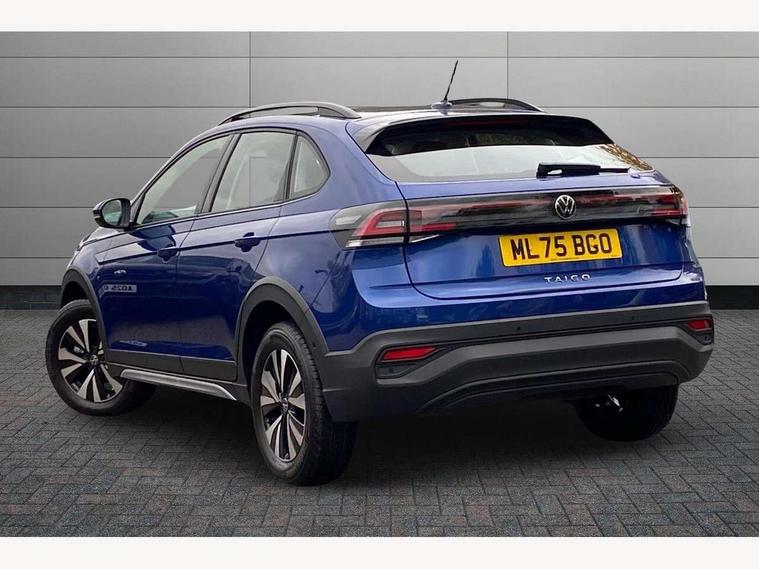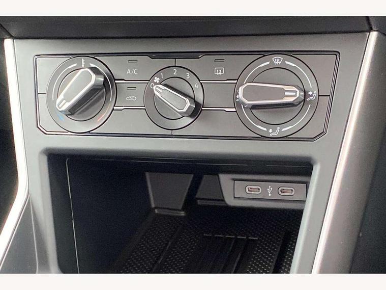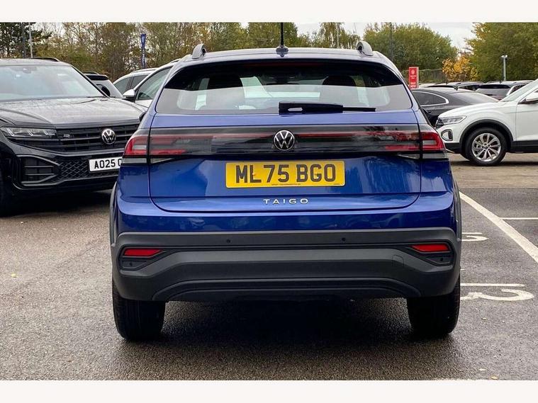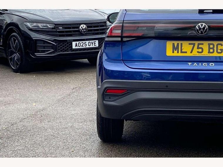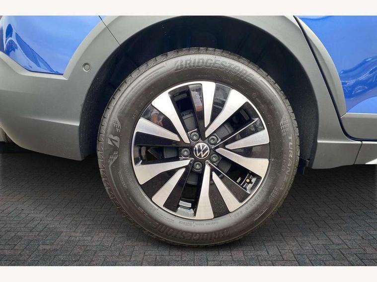 8" Digital cockpit basic display, Advanced driver attention and drowsiness monitor, Dynamic road sign display, e-Call (emergency call), Power Steering, Predictive adaptive cruise control, Travel assist including emergency assist, Washer fluid level indicator, Wireless Charging including Bluetooth, Start-stop system with battery regeneration (recuperation - energy recovery during braking), Digital radio reception (DAB+), WeConnect plus, Ambient lighting with logo projection, Aspherical driver's exterior mirror, Auto headlights, Body coloured bumpers, Body coloured exterior mirror housings and door handles, Electric windows, External USB type C socket and charging sockets, Heat insulating glass windscreen, LED rear combination lamp, LED third brake light, Left convex exterior mirror, Power folding adjustable/heated exterior mirrors and front passenger exterior mirror lowering function, Rear fog light on one side, reversing light on both sides, Rear side wing doors, Rear wash/wipe with intermittent wipe setting, 'Slash/ Austin' Cloth upholstery, 12V socket in centre console, 2 front reading lights, 3 rear head restraints, 3 seat bench in 2nd row, Black carpets, Child seat anchor for child seat system i-Size, 2x top tether and child seat anchor in front on front passenger side, Door and side trim panels in titan black, Driver and front passenger seat height adjustment, Front centre armrest, Handbrake lever handle in leather, Height and reach adjustable steering wheel, Leather trimmed gear knob, Leather wrapped multifunction steering wheel, Luggage compartment floor, Luggage compartment light, Lumbar support for driver's and front passengers seat, Seat covers in titanium black, Single front passenger seat, Split folding backrest with centre armrest and unsplit rear seat bench, Storage compartment under front seats, Sun visors with illuminated vanity mirrors, Chrome Package - Taigo, Drivers assistance pack - Taigo, Light and Sight pack including High beam assist - Taigo, 2 x 3-point seatbelts/outer rear seats with ECE label, 3-point seat belts in front with pretensioner and height adjustment, 3-point seatbelt for centre rear seat, Adaptive driver and front passenger airbags with passenger airbag deactivation function, Driver and front passenger airbags with front passenger airbag de-activation, front side and curtain airbags, Driver and front passenger safety-optimised head restraints, Electronic stability control, Extended and predictive pedestrian/ cyclist protection, Front and rear disc brakes, Front curtain and side airbags with center airbag, Hill start assist, Manual rear child locks, Single tone horn, Tyre pressure loss indicator, Anti-theft alarm system with interior monitoring, backup horn, and towing protection, Lava stone black gloss/matt decorative inserts in dash and front door panels, Low rolling resistance tyres,