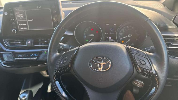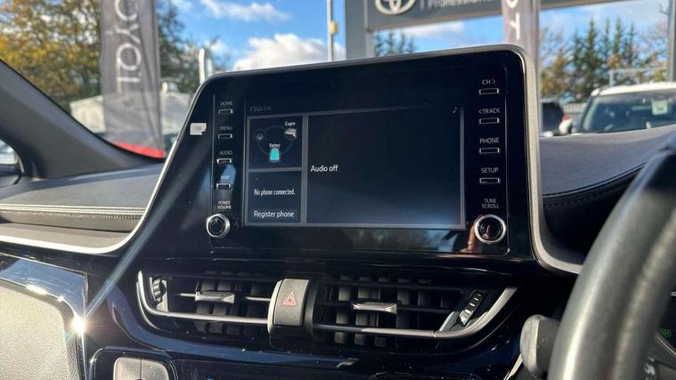 4.2" coloured TFT screen for multi-information display, Adaptive cruise control, Bluetooth connectivity, E-call, Electric power steering, Hybrid system indicator, Lane departure alert with steering control, Lane trace assist, Push button start, Push button tailgate release, Remote boot door release in cabin, Remote boot door release in key, Reversing camera, Road sign assist - RSA, Smart voice assist, Trip computer, Voice recognition, Vehicle Stability Control (VSC), 6 speakers, AM/FM radio, DAB Radio (Digital Audio Broadcasting), Toyota touch 2 multimedia system with 8" display, USB connector, Wi-fi connectivity, Anti-jam protection on power windows, Auto high beam, Auto up and down function on all power windows, Automatic headlights, Automatic headlights cut-off, Black and body coloured rear bumper, Black lower front grille, Black upper front grille, Body colour door handles, Body colour door mirrors, Body colour front spoiler lip, Body coloured front bumper, Boot door release with push button, Electric heated door mirrors, Follow me home headlights, Front and rear power windows, Front fog lights, Headlight cut off reminder, Honeycomb lower front grille, LED daytime running lights, LED High mounted stop light, LED rear brake lights, LED rear combination lights, Manual headlight levelling, Manually retractable door mirrors, Noise reduction layer on front windows and windscreen, Power adjustable door mirrors, Rear side wing doors, Rear spoiler, Rear tailgate, Rear window defogger, Rear window wiper, Reflective LED headlights, Shark fin antenna, UV-filter on driver and passenger windows, UV-filter on rear windows, 12v power outlet - front, 3 rear headrests, 3 seat bench in 2nd row, 3 spoke leather steering wheel, 60/40 split folding rear seat, Adjustable rear headrests, Adjustable speed limiter switch on steering wheel, Assist grips front and centre pillar, Audio and telephone switches on steering wheel, Black front door assist grips, Boot light, Chrome interior door handles, Cloth upholstery, Driver and front passenger personal light, Driver and front passenger Whiplash Injury Lessening seats, Dual zone automatic air conditioning, Floor mats, Front cupholders, Front head restraints, Front sports seats, Glovebox with internal light, Hard tonneau cover, Hooks for luggage holding net, Humidifying Nanoe air purifier, Illuminated entry system, Isofix attachments on outer rear seats, Leather gearshift, Light on driver sun visor, Light on passenger sun visor, Manual telescopic steering wheel, Manual tilt steering wheel, Manually adjustable lumbar support on driver seat, Manually height adjustable driver seat, Manually height adjustable front passenger seat, Manually reclining driver seat, Manually reclining front passenger seat, Manually sliding driver seat, Manually sliding front passenger seat, Microphone on front personal light, Mirror on driver sun visor, Mirror on passenger sun visor, Multimedia switches on steering wheel, Pollen filter, Shopping bag hooks, Single front passenger seat, Slow opening on lower glovebox, Voice recognition switch on steering wheel, 16 Disk front wheel brake, 3x3 point rear seatbelts, ABS+EBD+Brake assist, Electronic parking brake, Front and rear seatbelt reminder, Front passenger airbag on/off switch, Hill start assist control (HAC), Pre collision system with pedestrian detection, Pre-tensioners and force limiters, Rear door child safety locks, SRS Airbags - Driver + Front passenger, front side, front and rear curtain and driver's knee airbags, Toyota safety sense, Tyre pressure monitoring system, Tyre pressure warning system, Acoustic vehicle alert system (AVAS), Glass-breaking alarm sensors, Immobiliser, Intrusion alarm, Intrusion sensor, Motion sensor alarm, Power door locks, Power passenger window lock, Remote central locking, Black lower dashboard, Black upper dashboard, Grey deco line on upper dashboard, Matte black centre console, Tyre repair kit,