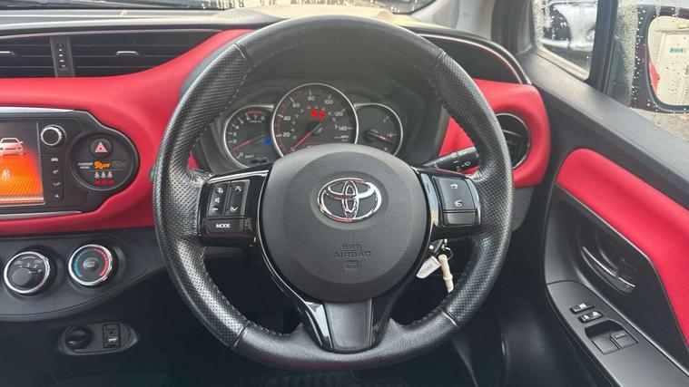 Bluetooth system, Electric boot release, External temperature gauge, Fuel indicator with low level warning, Lights on warning, Rear view camera, Remote fuel flap release, Speed sensitive power steering, Tachometer, Trip computer, Lowered sports suspension, 6 speakers, Auxiliary input socket, DAB Digital radio, MP3 player, Radio, Steering wheel mounted audio controls, Touch screen audio system, USB connection, 2 speed front wipers + intermittent wipe, Body colour heated door mirrors, Chrome fog light surround, Chrome rear garnish, Colour keyed bumpers, Colour keyed door handles, Darkened headlamps, Drivers window one touch up/down, Electric front windows, Electrically adjustable door mirrors, Follow me home headlights, Front fog lights, Green tinted glass, Headlamp levelling, Heated rear windscreen, LED daytime running lights, LED rear lights, Piano black front grille, Piano black honeycomb front grille, Privacy glass, Projector headlamps, Rear spoiler, Rear wiper, 12V Accessory socket, 60/40 split folding rear seat, Boot light, Clean air filter, Driver and passenger footwell lighting, Driver seat height adjust, Driver's glovebox with lid, Driver/passenger vanity mirrors with covers, Front cupholders x 2, Front map reading lights, Front seats with lumbar support, Height adjustable front head restraints, Height adjustable rear seat head restraints (x3), Interior silver door handles, Isofix system on outer rear seats, Leather gear knob, Manual air conditioning, Passada cloth upholstery, Perforated leather steering wheel, Rear cupholder, Removable rear parcel shelf, Tilt/telescopic steering column, 3 point seatbelts on all rear seats, ABS+EBD+Brake assist, Collapsible pedal support, Curtain airbags, Door open warning, Driver and passenger airbags, Drivers knee airbag, Front side airbags, Height adjustable front seatbelts with pre-tensioners and load limiters, Passenger airbag deactivate switch, Rear child proof door locks, Seatbelt warning lamp and buzzer, Tyre pressure monitoring system, Vehicle stability control VSC + traction control, Ventilated front disc brakes, Engine immobiliser, Remote central locking, Instrument panel in Dark grey, 16" Machined alloy wheels, Tyre repair kit,