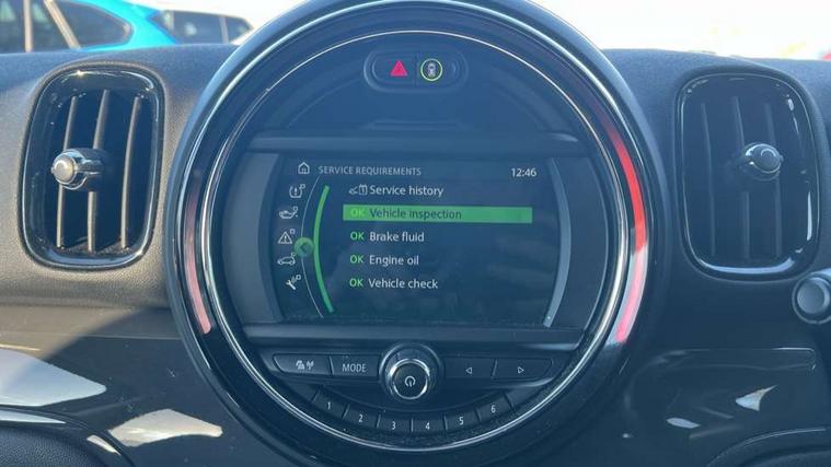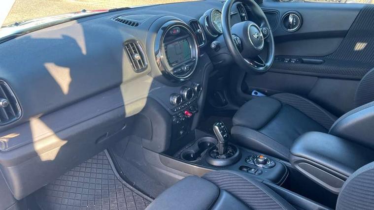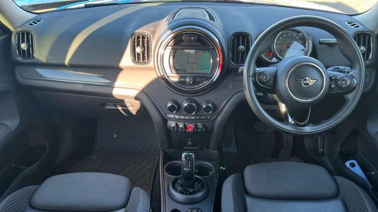 Active Guard incl speed limiting and lane departure functions with auto steering, and front collision warning with brake intervention, Automatic start/stop function with brake energy recuperation, Electro-mechanical speed dependant steering assistance, Instrument cluster, Mini E-call, MINI TeleServices, On board computer, Rear parking distance control, Double Vanos system, Fully variable valve control, High precision injection, Steptronic transmission with double clutch, FM tuner and DAB digital radio, Body colour fuel filler cap, Day time driving lights, Door sill strips, Dynamic brake lights, Electric windows, Heated rear window, Heated windscreen washer jets, Left exhaust tailpipe with chrome finisher, Model logo, Model logo on Tailgate, Radiator grille, Rain sensor with auto headlights, Rear fog lights, Rear window wiper, Side scuttle panel with integrated indicator, Split rear doors, Sun/heat protection glass, White indicator lenses, 12V Accessory socket in centre console, 360L luggage compartment capacity, 4 lashing eyes in luggage compartment, 40:20:40 split folding rear seats, Chrome interior highlights, Colour line - Carbon black, Cupholders, English handbook, Glove compartment, Headliner with grab handles and clothes hooks, Height and length steering column adjustment, Isofix rear child seat preparation, Leather gearshift lever and handbrake gaiters, LED reading lights, vanity mirror lights, front foot well light and spotlight on front seats, Manual air conditioning, Mechanical seat adjustment, driver seat height adjust, forward/back and front seats backrest, Multifunction steering wheel, Passenger seat height adjuster, Storage compartments in doors, Sunvisors with vanity mirrors, Excitement pack - Countryman, Navigation pack - Countryman, 2 tone horn, 3 point seatbelts on all seats, 6 Airbags - front, side, head and seat belt tensioners, Anti-lock braking system (ABS), DSC - Dynamic Stability Control, Electronic handbrake, Front and rear disc brakes, Hill start assist, Tyre pressure monitoring system, Alarm system with tilt sensor, monitoring doors, bonnet interior and tailgate, Auto drive away locking, Deadlocking function, Electronic vehicle immobiliser, Locking wheel bolts, Start/stop toggle with keyless go, Tool kit,