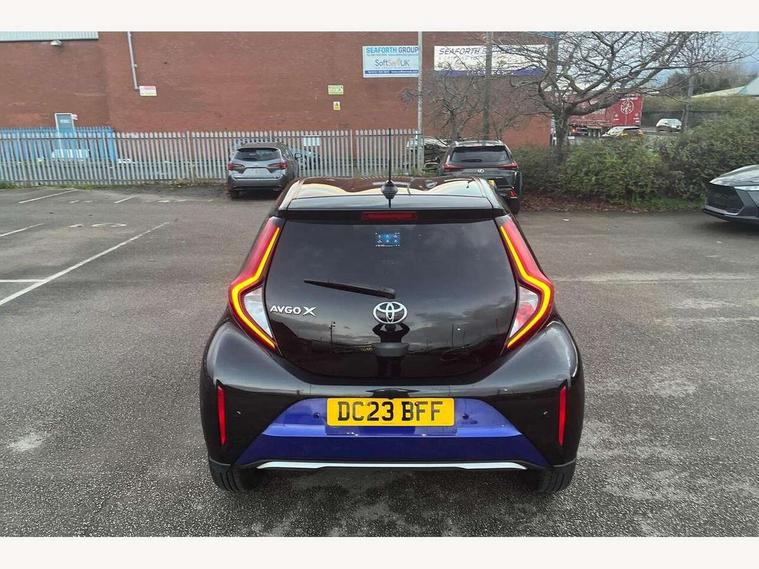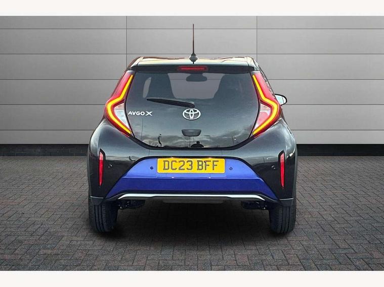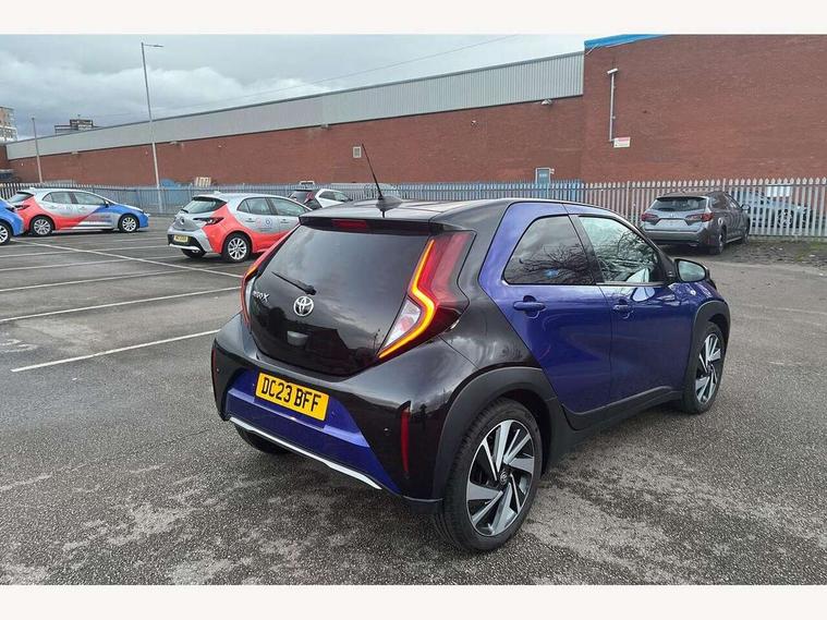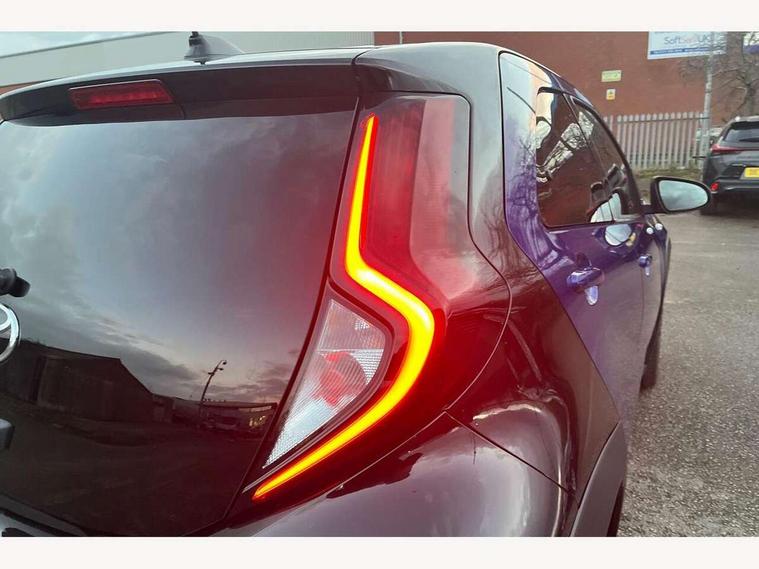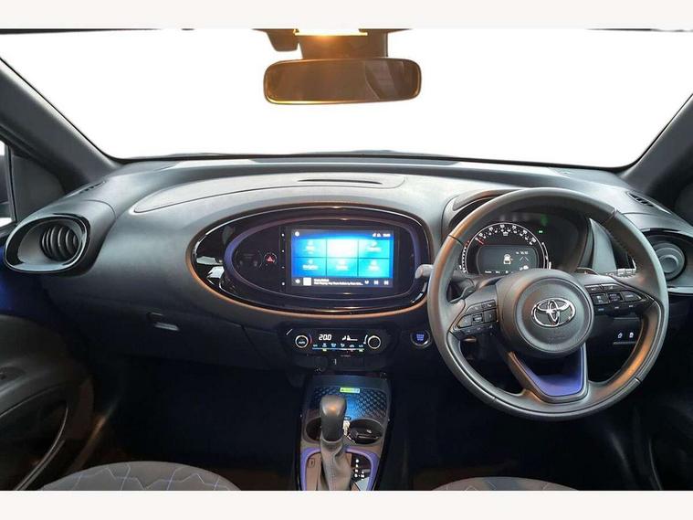 4.2" TFT colour screen, Adjustable speed limiter, Analogue speedometer, Bluetooth connectivity, Digital tachograph, Driver attention alert system, eCall emergency call system, ECO-driving indicator, Electric power steering, Front and rear parking sensors with auto brake, Intersection turn assist, Key reminder warning, Noise reduction kit, Pre collision system with emergency steering assist, Remote boot door release on key, Reversing camera with static guide lines, Smart entry and push button start, Speed limit display, Start and stop, Wireless charger, Wireless Smartphone Integration includes Apple CarPlay and Android auto, Vehicle Stability Control (VSC), 4 speakers, 9" HD multimedia display touch screen with Toyota smart connect, DAB digital audio broadcast, USB connector, Auto headlights, Auto wipers, Automatic headlights cut-off, Automatic high beam On/Off switch, Bicycle towing hook, Black fog light surrounds, Black side protection mouldings, Black wheel arch mouldings, Body colour door handles, Body coloured front bumper, Boot door scuff plate, Eclipse black rear bumper, Electric heated door mirrors, Follow me home headlights, Front and rear underruns in silver, Front fog lights, Front power windows, Gloss black door mirrors, Gloss black upper front grille, Headlight cut-off reminder, LED daytime running lights guide, LED front light guide, LED High mounted stop lamp, LED projector headlights, Manual day/night rear view mirror, Manual headlight levelling, Pagoda roof, Power adjustable door mirrors, Power back door, Privacy glass, Rain sensor, Rear combination lights LED bulb type, Rear side wing doors, Rear windscreen defogger, Rear windscreen wiper, Remote hazard lights system, Short antenna, Variable intermittent windscreen wipers, 12v power outlet - front, 2 seat bench in 2nd row, 3 spoke leather steering wheel, 50/50 split folding rear seat, Adhesive roof headlining, Adjustable speed limiter switch on steering wheel, Audio and telephone switches on steering wheel, Auto air conditioning, Black roof lining, Body colour satin anodised insert on steering wheel, Boot light, Centre room light, Chrome interior door handles, Chrome surround on air conditioning buttons, Clean air filter, Console box storage, Floor mats, Front and rear cup holders, Front head rest deco art, Front head restraints, Gear shift indicator, Height adjustable driver seat, Intelligent adaptive cruise control switch on steering wheel, ISOFIX child restraint system on rear seats, Lane departure alert switch on steering wheel, Leather gearshift knob, Light blue ambient lighting in centre console, Manual tilt steering wheel, Manually reclining and sliding driver seat, Manually reclining and sliding front passenger seat, Multimedia switches on steering wheel, Paddle shift levers on steering wheel, Partial synthetic leather upholstery, Pollen filter, Rear door pockets, Rear head restraints, Remote air-conditioning system, Satin silver insert on gear shift knob, Single compartment glovebox with lights, Single front passenger seat, Soft tonneau cover, Sun visors with mirror on driver and passenger side, Voice recognition switch on steering wheel, Toyota safety sense pack - Aygo X, Anti lock braking system + Electronic brake force distribution, Child safety door lock, Emergency brake light signal (EBS), Hill start assist control (HAC), Passenger airbag on/off switch, Seat belt reminder for front and rear seats, Supplement restraints system (SRS) - 6 airbags, Traction control, Tyre pressure warning system, Immobiliser, Remote power door locks, Black wheel centre caps, Tyre repair kit,