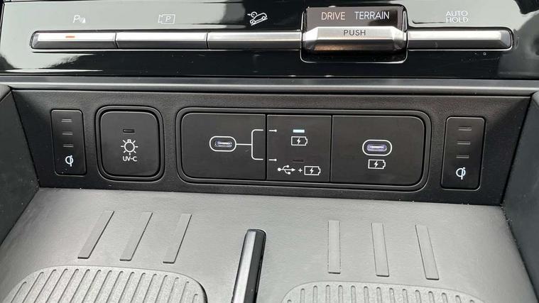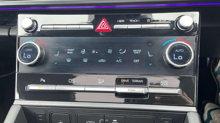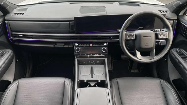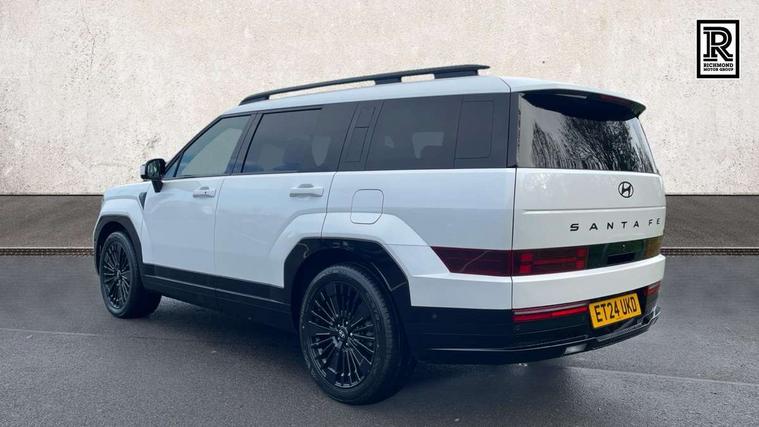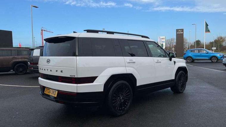 12.3" Drivers supervision instrument cluster with LCD display, 360 degree parking sensors, Blind spot collision avoidance assist (BCA), Blind spot view monitor (BVM), Bluelink and Wireless Apple Carplay/Android Auto, Bluetooth connectivity with voice recognition, Drive mode selector, Driver status monitor (DSM), Dual wireless phone charging pad, Emergency services call system, Forward collision avoidance assist (FCA 2.0), Head up Display, Highway drive assist 2 (HDA 2), Intelligent speed limit assist (ISLA), Lane departure warning system (LDW), Lane Follow Assist 2 (LFA 2), Lane keeping assist (LKA), Low washer fluid warning, Navigation based smart adaptive cruise control with stop and go, Over the air software updates (OTA), Parking Collision Avoidance Assist-Reverse (PCA-R), Power assisted steering, Remote smart parking assist, Safe exist assist (SEA), Smart electric tailgate with hand's free opening function, Surround view monitor, Self levelling suspension, Shift by Wire Gear Selector (SBW), 12.3" Touchscreen display with satellite navigation, 2nd Row USB C Ports x2 Charging, 3rd Row USB C Ports x2 Charging, Front USB C port 1 charging and 1 data/charging, Premium BOSE sound system with 12 speakers and subwoofer, Steering wheel audio, phone and cruise controls, Automatic headlights with dusk sensor, Automatic windscreen wipers with rain sensor, Black Styling (Skid plate, Fender upper garnish, Door side garnish, C/D pillars, Rear bumper moulding, DLO), Body colour bumpers, Digital centre mirror, Dual glass electric tilt and slide sunroof, Dynamic welcome light, Electric adjustable/heated/auto power folding door mirrors, Front and rear electric windows, Heated rear window, Hidden C pillar assist handle, Hidden rear wiper, High beam assist, LED daytime running lights, LED Headlights, LED indicator lights, LED indicators in door mirrors, LED positioning lights, LED taillights, LED third brake light, Manual rear door blinds, Rear side wing doors, Rear windows and tailgate privacy glass, Roof rails, Solar glass windscreen and front windows, Windscreen acoustic film, Windscreen auto defog function, 2nd and 3rd row center armrest with cupholder, 3rd row head restraints, Centre rear head restraint, Driver and front passenger premium relaxation seats, Dual zone climate control air conditioning, Electrically adjustable front seats with 2 way electric lumbar support, Front head restraints, Front seats with memory, Heated front seats, Heated rear seats, Height and reach electrically adjustable steering column, Leather wrapped heated steering wheel, Luggage cover, Luggage hooks, Luggage net, Multi colour LED ambient lighting, Nappa leather upholstery, Rear head restraints, Single front passenger seat, Split folding (50/50) third row seats, Split folding (60/40), sliding and reclining second row seats, Sun Visors with driver and passenger illuminated vanity mirrors, Two front cup holders, UV-C Tray, Ventilated front seats, Trailer wiring pack - Santa Fe, 3 point seatbelts on all seats, Adjustable regenerative braking paddle shifters, Airbag - Front, front side, curtain and centre front airbags, Anti-lock brake system (ABS), Dynamic brake control, Electric parking brake with auto hold function, Electronic Stability Control (ESC), Hill start assist control (HAC), Manual child lock in rear doors, TSA (Trailer Stability Assist), Tyre pressure monitoring system, Immobiliser, Black ink interior decals, 20" Black calligraphy alloy wheels, Tyre mobility kit,