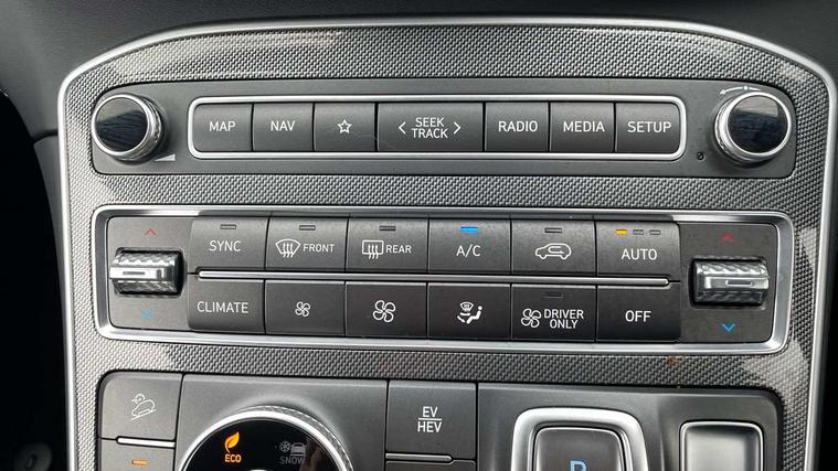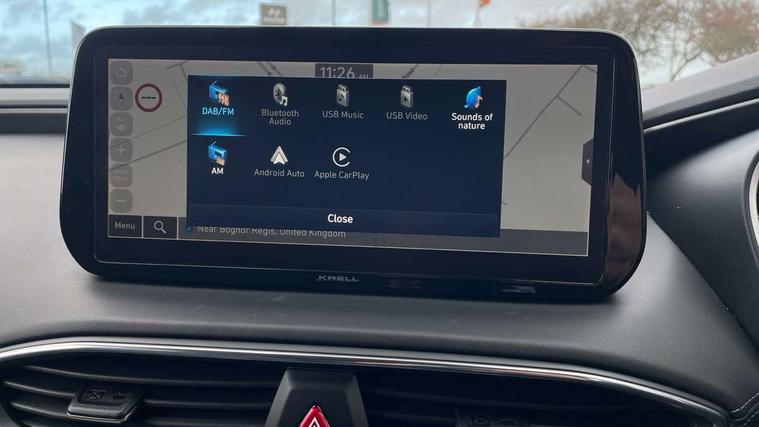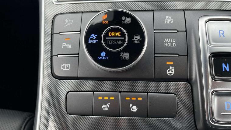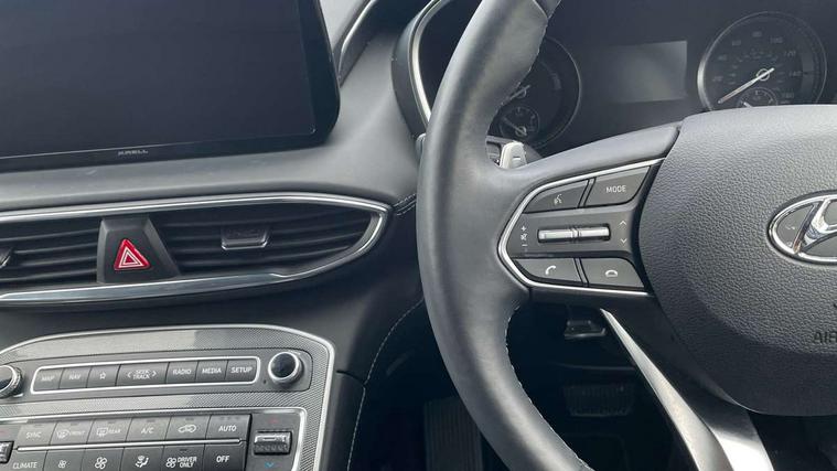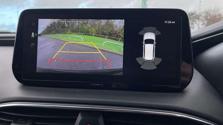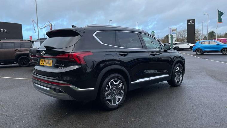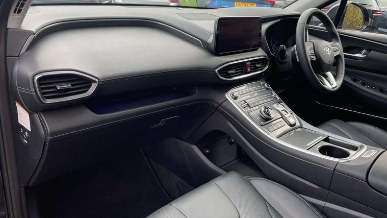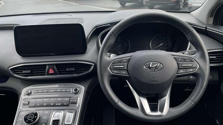 10.25" touchscreen satellite navigation with mapcare and live services, 4.2" TFT supervision cluster display, Apple car play/Android Auto, Blind spot collision avoidance assist, Bluetooth connectivity with voice control, Cruise control - smart adaptive speed control with stop and go function, Drive mode selector, Driver attention alert system, E-call, Emergency stop signalling system, Forward Collision Avoidance Assist (FCA) - Car, Pedestrian and Cycle, Forward Collision Avoidance Assist Junction Turning (FCAJX), Front parking sensor, Intelligent speed limit warning, Lane departure warning system with lane keep assist - LKAS, Parking - rear view monitor with parking guidance dynamic, PAS, Rear parking sensor, Safe exist assist (SEA), Smart electric tailgate with hand's free opening function, Smart posture control, Smartphone connectivity, Smartphone wireless charging plate, Trip computer, 3.3 kW On Board Charger, Charging cable - 7 pin type 2, Emergency 3 pin connector charging cable (ICCB), Self levelling suspension, Auxiliary input socket, DAB Digital radio, Krell premium audio with 10 speakers including external amplifier and subwoofer, Rear USB port, Steering wheel mounted controls, USB connection located in centre console, Automatic defog system, Automatic dimming rear view mirror, Automatic headlights with dusk sensor, Automatic windscreen wiper control, Body colour door handles, Body coloured bumpers, Body coloured door mirrors, Dynamic bending headlight/cornering lights, Electric adjustable/heated/folding door mirrors, Electric front/rear windows/one touch/anti trap, Follow me home headlights, Full LED headlights, Heated rear windscreen with washer, LED daytime running lights, LED front fog lights, LED rear fog light, LED rear lights, Positioning Lights - LED, Privacy glass in rear window and tailgate, Puddle lights, Rain sensor, Rear side wing doors, Rear wash/wipe with intermittent wipe setting, Roof rails, Smart high beam headlights, Solar glass with windscreen shade band, Third brake light, Trailer stability assist, Variable front intermittent wipers, Windscreen wiper de-icer, 12V power point in luggage area, 12V power points in front + rear centre consoles, 2 seat bench in 3rd row, 3 seat bench in 2nd row, 50/50 split/folding 3rd row of seats, 60/40 split folding slide/recline seats 2nd row, Adjustable head restraints, Bottle holders, Driver's lumbar support, Driver's seat electric adjustments, Driver/passenger sunvisors + illuminated vanity mirrors (drivers with ticket holder), Dual zone climate control, Faux leather door trim, Front and rear door pockets, Front armrest with storage compartment, Front cupholders, Front map reading lights, Front passenger's seat electric adjustments, Front seat and rear pockets, Front/rear interior lights, Grab handles (x3), Heated front seats, Heated outer rear seats, Heated steering wheel, Height/reach adjustable steering column, Illuminated cooling glove compartment, Isofix child seat preparation for front passenger seat, Isofix on 2nd row outer seats, Leather upholstery, Leather wrapped gear shift knob, Leather wrapped hand brake, Leather wrapped steering wheel, Luggage compartment lighting, Luggage cover, Luggage hooks, Luggage net, One-touch folding rear seats, Rear armrest with storage, Retractable load area cover, Single front passenger seat, Sunglasses holder, Underfloor storage system in load area, Trailer wiring pack - Santa Fe, 3 point seatbelts on all seats, ABS/EBD, Childproof rear door locks, Curtain airbags, Downhill brake control, Driver and passenger airbags, Electric parking brake, ESP, Front seatbelt pretensioner, Front side airbags, Height adjustable front seatbelts, Hill start assist control (HAC), Passenger airbag deactivate switch, Rear seat belt pretensioners, Rear seat Occupancy alert, Seat belt reminder, Seatbelt warning lamp, Traction control, Tyre pressure monitoring system, Deadlocks, Engine immobiliser, Keyless entry with start/stop button, Locking wheel nuts, Remote control central locking, Speed sensitive auto door locking, Thatcham category 1 alarm, Faux leather wrapped dashboard, 19" Alloy wheels, Temporary spare wheel (space saver),