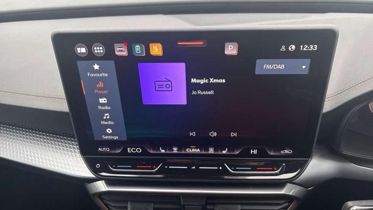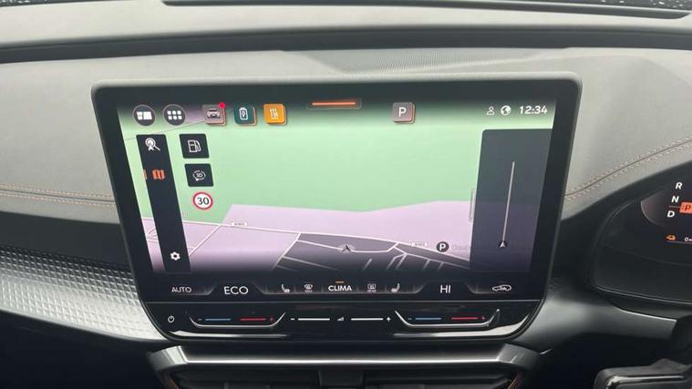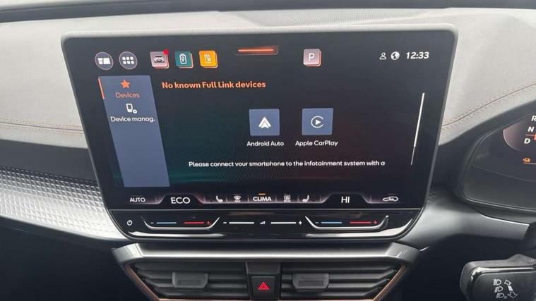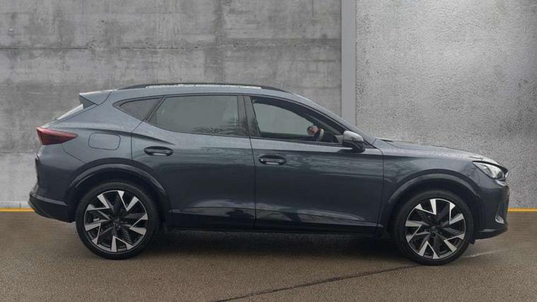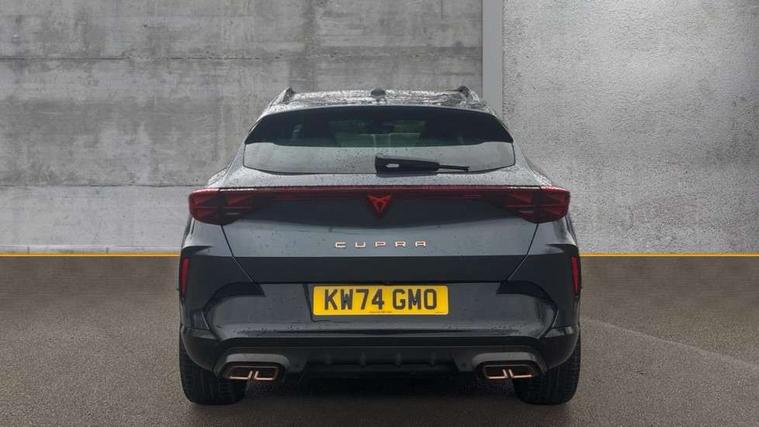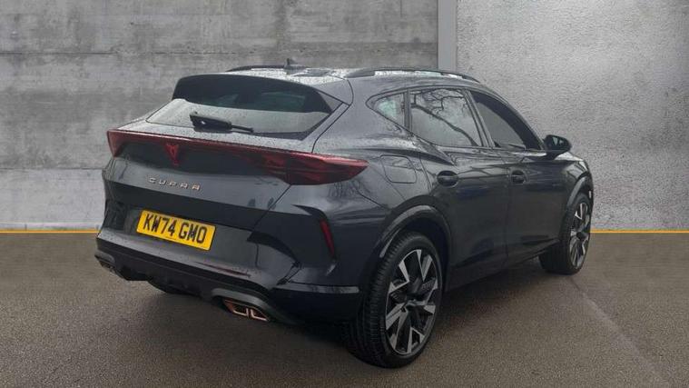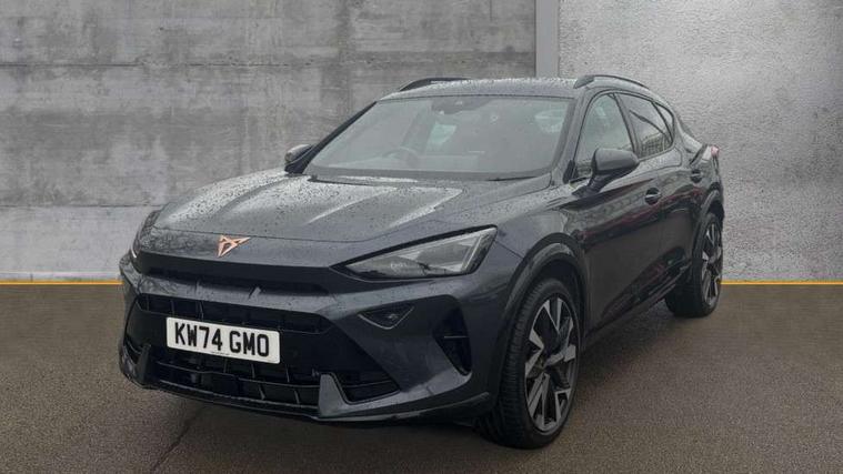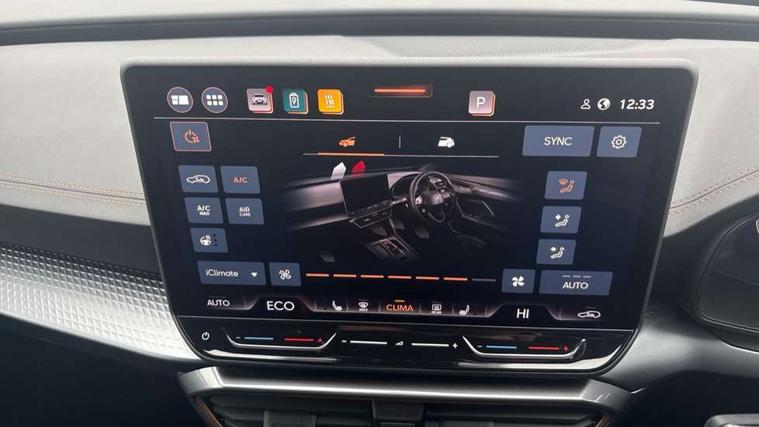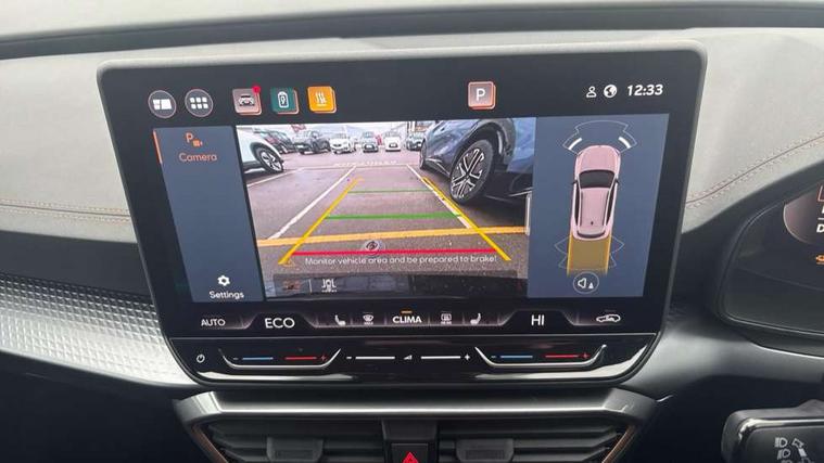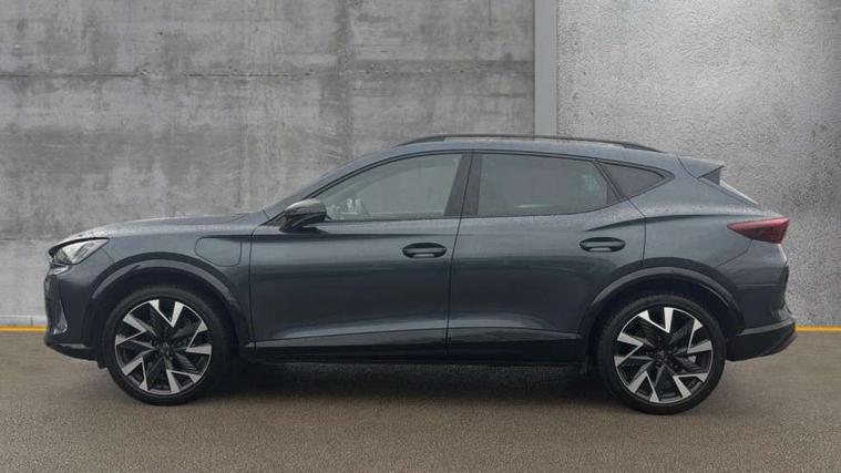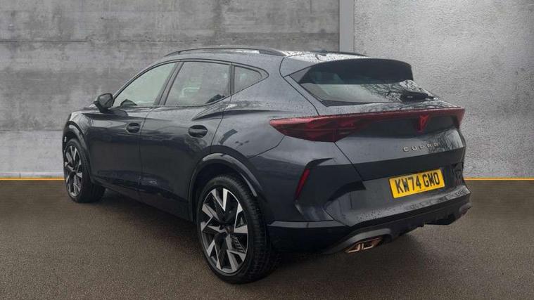 10.25" digital cockpit and configurable dashboard, Adaptive cruise control with follow-to-stop and speed limiter, Advanced driver alert system, Dynamic chassis control with driving profile selection (Comfort, Sport, CUPRA, Individual), Dynamic road sign display, Emergency steering support with turn assist, Forward collision warning with automatic braking, Front and rear parking sensors, Full link phone integration, Lane assist, Rear view camera, RPM, trip computer, outside temp gauge, instrument light brightness, low fuel warning light, lights on reminder, gearshift indicator, Service interval indicator, Speed sensitive power steering, Start/stop system with regenerative braking, Virtual pedal and electric tailgate, Voice control system, Wired Android Auto, Wireless apple carplay, Wireless phone charger, 10 amp mode 2 charging cable, 32 amp mode 3 charging cable, Adaptive chassis control with continuous operation, CUPRA sport suspension, Electronic locking differential and dynamic traction support, 2 front and 2 rear USB type C sockets, Media system with navigation, 12.9" touchscreen display, voice control, DAB, steering wheel mounted controls, Auto dimming rear view mirror, Body colour door handles, Body coloured bumpers, Dark grey wing mirror, Daytime running light with automatic headlight control and coming home feature, Door panel ambient lighting, Dynamic headlight range control, Electric front/rear windows, Electrically adjustable heated and folding door mirrors with memory function, Gloss black roof rails and window surrounds, High beam assist, LED 3rd brake light, LED front fog lamps with cornering function, LED Taillights with dynamic indicator, Matrix LED headlights with multifunction camera, Rain sensing wipers, Rear diffuser with copper simulated exhaust pipes, Rear fog lights, Rear side wing doors, Rear wash/wipe, Tinted rear windows, Welcome lights (within exterior mirror housing), 12V socket, 2 front and 2 rear reading lights, 3 seat bench in 2nd row, 60/40 split rear bench seat with armrest and mechanical seat release, Black headlining, Black interior roof lining, Cupra sports pedals, Dust/pollen filter, Electrically adjustable front seats with lumbar support and memory function, Front and rear head restraints, Front centre armrest, Heated front seats, Heated supersports multifunction leather steering wheel with satellite buttons and gear shift paddles, Height/reach adjust steering wheel, Illuminated aluminium doorsteps, Illuminated interior front door sills, Illuminated sunvisor with mirror, Isofix, Leather dashboard, door insert and side trim panel, LED smart wraparound lighting, PVC/Dinamica microfiber upholstery + bucket seats, Satellite steering wheel, Single front passenger seat, Storage pockets on rear of front seats, Three zone climate control with control panel in rear, 3 point seatbelts on all rear seats, ABS, Brake control system - ESC and brake booster, Child proof door locks, Driver and front passenger airbags with front passenger airbag de-activation, Electronic parking brake, Front and rear disc brakes, Front side curtain airbags, Hill hold control, Public e-call, Seat belt reminder for front and rear seats, Tyre pressure monitoring system, Anti theft alarm system, KESSY Advanced - Keyless start, keyless entry with SAFELOCK, Locking wheel bolts, Copper and aluminium interior detailing, 19" Sandstorm machined sport black and silver alloy wheels, Breakdown and tool kit,
