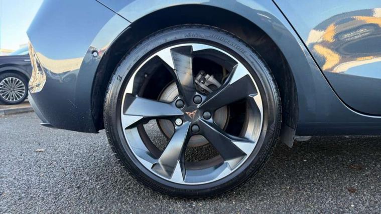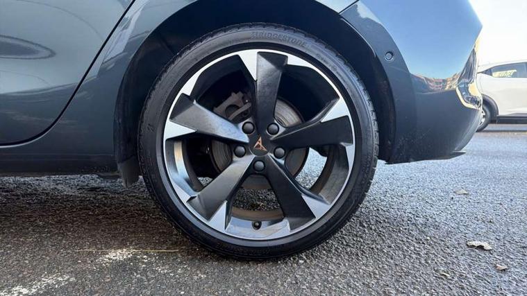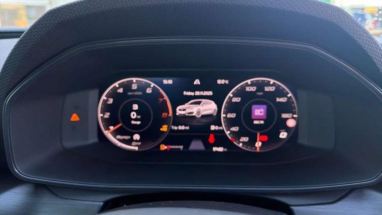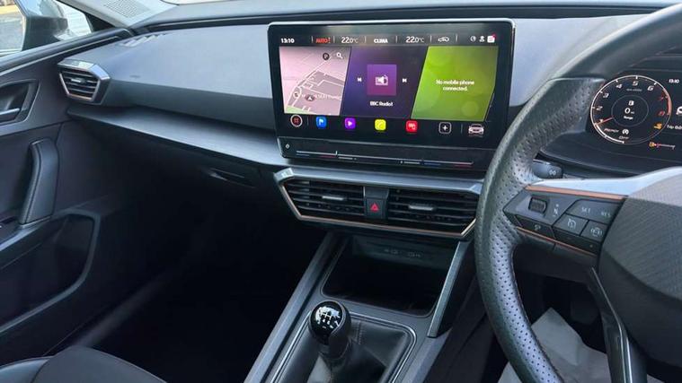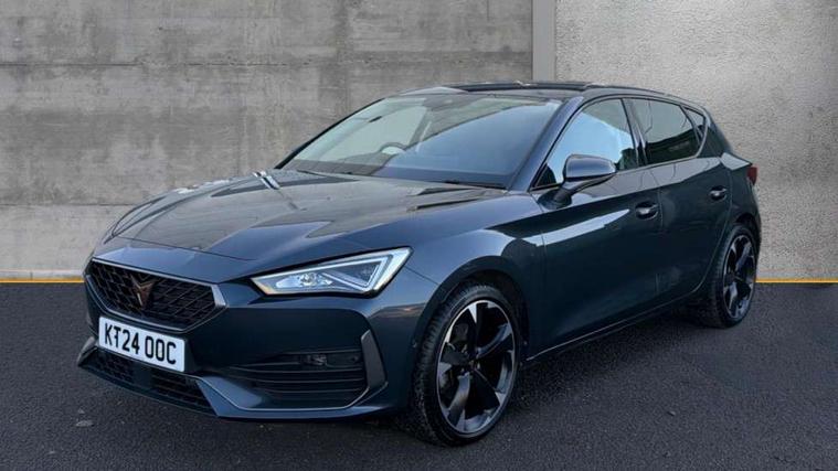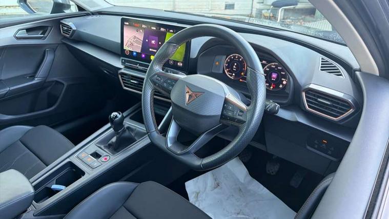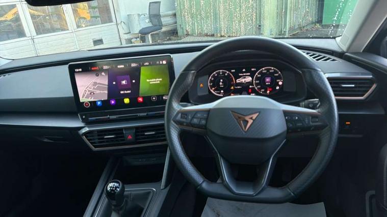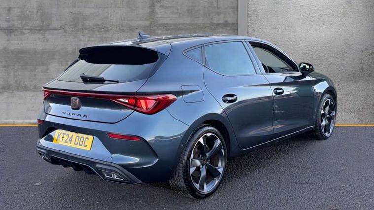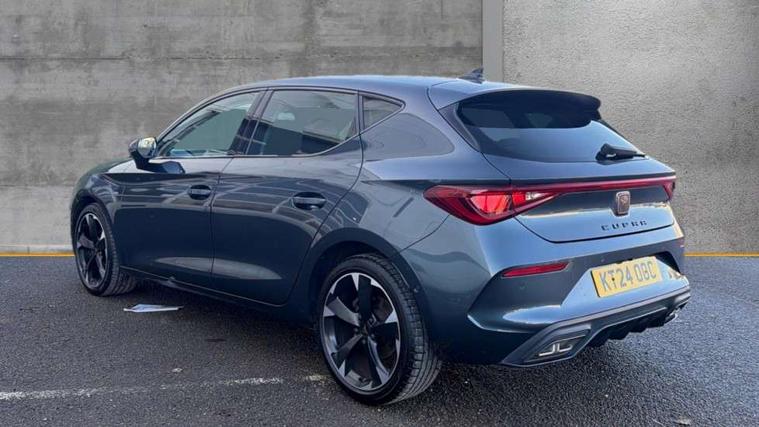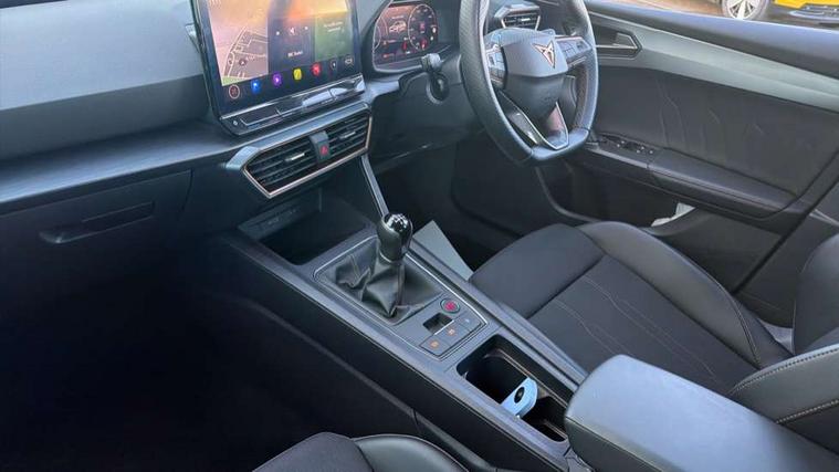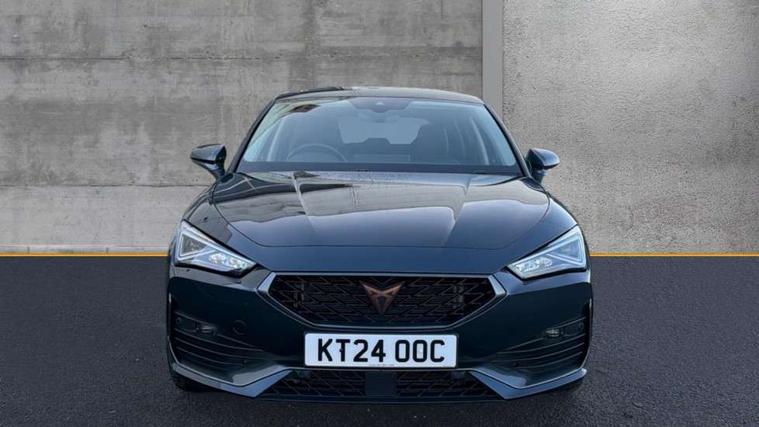 CUPRA drive profile selection with (Comfort/Sport/Individual), throttle response and gearshift mode, Digital cockpit, E-call, Electro mechanical speed sensitive power steering, Four x USB Type C ports (2 in front and 2 in rear), Front assist with forward collision warning braking reaction to vehicles, pedestrians and cyclists, Full link smartphone integration with Mirror Link, wireless Apple CarPlay and wired Google Android Auto, Lane assist, Lockable tailgate, Park assist (inc front/rear parking sensors), Rear view camera, RPM, trip computer, outside temp gauge, instrument light brightness, low fuel warning light, lights on reminder, gearshift indicator, Service interval indicator, Start/stop system with regenerative braking, Wireless phone charger, Sports suspension, Auxiliary input socket, Auto dimming rear view mirror, Body colour door handles, Body coloured bumpers, Cupra sports bumpers, Dark tinted rear windows, Electric front/rear windows, Electrically adjustable, heated and folding door mirrors, LED front fog lamps with cornering function, LED headlights with dynamic turn signals, tail lights, rear fog lights with rear coast to coast lighting, Rain sensing wipers, Rear diffuser with twin exhaust pipe on each side, Rear side wing doors, Rear wash/wipe, Separate daytime running light with automatic headlight control and coming home feature, Third brake light, 12v power supply in centre console, 3 seat bench in 2nd row, 5 headrests, 60/40 split rear bench seat with armrest, Ambient lighting with glovebox, footwell and single monocolour, Cupra Leather flat bottomed, perforated steering wheel, Driver/passenger manual seat height adjustment, Folding boot cover, Front and rear reading lights X 4, Front centre armrest, Front seats manual lumbar adjustment, Grey headlining, Height/reach adjust steering wheel, Illuminated interior front door sills, ISOFIX points in outer rear seats with top tether anchorage points, Jack and tool kit, PVC/Cloth upholstery with copper stitching, Single front passenger seat, Sports seats, Sunvisors with illuminated mirror, Three zone climate control, Media system plus with navigation pack - Leon Cupra, Safety and driving pack (M) - Cupra leon, 3 point seatbelts on all rear seats, ABS, Brake control system - ESC and brake booster, Child proof door locks, Cupra black brake calipers, Driver and front passenger airbags with front passenger airbag de-activation, front side and curtain airbags, Electronic parking brake, Extended safety system - seat belt tensioner, window closure and hazard lights, Hill hold control, Rear disc brakes, Seat belt reminder for front and rear seats, Tiredness recognition system, Tyre pressure monitoring system, Anti theft alarm system with interior monitoring in cab, backup horn and towing protection, KESSY Advanced - Keyless start, keyless entry, Locking wheel bolts, Chrome and copper interior detailing, 18" Machined sport black and silver alloy wheels with 92Y tyres,
