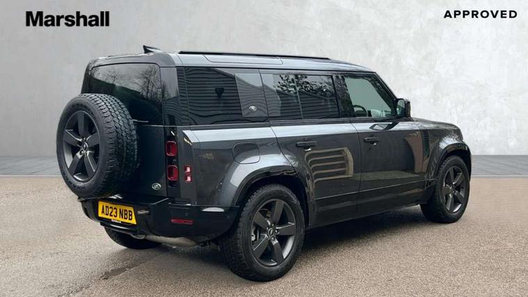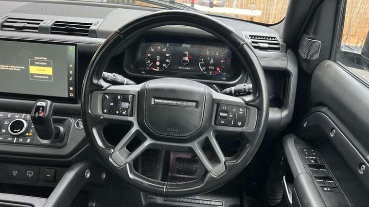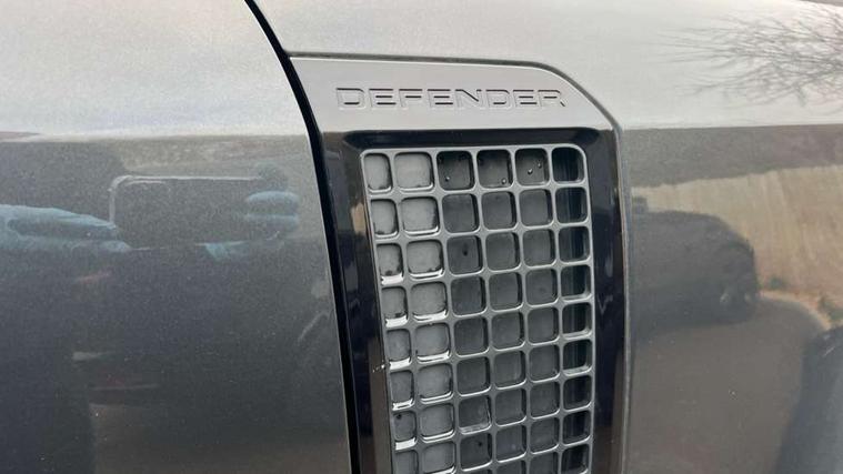 11.4" touchscreen, 360 degree parking aid, 3D Surround Camera with 360 View, 180 Rear View, Front Traffic Detection, Forward Vehicle Guidance, Tow Hitch Assist and clear sight Ground View, Adaptive cruise control, Android Auto, Apple CarPlay, Assisted tailgate with soft close, Blind spot assist, Bluetooth system, Brake pad wear indicator, Clear exit monitor, Connected navigation pro, Driver condition monitor, Electric power assisted steering (EPAS), Interactive driver display, Lane keep assist, Push button start, Rear collision monitor, Rear traffic monitor, Traffic sign recognition with adaptive speed limiter, Trip computer, Wade Sensing, 8 speed automatic transmission, All wheel drive system, Twin speed transfer box, DAB Radio (Digital Audio Broadcasting), Meridian 400w sound audio system with 11 speakers and subwoofer, Pivi pro connected, Automatic headlight levelling, Automatic headlights, Black exposed rear recovery eyes, Centre high mounted stop light, ClearSight interior rear view mirror, Electric heated/power fold door mirrors with approach lights and auto dimming driver side, Electric windows with one touch open/close and anti-trap, Follow me home lighting, Front fog lights, Heated rear window with timer, Heated windscreen, LED tail lights, Privacy glass, Puddle lights, Rain sensing windscreen wipers, Rear fog lights, Rear side wing doors, Rear wiper, Side hinged tailgate, Trailer stability assist, X-Dynamic badge, 12V power socket in loadspace, 14 way heated and cooled electric adjustable memory front seats with 4 way manual headrests, 3 seat bench in 2nd row, Alpine lights, Configurable cabin lighting, Durable rubber cabin flooring, Durable rubber loadspace flooring, Electric reach + rake adjustable steering column, Extended leather upgrade, Footwell lights, Front passenger isofix child seat attachment, Heated steering wheel, Loadspace cover, Loadspace Hook, Multifunction steering wheel, Overhead stowage for sunglasses, Premium cabin lighting, Rear headrests, Rear ISOFIX, Rear reading lights, Single front passenger seat, Standard seat configuration, Storage glovebox, Sunvisors with illuminated vanity mirrors, Online pack with data plan - Defender, 5 x 3 point seatbelts, ABS, Brake hold function, Cornering brake control (CBC), Customer configurable autolock, DSC - Dynamic Stability Control, EBD - Electronic brakeforce distribution, Electric parking brake (EPB), Emergency brake assist, Emergency braking, ESP + traction control, Front airbags with passenger seat occupant detector, HDC - Hill descent control, Hill launch assist, Low traction launch, Power operated child locks, Remote for (e-Call, Optimised assistance call, InControl app, Climate, beep and flash and door), RSC - Roll stability control, Seat belt reminder, TPMS (Tyre pressure monitoring system), Alarm, Immobiliser, Intrusion sensor, Keyless entry, Locking wheel nuts,