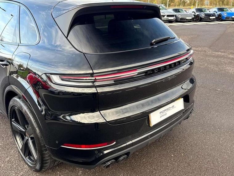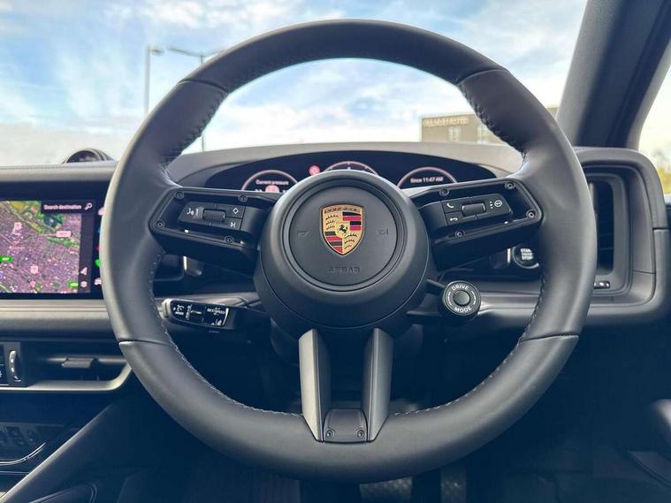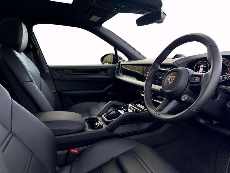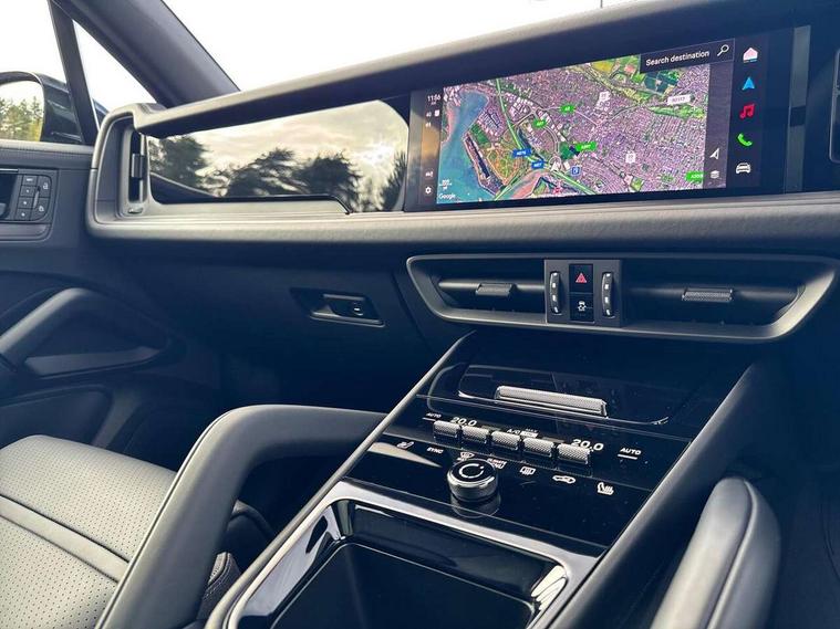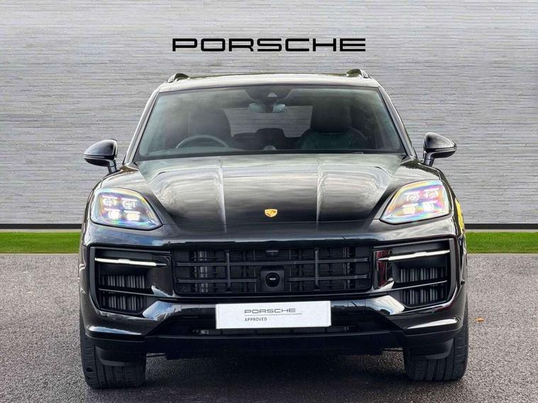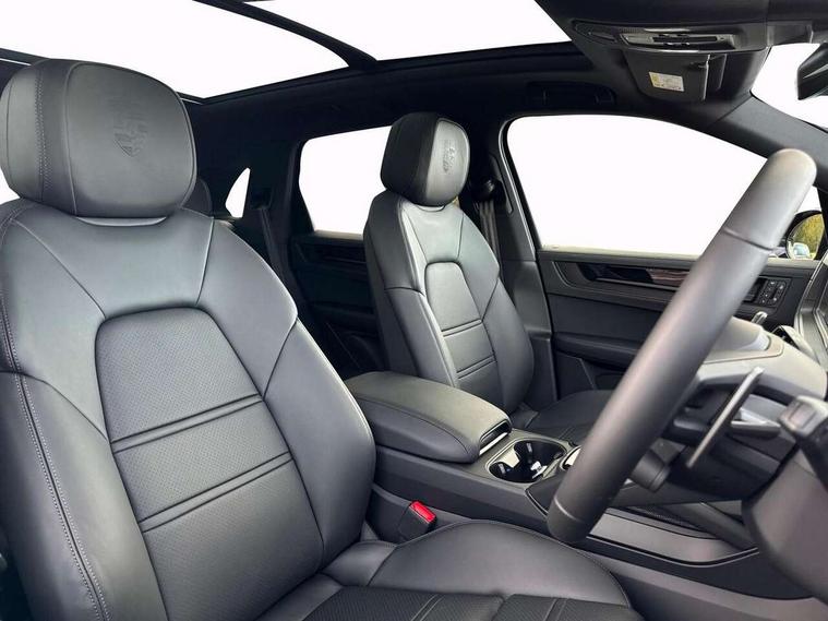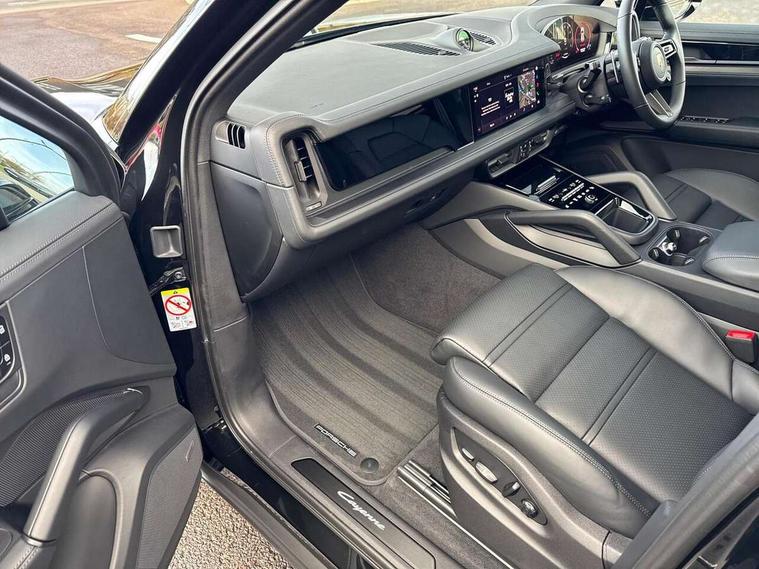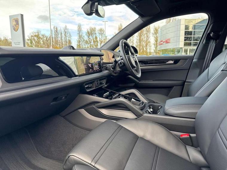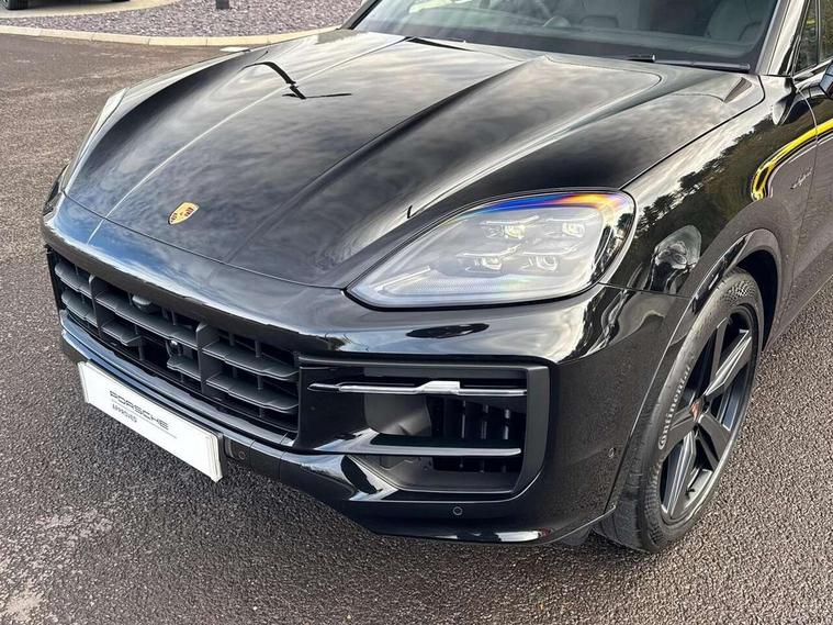 Active parking assist and 360 camera, Active speed limit assist, Adaptive cruise control, Android Auto, Apple car play, Brake pad wear indicator, Central analogue rev counter with black dial face, power meter and pointers in acid green, Driver awareness detection, Driver personalisation for climate, audio and communication, assistance systems and other customisable car systems, E-call, Energy recuperating braking system, High resolution 12.3-inch touchscreen display in full HD resolution, Individual mode for individual selection of vehicle drive settings, Instrument cluster with 12.6" curved display, Instrument cluster with two high-resolution displays, Lane change assist, Mobile phone preparation with Bluetooth interface for telephone and music, Mode switch, Porsche Communication Management (PCM) including online navigation module, mobile phone preparation, audio interfaces and voice control system, Power steering plus, Power tailgate with gesture control, Reversible occupant protection measures, Self steering park assist, Smartphone integration, Speed limit indicator, Vehicle electrical system recuperation, Warn and brake assist including pedestrian protection, 11 kW on board AC charger, 32A 230V blue industrial supply cable and basic wall mount, 70 litre fuel tank, 8 speed automatic gearbox, Adaptive air suspension with levelling system and height adjustment with Porsche Active Suspension Management (PASM), Aluminium cylinder heads and engine block, Direct fuel injection (DFI) with central injector position, Front and rear aluminium multi link axles, Gasoline particulate filter, Lithium-ion battery, Mode 3 charging cable, Power electronics, battery manager and electrically powered auxiliary units, Sport mode, Standard charging cable length, Standard suspension, Starter battery, Supply cable for domestic electrical socket (10A), Turbocharger, VarioCam Plus, Water cooled with thermal management, AM radio, Digital radio+, Fast charging two USB-C PD connectivity and charging port in front storage compartment, Smartphone compartment with wireless charging, Two USB-C PD charging ports in the rear, Active air intake flaps, Aluminium finish fuel filler cap, Aluminium roof, Auto dimming interior + exterior mirrors, Automatic headlight activation including welcome home functionality, Bumper system with high strength cross members and two deformation elements + Two receptacles with screw threads towing lug + onboard tool kit, Deletion of GTS logo on sideskirt inlays, E-Hybrid logo on front wings with border in black, Electric windows + anti trap protection + one touch open/close drivers side, Electrically adjustable, folding and heated exterior mirrors, aspherical on drivers side including courtesy lights, Extensive aerodynamic underbody protection, Exterior mirror lower trims including mirror base in black, Fixed Panoramic roof system, Four point signature LED daytime running lights, Front end with integrated air intakes and airblades for the side air intakes, Front light modules including position lights and direction indicators in LED light guide technology, Front windscreen wipers with two speeds, intermittent wipe and rain sensor, Fully galvanised steel / aluminium hybrid lightweight bodyshell and Aluminium bonnet, tailgate, doors, side panels, roof and front wings, Heated rear window with automatic switch off, LED High level third brake light integrated into roof spoiler, Lower valance, PORSCHE logo LED door courtesy lights, PORSCHE' lettering integrated in tailgate strip, Privacy glass, Rear diffusor in louvered design, Rear side wing doors, Rear window wiper with intermittent function and washer jet, Right fuel filler cover and left charging port cover, Side window trims and front inlays in high gloss black, Thermally tinted insulated glass all round, Tinted HD matrix LED headlights, 3 seat bench in 2nd row, 4-way headrests front/2-way headrests rear, Ambient lighting, B-pillar clothes hooks on driver and passenger's side, Charge air cooling, Deletion of turbo S logo embossed on headrests, Door interior with decorative surfaces and accent trims, Double sun visors for driver and front passenger, Electric sound, Electric steering column, Elevated centre console with handles, Five seats rear seat system with two comfort outer seats and a central seat, Front and rear bottle holders in door panels, Front centre armrest, Heated front seats, Illuminated make-up mirror in sun visors, Isofix fastening system for child seats on outer rear seats, Leather covered fixed luggage compartment cover, Leather door panel and central armrests, Leather gear selector, LED interior light with switchoff delay function, footwell + glove compartment light, ashtray + ignition lock illumination, front + rear reading light, Manual height adjust for driver and front passenger seat belt, Particle/pollen filter with active carbon filter, PM 2.5 fine dust filtering, Porsche crest on front headrests, Rear seat split folding design 40:20:40, Fold out centre armrest with integrated cup holder, manual fore/after adjust and backrest angle adjust, Retractable roller luggage compartment cover in detachable cassette, Sideskirts in black plastic, Single front passenger seat, Soft close doors, Steering code engine cooling system, Storage compartments - Cooled glove compartment, front centre console, door and map pockets on front seat backrests + side luggage compartment, Three 12V power sockets - front below the glove compartment, centre console and at side of luggage compartment, Two integrated cup holders in front and rear with variable diameter, Driver front passenger memory pack - Cayenne, High gloss silver exterior package - Cayenne, 3-point automatic seatbelts with front and outer rear seats pretensioners and front force limiter with 3-point automatic seatbelt for rear centre seat, 4 piston aluminium monobloc fixed brake calipers at rear, 6 piston aluminium monobloc fixed caliper brakes at front, Active bonnet, Auto hold fu
