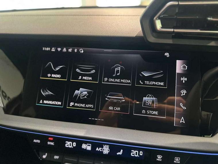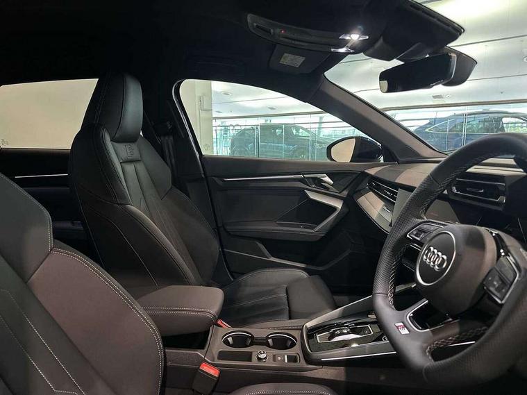 Adaptive cruise control (ACC), Adjustable speed limiter, Audi drive select (Auto, Comfort, Dynamic, Efficiency and Individual), Audi virtual cockpit plus - 12.3" full HD resolution dynamic digital instrument cluster, Automatic start/stop system with recuperation, Bluetooth interface, Camera based traffic sign recognition, Collision avoidance assistant, Driver attention and fatigue detection, e-Call (emergency call), Electromechanical power speed sensitive steering, Emergency assist, Intersection assist, Lane departure warning system, MMI Navigation Plus with high resolution 10.1" colour touch screen display, Park Assist with parking system Plus, Reversing camera, Service indicator, Smartphone interface with app store includes wireless Apple carplay, Android auto and Amazon alexa integration, Trip computer, Voice control system with natural language interaction, Diesel particulate filter, Sports suspension, Audi Phonebox light with wireless charging, Audi sound system - 10 loudspeakers including centre loudspeaker and subwoofer, DAB Digital radio, USB ports with charging function in the rear, Acoustic glass windscreen, All weather light, Aluminium window trim, Auto dimming frameless rear view mirror, Automatic dynamic range control, Body colour exterior mirrors, Dipped beam, main beam, position light and turning light, Electrically adjustable/heated/folding/auto dimming door mirrors with integrated LED indications + kerb view function for passenger side, Exterior model badging, Front and rear side air inlets in grained matt black with dark liquid chrome frame, Front electric windows, Front radiator grill in high gloss dark chrome, Heat insulating glass windscreen, Illuminated door sills with aluminium inserts at the front with S logo, Intersection light, Invisible tailpipe, LED 3rd brake light, LED brake lights, LED daytime running x3, LED headlights with LED rear lights and dynamic rear indicators, LED rear number plate lights, LED reverse light, LED tail lights, Light and rain sensors, Manoeuvring light, Motorway light, Privacy glass - dark tinted rear window, rear door and side windows, Rear diffuser and grill in grained matt black with inlay in dark liquid chrome, Rear electric windows, Rear side wing doors, Rear wiper, S line bumpers, S roof spoiler, Side S line emblems on front wings, Side sill trim in dark liquid chrome, Static cornering light, 12V socket and storage compartment in front centre console, 3 seat bench in 2nd row, 3 spoke flat bottomed leather multifunction sport steering wheel with gear shift paddles, 3-zone deluxe automatic air conditioning, 4 way electrically adjustable lumbar support for driver and front passenger, 40/20/40 split folding rear seat bench, Black cloth headlining, Black front and rear floor mats, Front and rear centre armrest in artificial leather with contrasting stitching on armrests and instrument panel, Front and rear headrests, Heated front seats, Height and reach adjustable steering wheel, i-Size child seat mounting on the front passenger side and outer rear seats, i-Size and top tether on the outer rear seats, Manual boot compartment lid, Manually adjustable front seats, Rear centre armrest with cupholder, S badging on the steering wheel, Seat side bolsters, Single front passenger seat, Stainless steel pedals and front footrest in black, Twin leather upholstery with front sports seats S embossed logo, Aluminium interior elements pack - A3, Multi-coloured LED interior lighting package with Multi-coloured contour lighting of instrument panel - A3, 3x3 point rear seat belts, Driver and front passenger airbag with passenger airbag deactivation, Electronic Stabilisation Control (ESC) including ABS, ASR and EDL, First aid kit with warning triangle and 2 safety vests, Front side airbags with head airbags and interaction airbag, Hill hold assist, Pre-sense front with pedestrian and cyclist detection, Seatbelt monitoring, Tyre pressure loss indicator, Anti theft alarm, Anti-theft wheel bolts, Electronically operated child locks, Immobiliser, Black dashboard, Inlay in dark aluminium spectrum,