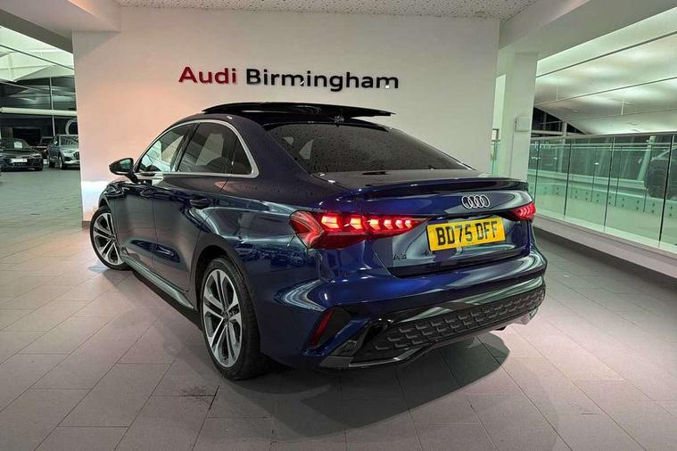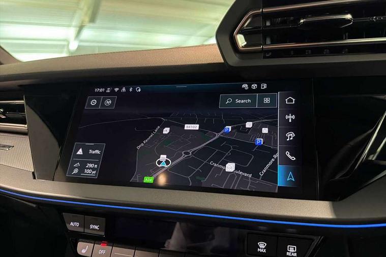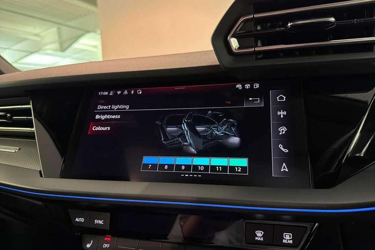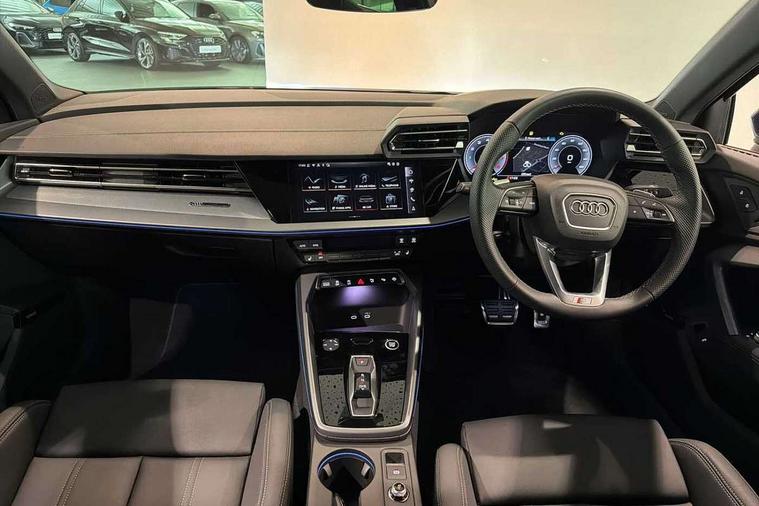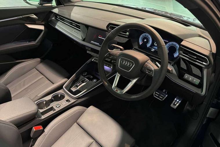 Adjustable speed limiter, Audi drive select, Audi smartphone interface with app store includes wireless Apple carplay, Android auto and Amazon alexa integration, Audi virtual cockpit plus - 12.3" full HD resolution dynamic digital instrument cluster, Automatic start/stop system with recuperation, Bluetooth interface, Camera based traffic sign recognition, Collision avoidance assistant, Cruise control, Distraction and Fatigue warning, e-Call (emergency call), Electromechanical power speed sensitive steering, Emergency assist, Lane departure warning system, MMI Navigation Plus with high resolution 10.1" colour touch screen display, Park Assist with parking system Plus, Service indicator, Trip computer, Voice control system with natural language interaction, Sports suspension, Audi Phonebox light with wireless charging, Audi sound system - 10 loudspeakers including centre loudspeaker and subwoofer, DAB Digital radio, USB ports with charging function in the rear, Acoustic glass windscreen, All weather light, Aluminium window trim, Auto dimming frameless rear view mirror, Automatic dynamic range control, Body colour exterior mirrors, Chrome exhaust tailpipes, Dipped beam, main beam, position light and turning light, Electrically adjustable/heated/folding/auto dimming door mirrors with integrated LED indications + kerb view function for passenger side, Exterior model badging, Front and rear side air inlets in grained matt black with dark liquid chrome frame, Front electric windows, Front radiator grill in high gloss dark chrome, Heat insulating glass windscreen, Illuminated door sills with aluminium inserts at the front with S logo, Intersection light, LED 3rd brake light, LED brake lights, LED daytime running x3, LED headlights with LED rear lights and dynamic rear indicators, LED rear number plate lights, LED reverse light, LED tail lights, Light and rain sensors, Manoeuvring light, Motorway light, Privacy glass - dark tinted rear window, rear door and side windows, Rear boot, Rear diffuser and grill in grained matt black with inlay in dark liquid chrome, Rear electric windows, Rear side wing doors, S line bumpers, Side S line emblems on front wings, Side sill trim in dark liquid chrome, Static cornering light, 12V socket and storage compartment in front centre console, 3 seat bench in 2nd row, 3 spoke flat bottomed leather multifunction sport steering wheel with gear shift paddles, 3-zone deluxe automatic air conditioning, 4 way electrically adjustable lumbar support for driver and front passenger, 40/20/40 split folding rear seat bench, Black cloth headlining, Black front and rear floor mats, Front and rear centre armrest in artificial leather with contrasting stitching on armrests and instrument panel, Front and rear headrests, Heated front seats, Height and reach adjustable steering wheel, Manual boot compartment lid, Manually adjustable front seats, Rear centre armrest with cupholder, S badging on the steering wheel, Seat side bolsters, Single front passenger seat, Stainless steel pedals and front footrest in black, Twin leather upholstery with front sports seats S embossed logo, Aluminium interior elements pack - A3, Multi-coloured LED interior lighting package with Multi-coloured contour lighting of instrument panel - A3, 3x3 point rear seat belts, Driver and front passenger airbag with passenger airbag deactivation, Electronic Stabilisation Control (ESC) including ABS, ASR and EDL, First aid kit with warning triangle and 2 safety vests, Front side airbags with head airbags and interaction airbag, Hill hold assist, Pre-sense front with pedestrian and cyclist detection, Seatbelt monitoring, Tyre pressure loss indicator, Anti theft alarm, Anti-theft wheel bolts, Electronically operated child locks, Immobiliser, Remote central locking with safelock, Black dashboard, Inlay in dark aluminium spectrum,