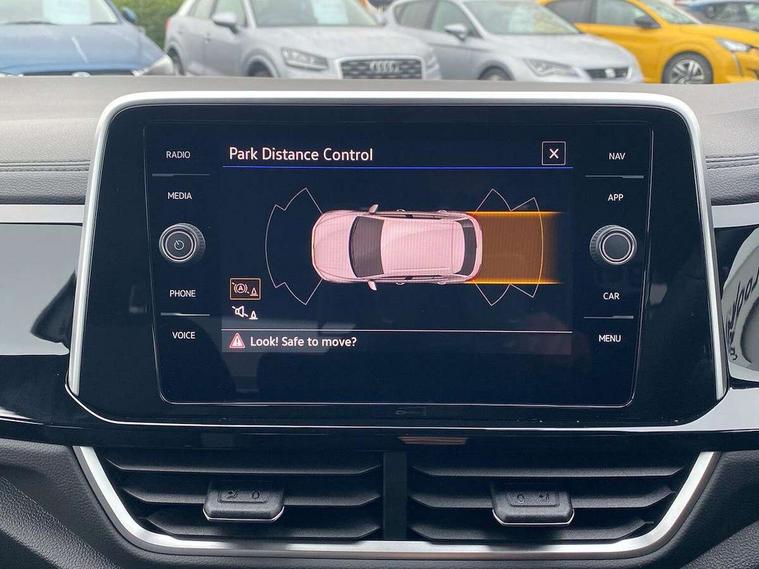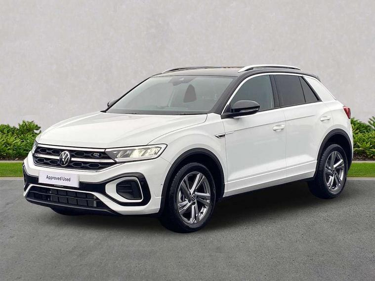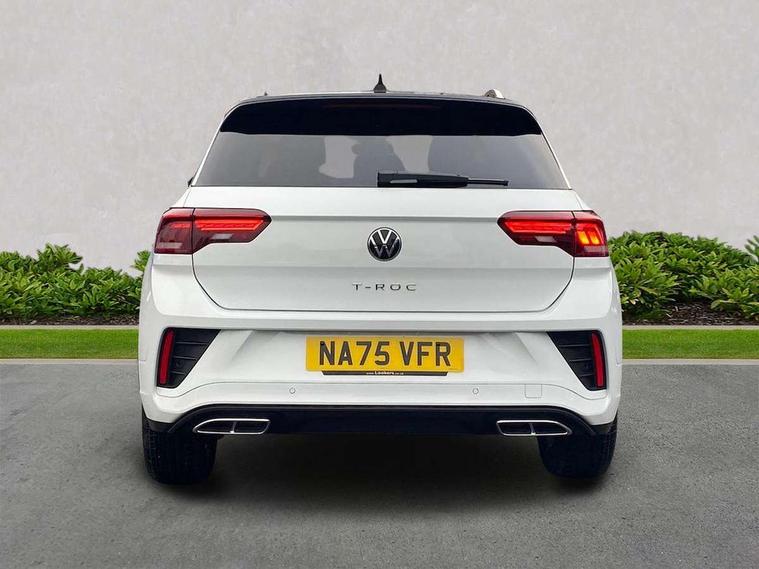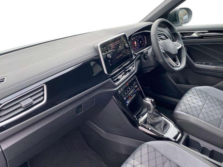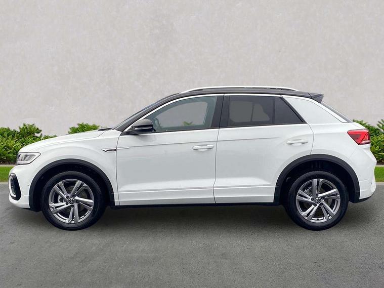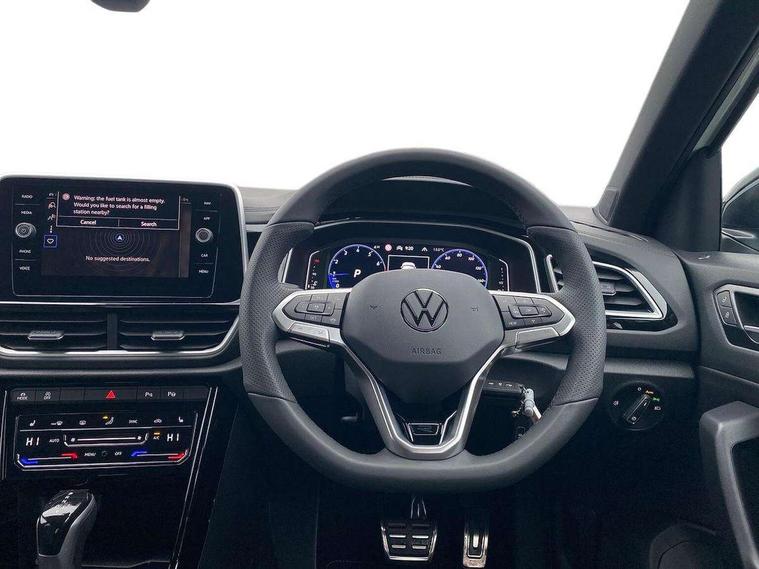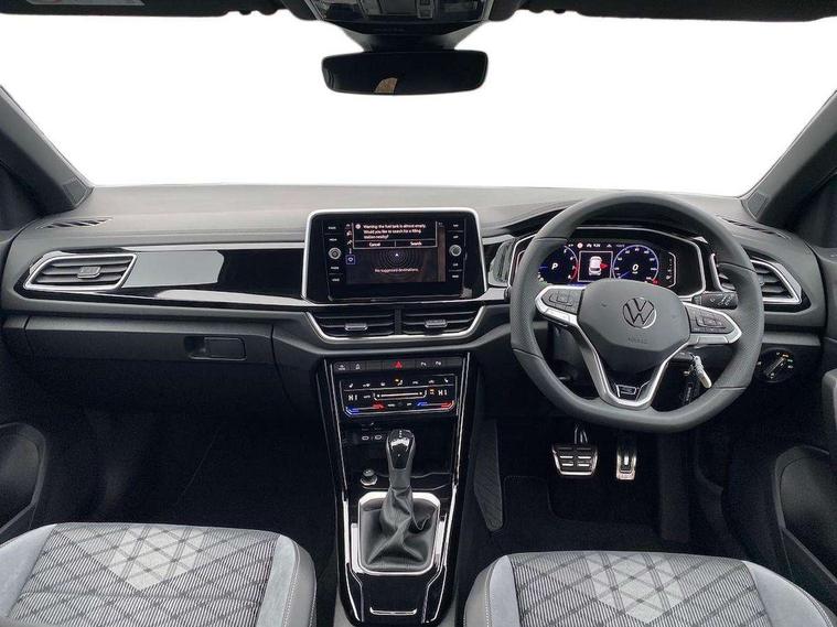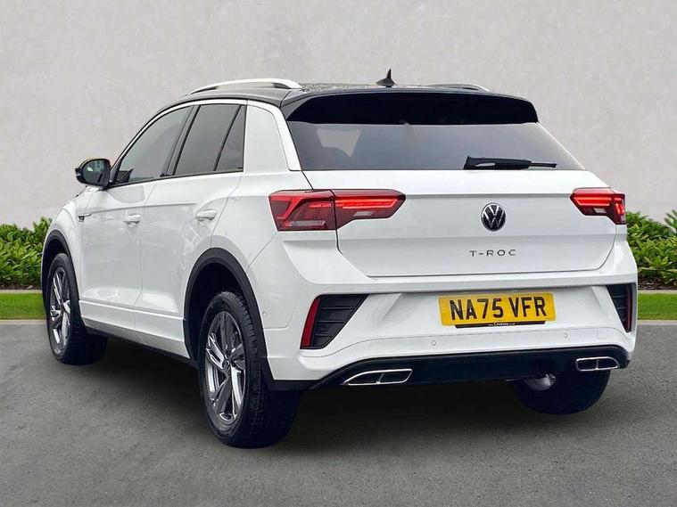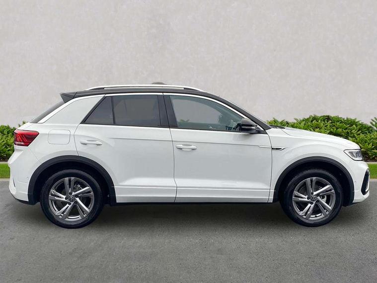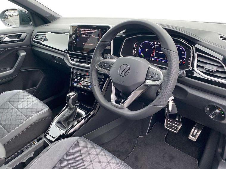 10.25" Digital cockpit pro, Advanced driver attention and drowsiness monitor, Emergency call service, Lane keeping system Lane Assist, Mobile phone interface, Modified key software - reduce switch off time for key status change to Long no motion, Online services, Park assist including front and rear parking sensors, Service interval indicator, Tailgate/trunk lid release from outside, Think blue trainer driver tips and journey analysis, Warning sound and light for front seatbelts unfastened, Wireless app connect, Battery regeneration during braking, Start/stop function with battery regeneration, DAB Digital radio, Diversity antenna for FM reception, Front and rear 6 speakers, Music playback - MP3, WMA and AAC files, Premium USB cable in choice of either Apple or Android smartphone compatibility, SD card slot, Simultaneous pairing of 2 compatible mobile devices, Title and cover art display, We Connect and We Connect Plus functionality, Auto dimming interior rear view mirror, Automatic hazard lights activation under emergency braking, Automatic headlight control with LED separate daytime running lights with coming/leaving home function, Body coloured exterior mirror housings and door handles, Electrically adjustable and heated door mirrors, Extended roof spoiler, Exterior mirrors aspherical on driver side, convex on front passenger side, External USB type C socket and charging sockets, Front windscreen wiper with intermittent wipe and 4 position delay, Heated rear window, LED 3rd brake light, LED rear combination lamps, LED rear number plate lights, Power windows with comfort operation and circuit breaker, Privacy glass for rear side windows and rear window, R-Line design body coloured bumpers, Rain sensor, Rear exhaust tailpipe, Rear fog light on one side and reversing lights on both sides, Rear side wing doors, Rear wash/wipe with intermittent wipe setting, Remote electrically foldable door mirrors, puddle lights and reverse activated passenger's door mirror, 12V power socket in centre console, 3 rear head restraints, 3 seat bench in 2nd row, 4 load lashing points in luggage compartment, Air care climatronic air conditoning system with active combination filter and 2-zone temperature control, Black roof lining, Chrome plated decorative trims, Chrome plated radiator grille inserts, air vent surrounds and light switch surrounds, Door and side trim panel with leatherette insert, Front + rear carpet mats, Front centre armrest, Front cupholders x 2, Front footwell illumination, Front reading light, Front scuff plates with R Line logo, Front seat back storage pockets, Glove compartment door with light, Instrument lighting, white adjustable panel illumination, Interior ambient lighting and surround lighting, Interior light delay, Isofix child seat preparation, Leather gearshift handle, Load-through provision with cup holder when folded down ('Unsplit rear seat bench, split folding backrest, with centre armrest), Luggage compartment lighting, Single front passenger seat, Stainless steel pedals, Storage compartment in left and right luggage area, Storage compartment in rear doors, Storage compartments in driver and front passenger doors, Sunvisors with illuminated vanity mirrors, Variable boot floor, height adjustable and removable, Driver assistance pack without proactive passenger protection - T-Roc, 3 point height adj front seatbelts + pretensioners, 3 point seatbelts in outer rear with ECE label, ABS, Child locks on rear doors, City emergency braking and pedestrian monitoring, Driver and front passenger airbag with front passenger airbag deactivation, Driver and front passenger safety-optimised head restraints, Drivers seatbelt reminder, Electronic parking brake, Electronic Stability Control (ESC) inc EDL (Electronic Differential Lock) and ASR (Traction Control), Front and rear passengers curtain airbag system including front side airbags, Hill start assist, Predictive pedestrian protection, Rear disc brakes, Two tone horn, Tyre pressure loss indicator, Volkswagen roadside assistance, Piano black decorative inserts in dashboard and front door trim panels, Trims for alloy wheels,