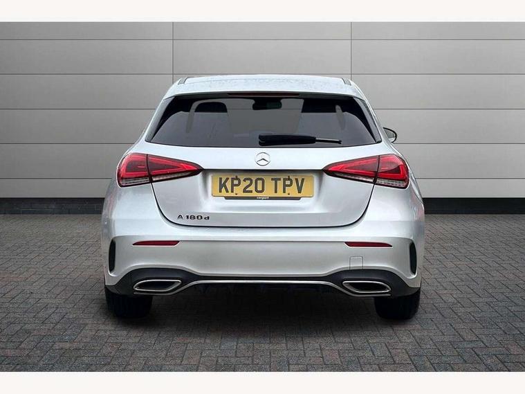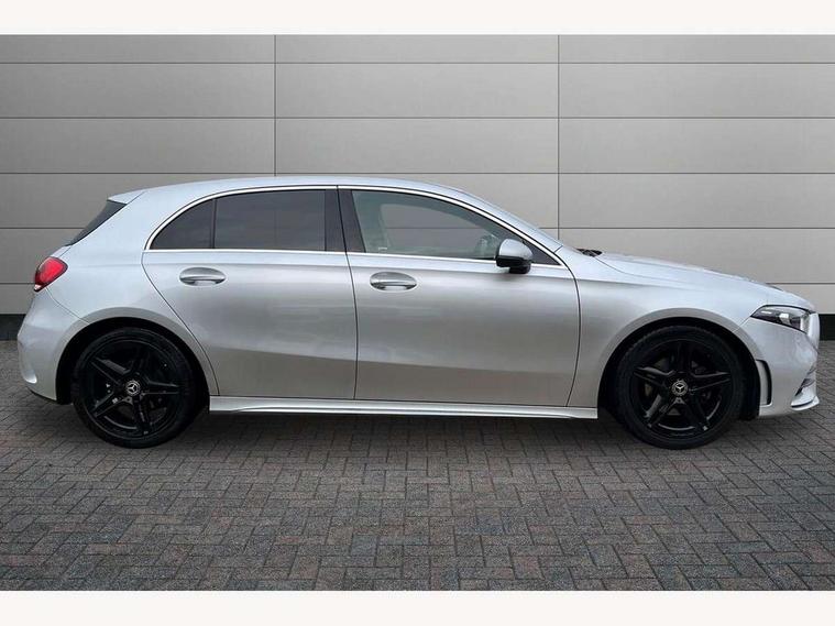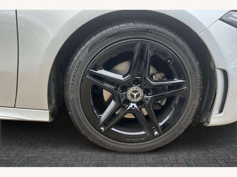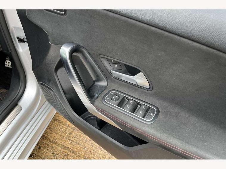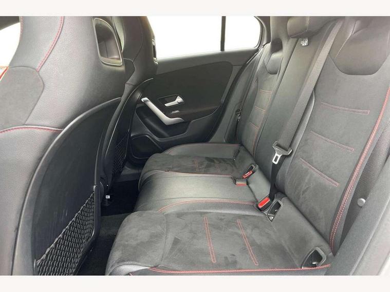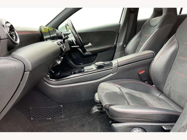 180 degree rear view camera with parking guidelines, 7" colour screen in instrument panel, 7" touchscreen media display, Active lane keep assist, Attention assist, Brake pad wear indicator warning light, Cruise control + speed limiter, Direct steering, Dual bluetooth interfaces, DYNAMIC SELECT with a choice of driving modes (ECO, Comfort, Sport and Individual), ECO start/stop function, Fluid level warning indicator for fuel, oil, coolant and washer fluid, Hard-disk navigation, Hey Mercedes Voice activation, Lamp failure indicator, Mercedes me connect including emergency call system, accident recovery, breakdown and maintenance management, Outside temperature gauge, Owners manual in English, Pre-installation for private car sharing, Pre-installation for Vehicle Monitoring, Pre-installation for Vehicle Setup, Preinstallation for Mercedes Benz link, Service indicator (ASSYST), Speed sensitive power steering, Trip computer, Lowered comfort suspension, Rear axle torsion beam, 2 USB ports (type C) in rear stowage compartment and one in front of center console, 6 speakers, DAB Digital radio, MBUX multimedia system with DAB digital radio and touchpad including satellite navigation, Mercedes-Benz sound system - 100W, 4 Electric Front and Rear windows, Adaptive brake lights, AMG bodystyling - Front apron with splitter in chrome, rear apron with chrome trim and chrome visible trim elements in tailpipe, Black weather strip, Body colour bumpers, Body colour door handles, Body colour side skirt, Body coloured door mirrors, Chrome beltline trim, Diamond radiator grille with chrome pins and silver louvre + chrome insert, Electric adjustable and heated door mirrors with integrated LED side indicators, Exhaust system - Twin visible tailpipes in polished stainless steel, Headlamp assist automatic headlamp activation, Heated glass rear windscreen + timer control, LED high performance headlamps with integrated LED daytime running lights, LED tail lamp, LED third brake light, Privacy glass, Radio aerial, Rain sensing windscreen wipers with two sensitivity settings, Rear fog lights, Rear wiper, Window line trim strip in chrome, 3 Spoke flat bottom leather multi function steering wheel with perforated leather in grip area, 40:20:40 split folding rear seats, Artico man-made leather/Microfibre Dinamica upholstery with red contrast stitching, Auto Mercedes-Benz child seat recognition sensor, Black air vents with surround in silver chrome, Black roof lining, Brushed stainless steel sports pedals with rubber studs, Controller on centre console with chrome surround, Floor mats with stitched edging and AMG lettering, Front centre armrest with storage compartment, Front door sills with Mercedes Benz lettering, Front seat backs luggage nets, Front seat cushion length adjustment, Galvanished gear shift paddles on steering wheel, Heated front seats, Height/reach adjustable steering column, Manual height adjustable front seats, Rear head restraints, Seat occupancy sensor for front passenger seat, Spectacles compartment for driver, Sports seats with integrated headrests, Stowage compartment in centre console with retractable cover, Sunvisors with illuminated vanity mirrors, Touchpad on center console, Twin front cupholders, Two zone thermotronic luxury automatic climate control, Light and sight pack - A Class, Seat comfort pack - A Class, 3 rear 3 point seatbelts, ABS with Brake Assist, Active bonnet, Active brake assist includes forward collision warning system with autonomous braking, Adaptive brake assist with hold function and hill start assist, Black seatbelts, Childproof locks manually operated for rear doors and electrically operated for rear power windows, Crash responsive emergency lighting, Driver and passenger head and side airbags, Drivers knee airbag, Dual stage driver/passenger airbags, Electronic parking brake, ESP curve dynamic assist, ESP with ASR, Front and rear seatbelt reminder, Front brake callipers with Mercedes Benz lettering, ISOFIX and top tether child seat fixing points in two outer rear seats, Tyre pressure monitoring system, Warning triangle and first aid kit, Window airbags, Alarm system/interior protection/immobiliser, Keyless Go, Remote central locking and crash sensor with emergency opening function, Dinamica microfibre trim in black, 18" AMG 5 twin spoke light alloy wheels in titanium grey with highsheen finish, Summer tyres, Tirefit sealant kit,