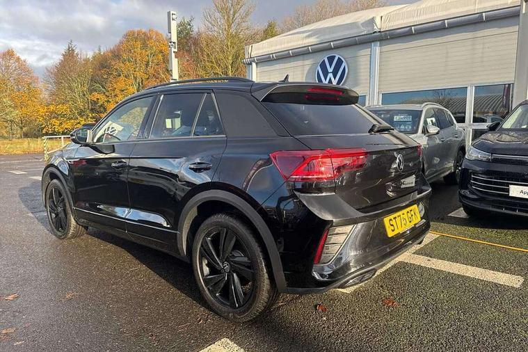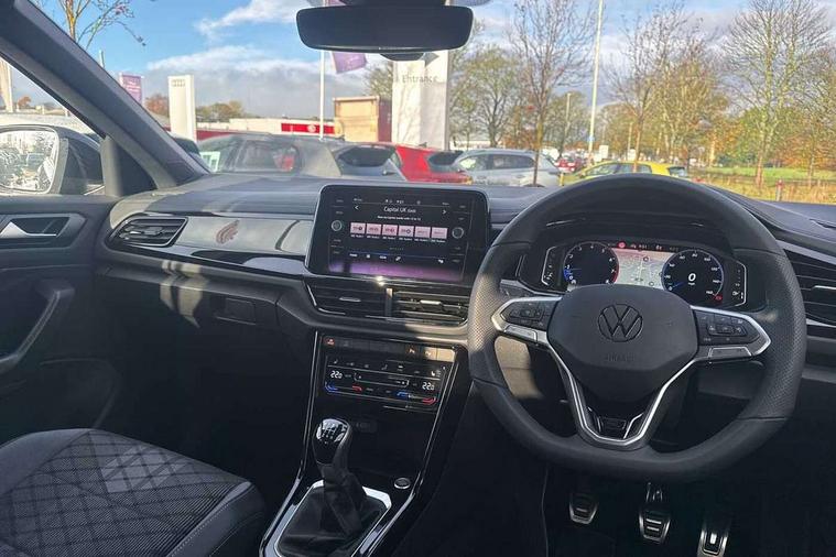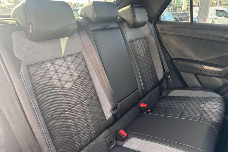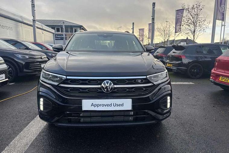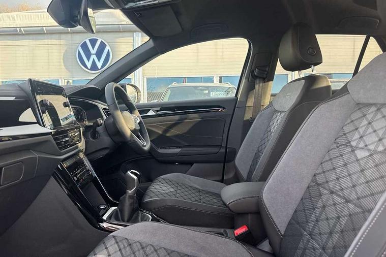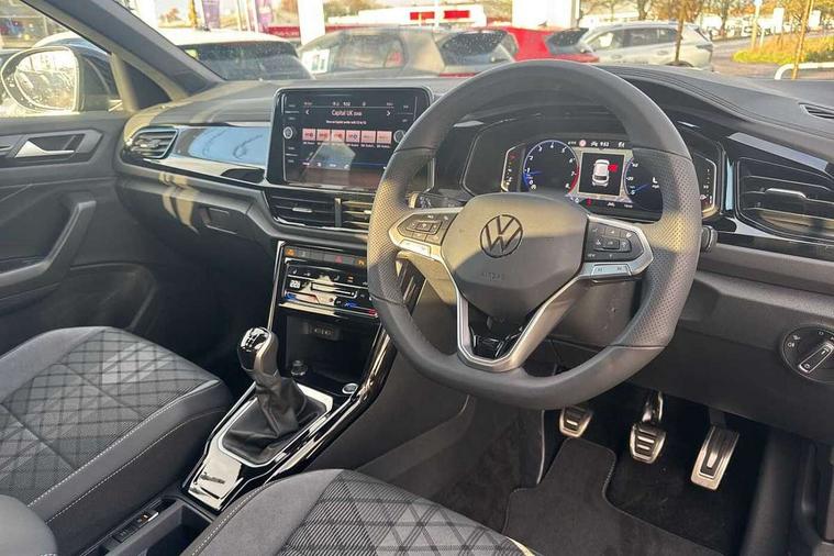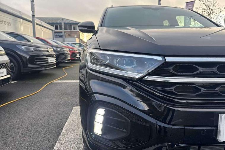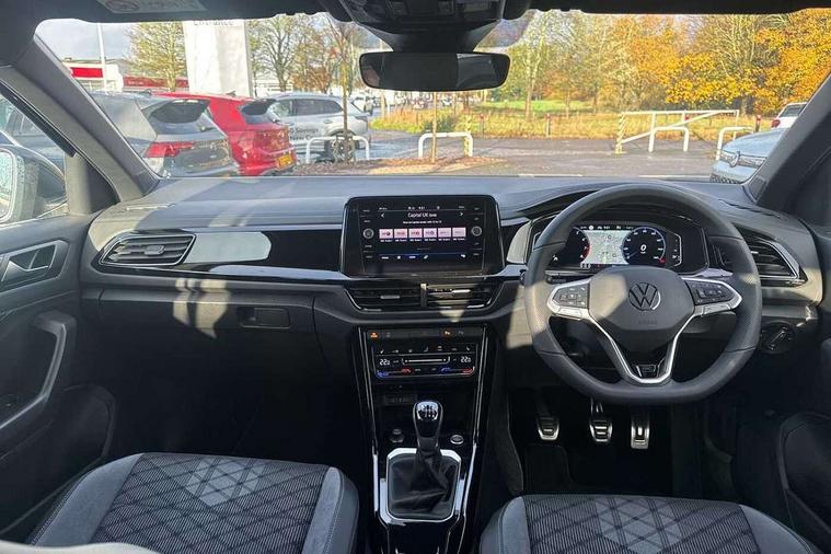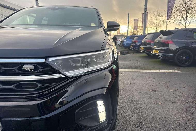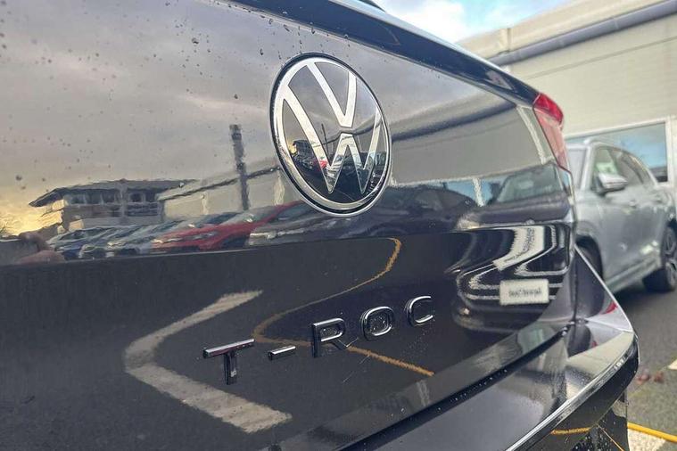 10.25" Digital cockpit pro, Advanced driver attention and drowsiness monitor, Emergency call service, Lane keeping system Lane Assist, Mobile phone interface, Modified key software - reduce switch off time for key status change to Long no motion, Online services, Park assist including front and rear parking sensors, Power assisted speed sensitive steering, Service interval indicator, Tailgate/trunk lid release from outside, Think blue trainer driver tips and journey analysis, Warning sound and light for front seatbelts unfastened, Wireless app connect, Battery regeneration during braking, Rear shock absorption chassis with increased ride height, Start/stop function with battery regeneration, DAB Digital radio, Diversity antenna for FM reception, Front and rear 6 speakers, Music playback - MP3, WMA and AAC files, Premium USB cable in choice of either Apple or Android smartphone compatibility, SD card slot, Simultaneous pairing of 2 compatible mobile devices, Title and cover art display, We Connect and We Connect Plus functionality, Auto dimming interior rear view mirror, Automatic hazard lights activation under emergency braking, Automatic headlight control with LED separate daytime running lights with coming/leaving home function, Dynamic cornering light, Electrically adjustable and heated door mirrors, Extended roof spoiler, Exterior mirrors aspherical on driver side, convex on front passenger side, External USB type C socket and charging sockets, Front windscreen wiper with intermittent wipe and 4 position delay, Heated rear window, Illuminated front grille, IQ LED matrix headlights, LED 3rd brake light, LED rear number plate lights, LED rear tail lights with dynamic turn signal, Light mode for poor weather, rain, fog or snow, Power windows with comfort operation and circuit breaker, R-Line design body coloured bumpers, Rain sensor, Rear exhaust tailpipe, Rear fog light on one side and reversing lights on both sides, Rear side wing doors, Rear wash/wipe with intermittent wipe setting, Remote electrically foldable door mirrors, puddle lights and reverse activated passenger's door mirror, 12V power socket in centre console, 3 rear head restraints, 3 seat bench in 2nd row, 4 load lashing points in luggage compartment, Air care climatronic air conditoning system with active combination filter and 2-zone temperature control, Artvelours cloth upholstery, Black roof lining, Chrome plated radiator grille inserts, air vent surrounds and light switch surrounds, Door and side trim panel with leatherette insert, Drawer under drivers seat, Driver seat height adjust, Driver's seat lumbar support, Front + rear carpet mats, Front centre armrest, Front comfort sports seats, Front cupholders x 2, Front footwell illumination, Front reading light, Front scuff plates with R Line logo, Front seat back storage pockets, Glove compartment door with light, Instrument lighting, white adjustable panel illumination, Interior ambient lighting and surround lighting, Interior light delay, Isofix child seat preparation, Leather gearshift handle, Load-through provision with cup holder when folded down ('Unsplit rear seat bench, split folding backrest, with centre armrest), Luggage compartment lighting, Non-folding front passenger seat backrest, Passenger seat height adjuster, Passenger seat lumbar support, Single front passenger seat, Stainless steel pedals, Storage compartment in left and right luggage area, Storage compartment in rear doors, Storage compartments in driver and front passenger doors, Sunvisors with illuminated vanity mirrors, Variable boot floor, height adjustable and removable, Winter pack without heated windscreen washer jets - T-Roc, 3 point height adj front seatbelts + pretensioners, 3 point seatbelts in outer rear with ECE label, ABS, Child locks on rear doors, City emergency braking and pedestrian monitoring, Driver and front passenger airbag with front passenger airbag deactivation, Driver and front passenger safety-optimised head restraints, Drivers seatbelt reminder, Electronic parking brake, Electronic Stability Control (ESC) inc EDL (Electronic Differential Lock) and ASR (Traction Control), Front and rear passengers curtain airbag system including front side airbags, Front disc brakes, Hill start assist, Predictive pedestrian protection, Rear disc brakes, Two tone horn, Tyre pressure loss indicator, Volkswagen roadside assistance, Tool kit, Trims for alloy wheels, Tyre mobility kit including compressor and sealing foam,