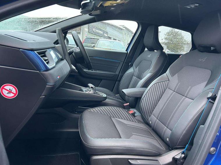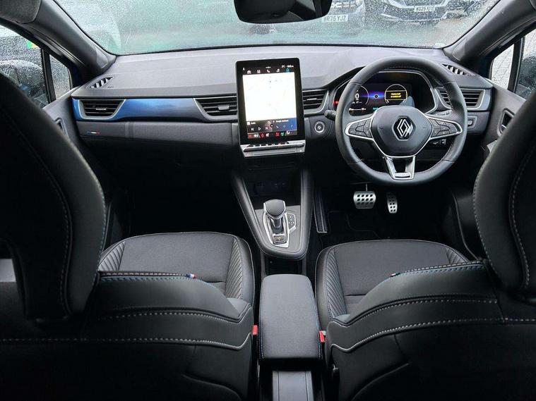 10.25" digital driver display, 10.4" OpenR link touchscreen with with built in Google Automotive Services and navigation, 2 front USB-C ports, 2 rear USB-C ports, Adaptive cruise control with speed limiter, Driver attention alert system, Driver drowsiness alert system, Eco mode, Emergency lane keep assist including solid line, oncoming traffic and road edge detection, Front and rear parking distance sensors, Gear change indicator, Lane departure warning system, Multisense with 3 driving modes + 8 ambient lighting colours, Rear view camera, Renault automatic emergency assist, Side parking sensors, Traffic sign recognition with over speed prevention, Trip computer, Variable assistance power steering, Wifi smartphone integration compatible with Apple CarPlay and Android Auto, Wireless phone charger, DAB radio with Bluetooth, Auto dimming rear view mirror with light and rain sensor - frameless, Automatic front wipers with rain sensors, Automatic headlights, Automatic high/low beam, Body colour door handles, Body coloured bumpers, Body coloured door mirrors, Chrome around front air deflectors, on front wing deco element and window lining, Dark tinted glass in rear windows and tailgate, Day time running light, Diamond black contrasting roof, Drivers one touch window with anti-pinch feature, Electrically folding door mirrors, Front and rear electric windows, Full LED front and rear lights, Gloss black window frame, Heated door mirrors, Heated rear windscreen, LED high level brake lights, LED turn indicators on door mirrors, Longitudinal roof bars, Rear fog lights, Rear side wing doors, Rear wiper, Shark fin antenna, 12V Accessory socket, 2 front roof LED lights and central rear roof light with 3 reading LED lights, 3 bench rear seats in 2nd row, Aluminium sports pedals, Automatic climate control with one touch demist function and air quality regulator, Driver and front passenger seat with electric height adjustment, esprit Alpine enveloping synthetic leather/cloth upholstery, Esprit alpine interior styling, Flying console for auto transmission, Front head restraints, Glovebox, Heated front seats, Heated steering wheel, Heating system with pollen filter, Height/reach adjust steering wheel, ISOFIX child seat fixing points on rear outermost seats, Middle console with armrest and storage, Modular boot floor, Rear air vents, Rear head restraints, Rear seats - 1/3:2/3 foldable sliding bench, Single front passenger seat, Sunvisor with mirror and light, Synthetic leather steering wheel, 3 rear seatbelts, ABS+EBA, AEBS - active emergency braking system, Approaching vehicle sound for pedestrians, Distance warning alert, Driver and front passenger and 3 rear passengers seatbelt reminder, Driver and front passenger, side, head and curtain airbags, Driver height adjustable seat belt, Electric parking brake with auto hold function, Electronic stability control, Front dash warning indicator in case of heavy braking, Front driver and passenger side airbag deactivation, Hill start assist, Passenger airbag deactivation system, Rear door and window child locking function for rear door, Tyre pressure warning light, Anti drill door locks and locking fuel cap, Central door locking, Deadlocking system, Hands free keycard with push button and start/stop function, RAID (Renault Anti-Intruder Device) automatic door locking, Black soft touch dashboard, 19" esprit Alpine Elixir alloy wheels,