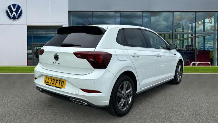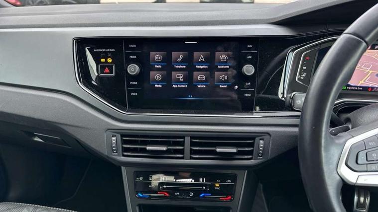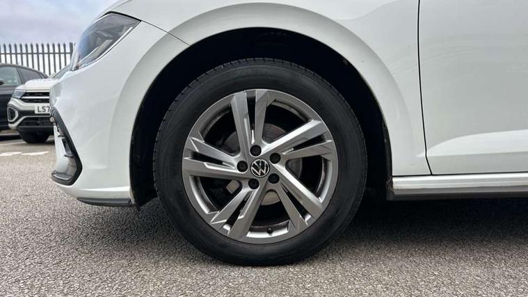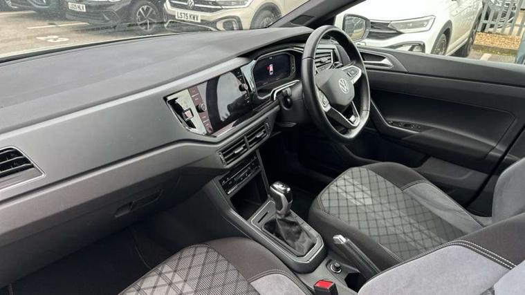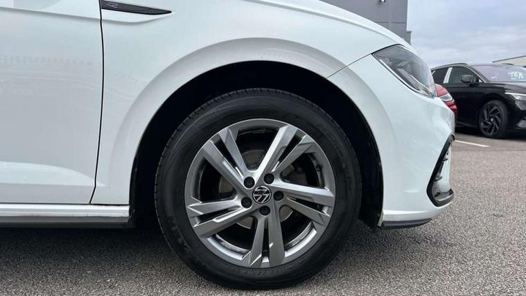 Adaptive cruise control with follow-to-stop and speed limiter, Bluetooth mobile phone interface, Digital Cockpit Pro with 10.25" Display, Driver alert system, Dynamic road sign display, Emergency call service, Power assisted speed sensitive steering, Preparation for We connect and We connect plus, Speedo and rev counter, electronic odometer, trip, service interval display and fuel gauge, Standard rear axle, Travel Assist - Lane keeping system and traffic jam assist, Travel assist including emergency assist, Trip computer, Warning signal and warning light for front and rear seatbelts not fastened, Washer fluid level indicator, Wireless app connect, Front wheel drive, Rear shock absorpion, Start-stop system with battery regeneration (recuperation - energy recovery during braking), DAB Digital radio, Diversity antenna for FM reception, Front and rear 6 speakers, Body colour bumpers, Body colour door handles, Body colour door mirrors, Electric front windows, Front scuff plates with R-Line logo, Heat insulating darkened glass in side and rear windows, Heat insulating glass windscreen, Power folding adjustable/heated exterior mirrors and front passenger exterior mirror lowering function, Rear electric windows, Rear fog light, Rear side wing doors, Rear tinted glass from B-pillar backwards approx 65% tinted, Rear windscreen washer and wiper with interval delay, Third brake light, 12V power socket in centre console, 2 USB-C ports in the front, 2 USB-C charging sockets on the center console in the rear, 3 rear head restraints, 60/40 split folding rear seat and rear seat bench not split, Air care climatronic air conditoning system with active combination filter and 2-zone temperature control, Black roof lining, Chrome plated radiator grille inserts, air vent surrounds and light switch surrounds, Door and side trim panel, Driver and front passenger seat height adjustment, Driver/passenger sunvisors with illuminated vanity mirrors, Front + rear carpet mats in recycled material, Front centre armrest, Front footwell illumination, Front seat backrest storage pockets, Front sports comfort seats, Handbrake lever handle in leather, Headliner in recycled material, Isofix child seat preparation easy-fit (for two outer rear seats, and front passenger seat) compatible with I-size, Karoso artvelours cloth upholstery, Leather trimmed gear knob, LED interior light with switch off delay and dimmer, 2 reading lights front and rear, Luggage compartment cover, Luggage compartment floor, Luggage compartment lighting, Lumbar adjustment for front seats, Single front passenger seat, Stainless steel pedals, Standard pedal cluster, Three spoke leather wrapped multifunction steering wheel with shifting paddles, Light and sight pack - Polo R-Line/Black Edition, 3 point height adj front seatbelts + pretensioners, 3x3 point rear seatbelts, ABS, Driver and front passenger airbag with front passenger airbag deactivation, Drivers and front passengers safety optimised head restraints, ESC (Electronic stability control) + EDL (Electronic Differntial lock) and ASR (Traction control), Extended and predictive pedestrian/ cyclist protection, Front curtain and side airbags with center airbag, Hill hold control, Manual child lock in rear doors, Single tone horn, Tyre pressure loss indicator, Alarm with interior protection, Anti-theft alarm system with interior monitoring, backup horn, and towing protection, Anti-theft wheel bolts, Electronic engine immobiliser, Chrome applications on rotary light, mirror adjustment, window regulator switches, outlet with frame in black, Dark grey anodised matt decorative inserts in dash and front door panels, Low rolling resistance tyres,