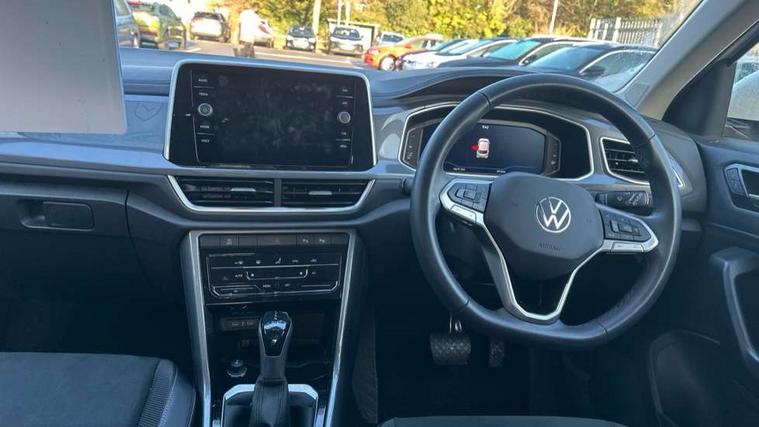 10.25" Digital cockpit pro, Advanced driver attention and drowsiness monitor, Emergency call service, Lane keeping system Lane Assist, Mobile phone interface, Modified key software - reduce switch off time for key status change to Long no motion, Online services, Park assist including front and rear parking sensors, Power assisted speed sensitive steering, Service interval indicator, Tailgate/trunk lid release from outside, Think blue trainer driver tips and journey analysis, Warning sound and light for front seatbelts unfastened, Wireless app connect, Battery regeneration during braking, Start/stop function with battery regeneration, DAB Digital radio, Diversity antenna for FM reception, Front and rear 6 speakers, Music playback - MP3, WMA and AAC files, Premium USB cable in choice of either Apple or Android smartphone compatibility, SD card slot, Simultaneous pairing of 2 compatible mobile devices, Title and cover art display, We Connect and We Connect Plus functionality, Auto dimming interior rear view mirror, Automatic hazard lights activation under emergency braking, Automatic headlight control with LED separate daytime running lights with coming/leaving home function, Body colour sports bumpers with silver metallic underbody fascia, Body coloured exterior mirror housings and door handles, Dynamic headlight range control with self adjusting whilst driving, Electrically adjustable and heated door mirrors, Extended roof spoiler, Exterior mirrors aspherical on driver side, convex on front passenger side, External USB type C socket and charging sockets, Front windscreen wiper with intermittent wipe and 4 position delay, Heated rear window, LED 3rd brake light, LED rear combination lamps, LED rear number plate lights, Light mode for poor weather, rain, fog or snow, Power windows with comfort operation and circuit breaker, Privacy glass for rear side windows and rear window, Rain sensor, Rear exhaust tailpipe, Rear fog light on one side and reversing lights on both sides, Rear side wing doors, Rear wash/wipe with intermittent wipe setting, Remote electrically foldable door mirrors, puddle lights and reverse activated passenger's door mirror, 12V power socket in centre console, 3 rear head restraints, 3 seat bench in 2nd row, 4 load lashing points in luggage compartment, Air care climatronic air conditoning system with active combination filter and 2-zone temperature control, Chrome plated radiator grille inserts, air vent surrounds and light switch surrounds, Door and side trim panel with leatherette insert, Drawer under drivers seat, Front + rear carpet mats, Front centre armrest, Front comfort sports seats, Front cupholders x 2, Front footwell illumination, Front seat back storage pockets, Glove compartment door with light, Instrument lighting, white adjustable panel illumination, Interior ambient lighting and surround lighting, Interior light delay, Isofix child seat preparation, Leather gearshift handle, LED interior light with switch off delay/dimmer and 2 front/rear LED reading lights, Load-through provision with cup holder when folded down ('Unsplit rear seat bench, split folding backrest, with centre armrest), Luggage compartment lighting, Non-folding front passenger seat backrest, Single front passenger seat, Storage compartment in left and right luggage area, Storage compartment in rear doors, Storage compartments in driver and front passenger doors, Sunvisors with illuminated vanity mirrors, Variable boot floor, height adjustable and removable, Driver assistance pack without proactive passenger protection - T-Roc, 3 point height adj front seatbelts + pretensioners, 3 point seatbelts in outer rear with ECE label, ABS, Child locks on rear doors, City emergency braking and pedestrian monitoring, Driver and front passenger airbag with front passenger airbag deactivation, Driver and front passenger safety-optimised head restraints, Drivers seatbelt reminder, Electronic parking brake, Electronic Stability Control (ESC) inc EDL (Electronic Differential Lock) and ASR (Traction Control), Front and rear passengers curtain airbag system including front side airbags, Predictive pedestrian protection, Rear disc brakes, Two tone horn, Tyre pressure loss indicator, Volkswagen roadside assistance, Deep iron grey decorative inserts in dashboard, centre console and front door trim panels, Trims for alloy wheels,
