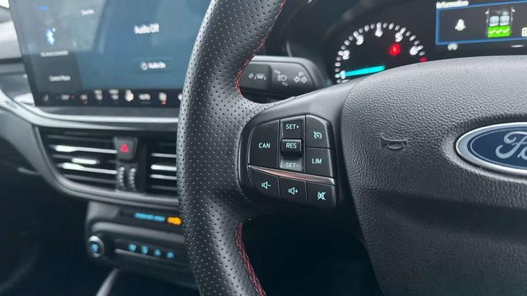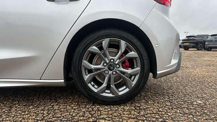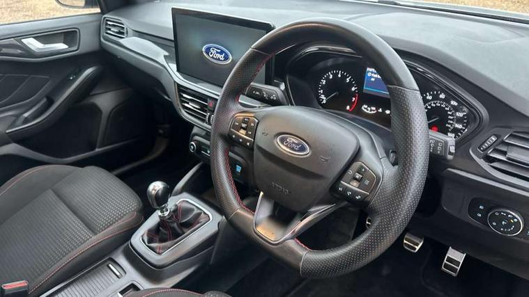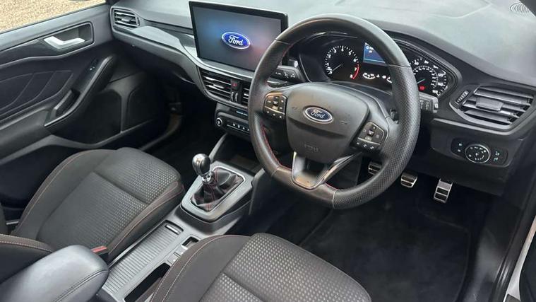 4.2" Colour TFT Ice blue illumination analogue cluster with trip computer, Bluetooth system, Digital clock, Easy fuel capless refuelling system, Eco mode, Ford SYNC 4 Navigation with 13.2'' touchscreen, DAB radio, Emergency Assistance, Apple Carplay & Android Auto, 6 speakers & FordPass Connect, Lane keeping system - lane keeping alert and lane keeping aid, PAS, Rev counter, Selectable drive mode, Service interval indicator, Sports tuned suspension, 2 USB ports, Auto headlamps (on/off), Body coloured door handles, Electrically operated front and rear windows with one touch opening and closing, Electrically operated heated power fold door mirrors with puddle lamp with side indicators, Front variable intermittent wipers with electric wash, Full fixed LED headlamps, Heated rear window, LED daytime running lamp, LED rear lamps, LED third brake light, Polished twin tailpipe, Privacy glass, Quickclear heated windscreen, Rain sensor, Rear side wing doors, Tailgate wash/wipe, Unique ST-Line grille, full bodystyling kit, and large body coloured rear spoiler, 3 rear headrests, 3 seat bench in 2nd row, Cloth upholstery, Dual zone electronic air temperature control, Height adjustable front headrests, Isofix child seat preparation, Reach + rake adjustable steering column, Single front passenger seat, 3x3 point rear seatbelts, ABS+Electronic Brake force Distribution, Auto hold function, Driver airbag, EDL traction control, Electronic parking brake, Electronic stability control, Front and rear seatbelt reminder, Front inertia reel height adjustable seatbelts with pre-tensioners, Front passenger airbag, Front side airbags, Passenger airbag deactivate switch, Post collision braking, Pre collision assist with autonomous emergency braking and pedestrian/cyclist detection, Remote/power child rear door locks, Side curtain airbags, Three rear inertia reel lap/diagonal seatbelts, Tyre pressure monitoring system, Keyless entry and keyless start, MyKey system, Remote central locking & engine immobiliser, Thatcham alarm with power door dead locks, 17" 5 spoke Rock mettalic finish alloy wheels with mini spare wheel,