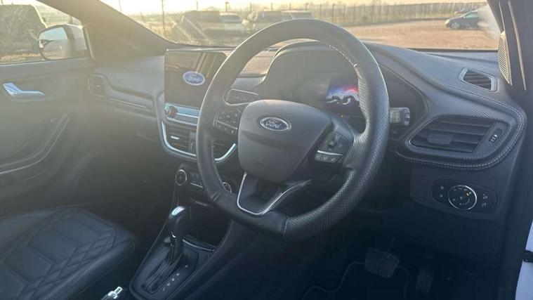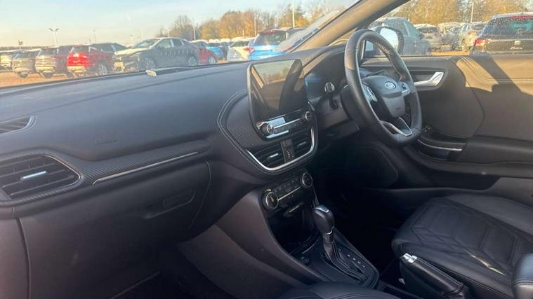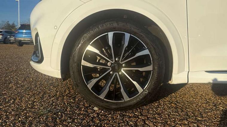 Driver impairment monitor, Emergency call service, Ford easy fuel, Front and rear parking sensors, Full digital 12.3" instrument cluster, Lane keeping aid with lane departure warning, Power assist steering, Selectable drive modes(Normal, Eco, Sport, Slippery and Trail), Speed sign recognition, Sport suspension, Automatic headlights with auto high beam, Automatic rain sensing wipers, Bodyside chrome styling, Fixed LED signature headlamps, Front fog lamps, Gloss black with chrome elements on front and rear bumpers, High chrome waistline, LED daytime running lights, LED rear lamps, Power foldable heated door mirrors with puddle lamps and puma logo protection, Privacy glass to side rear windows and tailgate glass, Quickclear heated windscreen, Rear side wing doors, Rear wiper, Third brake light, Vignale body styling kit with unique grille, 3 seat bench in 2nd row, Centre console with armrest and stowage, Ford megabox extended bootspace, Front and rear floor mats, Front and rear head restraints, Manual 4 way driver seat adjust with lumbar adjustment and massage function, Manual 4 way passenger seat adjust with lumbar adjustment and massage function, Premium sensico leather upholstery with metal grey stitching, Premium sensico perforated flat bottomed steering with metal grey stitching, Premium sensico wrapped instrument cluster, Single front passenger seat, Wireless charging pad with electronic air temperature control (EATC), B&O Premium Audio system + Ford SYNC 3 navigation pack - Puma, Winter pack - Puma, 3 rear seatbelts, Child safety lock, Electronic stability control (ESC) and hill start assist, Pedestrian/cyclist detection & post-collision braking, Pre collision assist system, Tyre pressure monitoring system (TPMS), Keyless entry and power start button, Thatcham alarm, Carbon look interior deco spears,
