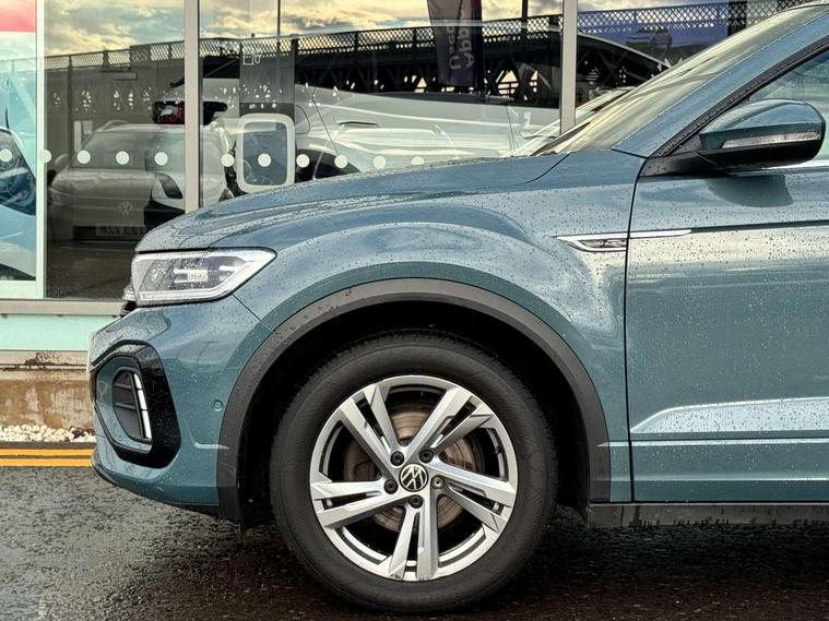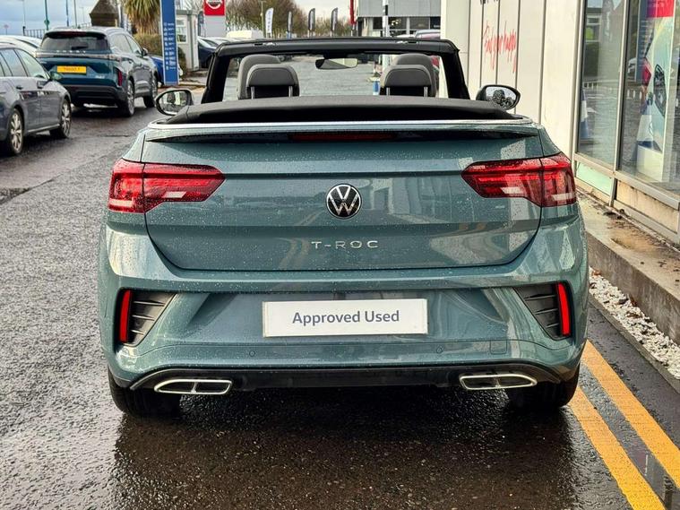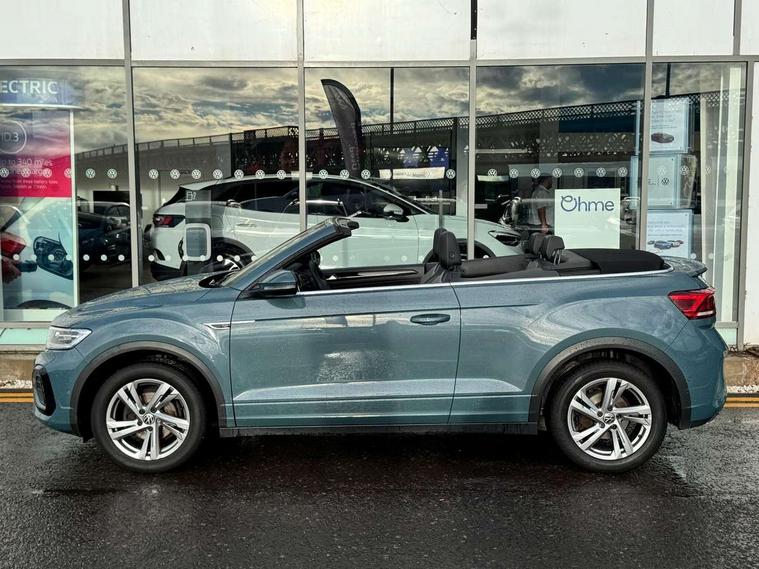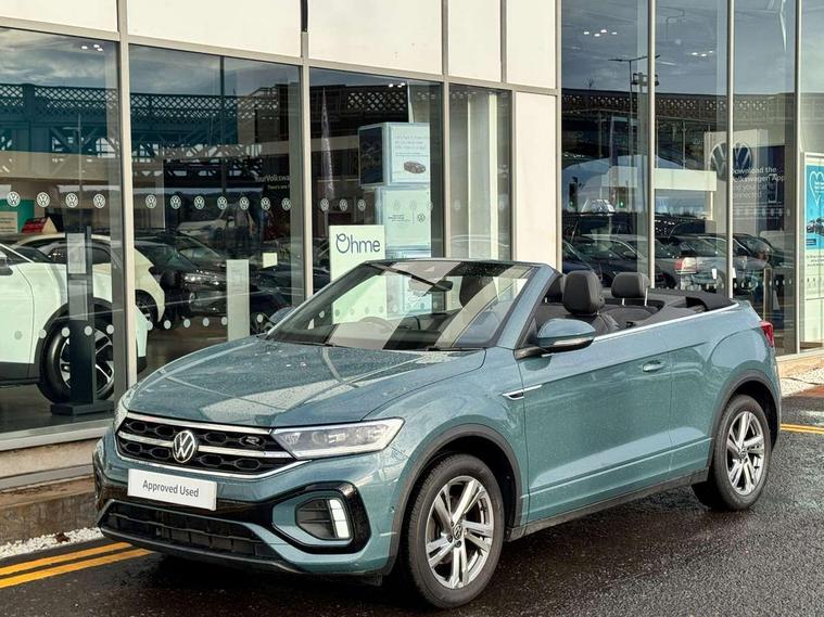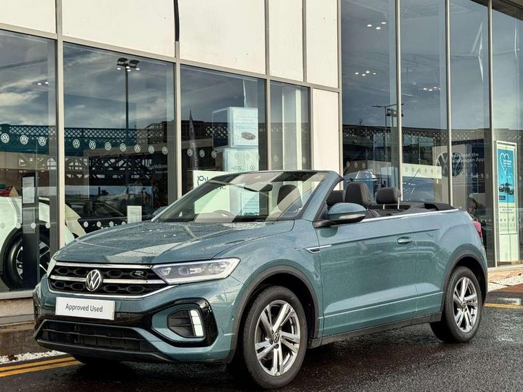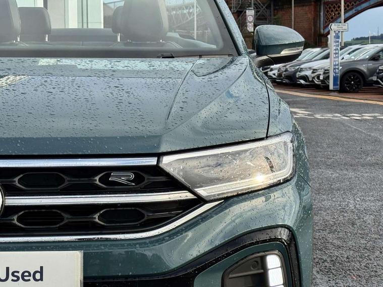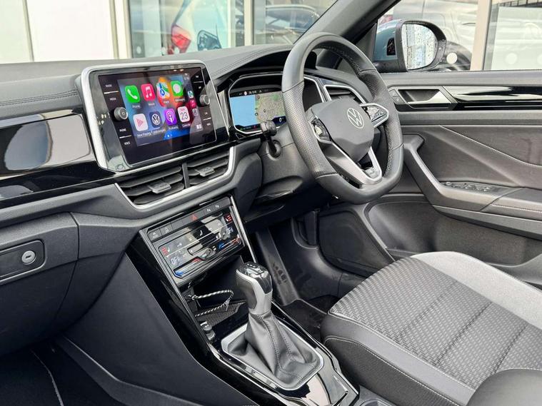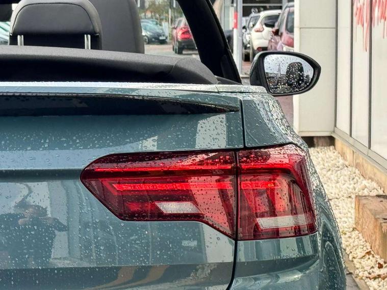 Adaptive cruise control and speed limiter, Bluetooth mobile phone interface, Brake pad wear indicator, Car information display, Digital Cockpit Pro with 10.25" Display, Driver alert system with fatigue detection, Driver tips and journey analysis, Emergency call service, Modified key software - reduce switch off time for key status change to Long no motion, Multifunction computer with visual gear change recommendation for fuel consumption, Multifunction front facing camera, Park assist including front and rear parking sensors, Speedo and rev counter, electronic odometer, trip, service interval display and exterior temperature gauge, Start/stop system with brake energy recovery, Tailgate/trunk lid release from outside, Warning sound and light for front seatbelts unfastened, Diversity antenna for FM reception, Music playback - MP3, WMA and AAC files, SMS functionality - read, compose and send SMS messages using touch-screen display, Title and cover art display, USB-C Interface and USB charging socket, We Connect and We Connect Plus functionality, Ambient lighting with logo projection, Auto dimming interior rear view mirror, Automatic hazard lights activation under emergency braking, Automatic headlight control with LED separate daytime running lights with coming/leaving home function, Black roof, Body colour door handles, Body colour rear spoiler, Chrome effect left and right trapezoid exhaust tailpipe fascia surround, Chrome trim on upper and lower radiator grille, Dark red rear combination lamps in LED technology, Dusk sensor, Exterior mirrors aspherical on driver side, convex on front passenger side, Heat insulating glass windscreen, High level 3rd brake light, LED performance matrix headlights - dynamic range control, dynamic cornering light and turn signal + light mode for rain/fog/snow, LED rear number plate lights, Power operated canvas convertible top, Power windows with comfort operation and circuit breaker, R-Line design body coloured bumpers, Rain sensor, Rear boot, Rear exhaust tailpipe, Rear fog light on one side and reversing lights on both sides, Remote electrically foldable door mirrors, puddle lights and reverse activated passenger door mirror, Volkswagen roundel, Windscreen wiper with intermittent wipe light, Without exterior ambient lighting, 12V socket in centre console storage area, 2 LED front reading lights, 2 seat bench in 2nd row, 50:50 Split folding rear seat backrests with fixed rear seat bench, Air care climatronic air conditoning system with active combination filter and 2-zone temperature control, Black door lower parts with chrome trim, Chrome plated surround to light, mirror and window switch, Door and side trim panel with leatherette insert, Easy entry backrest release, Front and rear carpet mats with black stitching, Front centre armrest, Front cupholders x 2, Front door pockets, Front seat back storage pockets, Front sports comfort seats with manual height adjustment, Heated leather wrapped multi function sports steering wheel with tiptronic, Height/reach adjust steering wheel, Inserts of front seats and outer rear seats in ArtVelours titan black, Instrument lighting, white adjustable panel illumination, Interior light delay, Interior light in footwell, Interior lighting with switch off delay and contact switches on all doors, Interior white ambient lighting and surround lighting, Isofix child seat preparation, Lockable glove compartment with light, Luggage compartment lighting, Power adjustable lumbar support in front, Rear head restraints, Single front passenger seat, Stainless steel pedals, Sun visors with illuminated vanity mirrors, Unique R Line door sill protectors, Driver assistance package - T-Roc cabriolet DSG, 2 x 3-point seatbelts/outer rear seats with ECE label, Driver and front passenger airbag with front passenger airbag deactivation, Driver and front passenger safety-optimised head restraints, Drivers seatbelt reminder, Electronic parking brake, Electronic Stability Control (ESC) including ABS, ASR and EDL, Front and rear disc brakes, Front assist with autonomous emergency braking, Pedestrian monitoring, Predictive pedestrian protection, Rigid safety cell with front and rear crumple zones, Side airbag/thorax airbag system, for front passengers, Single tone horn, Three point height adjust front seatbelts + pretensioners, Tyre pressure loss indicator, Volkswagen roadside assistance, Anti-theft alarm system with interior protection and central locking system with SAFELOCK, radio remote control and 2 remote control folding keys, Electronic engine immobiliser, Trims for alloy wheels,